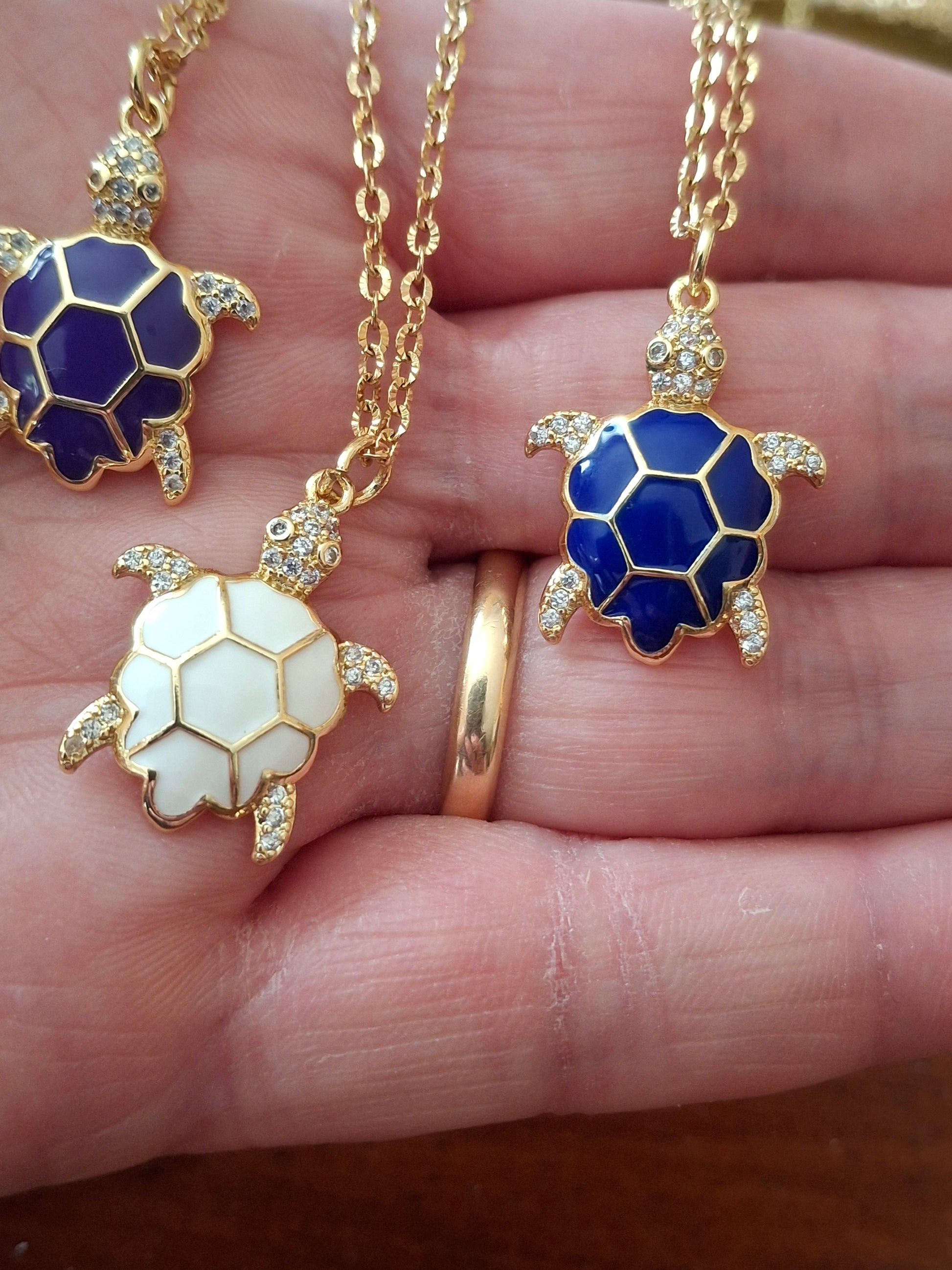Collier chaîne dorée acier inoxydable Pendentif tortue cuivre plaqué or 18K serti zirconium
