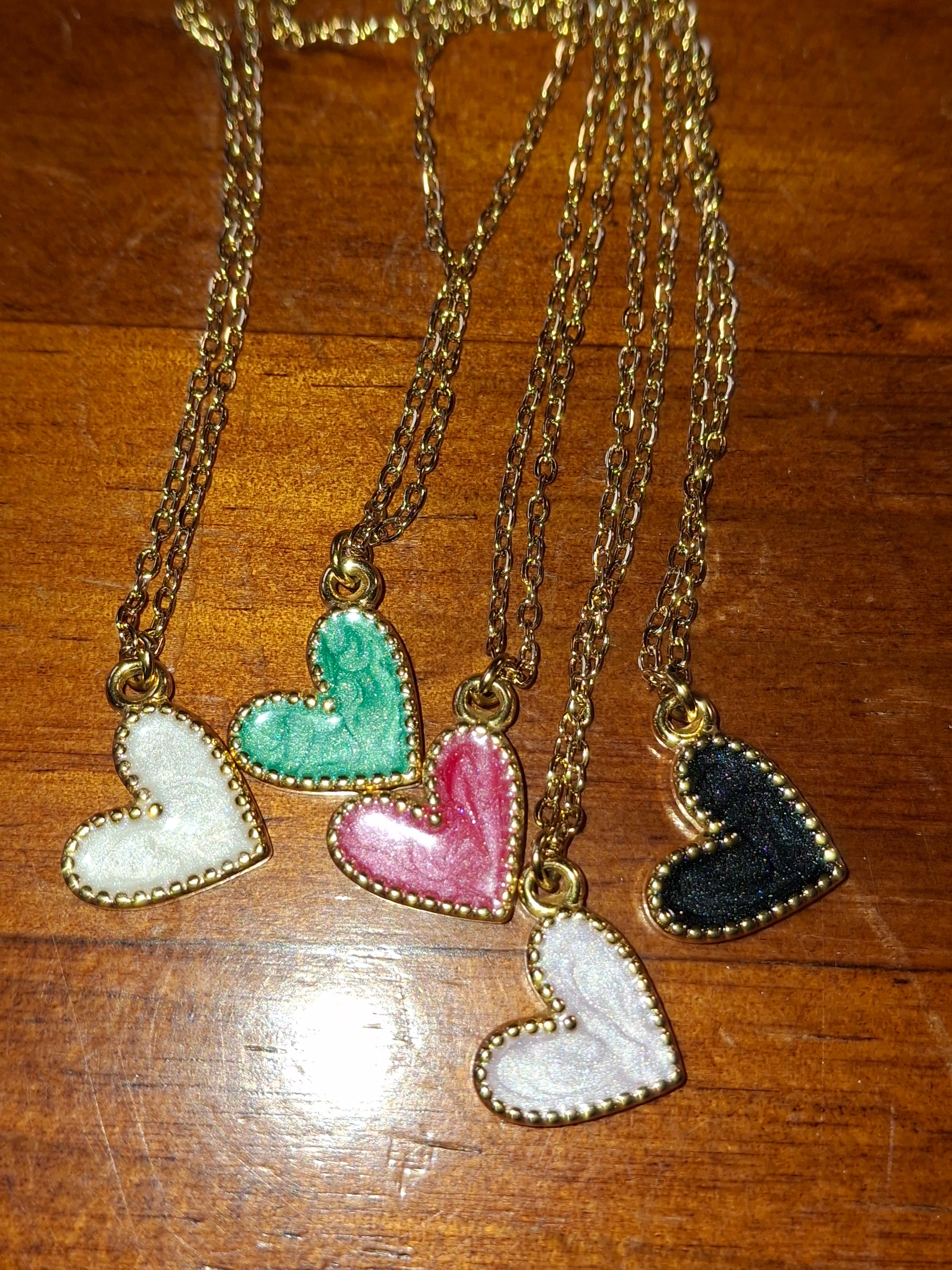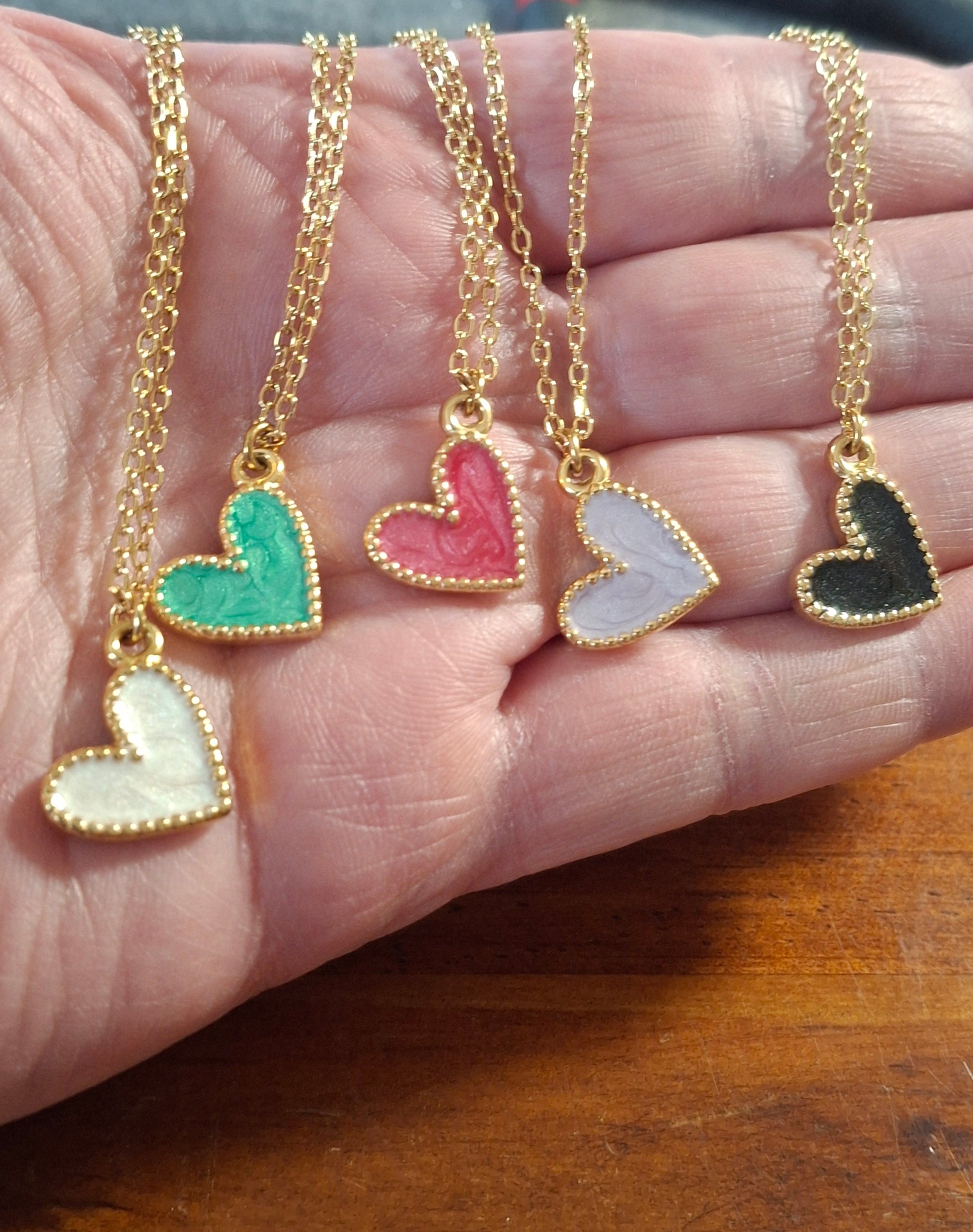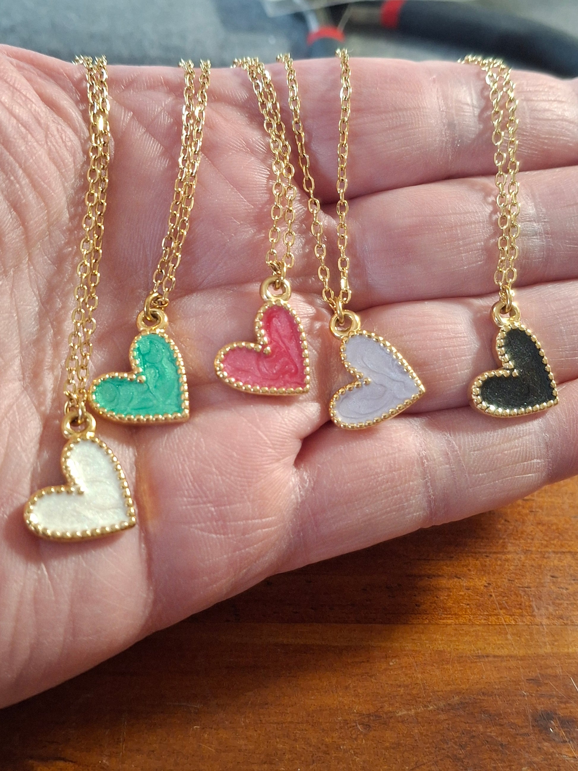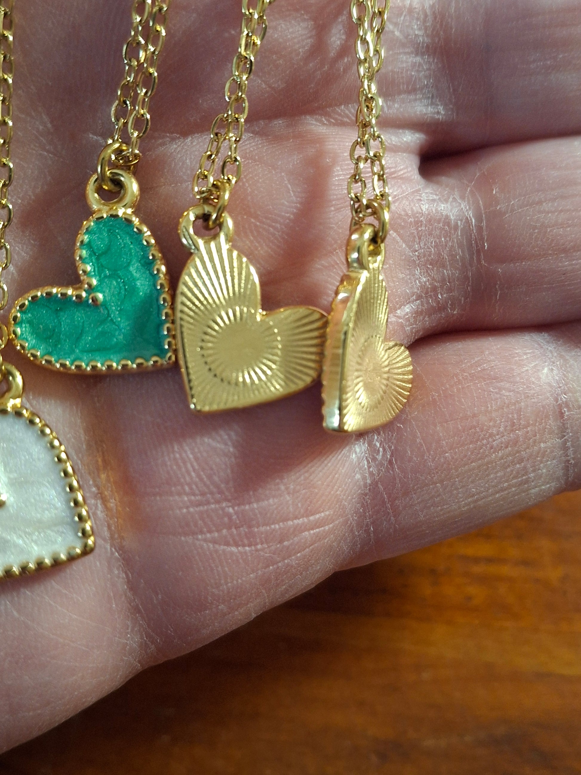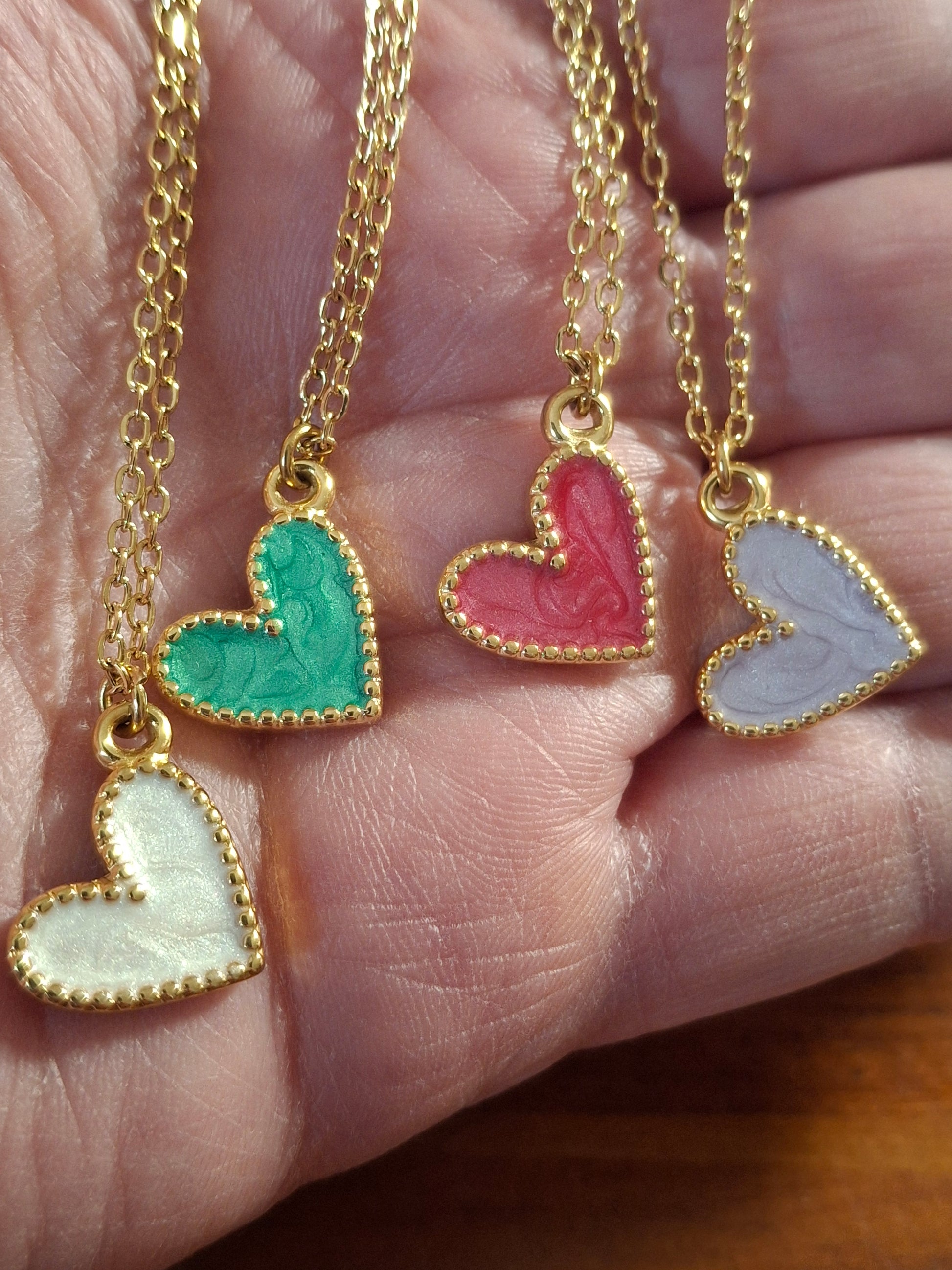 Collier chaîne dorée acier inoxydable stainless steel 316 ,coeur stainless steel 316 et email