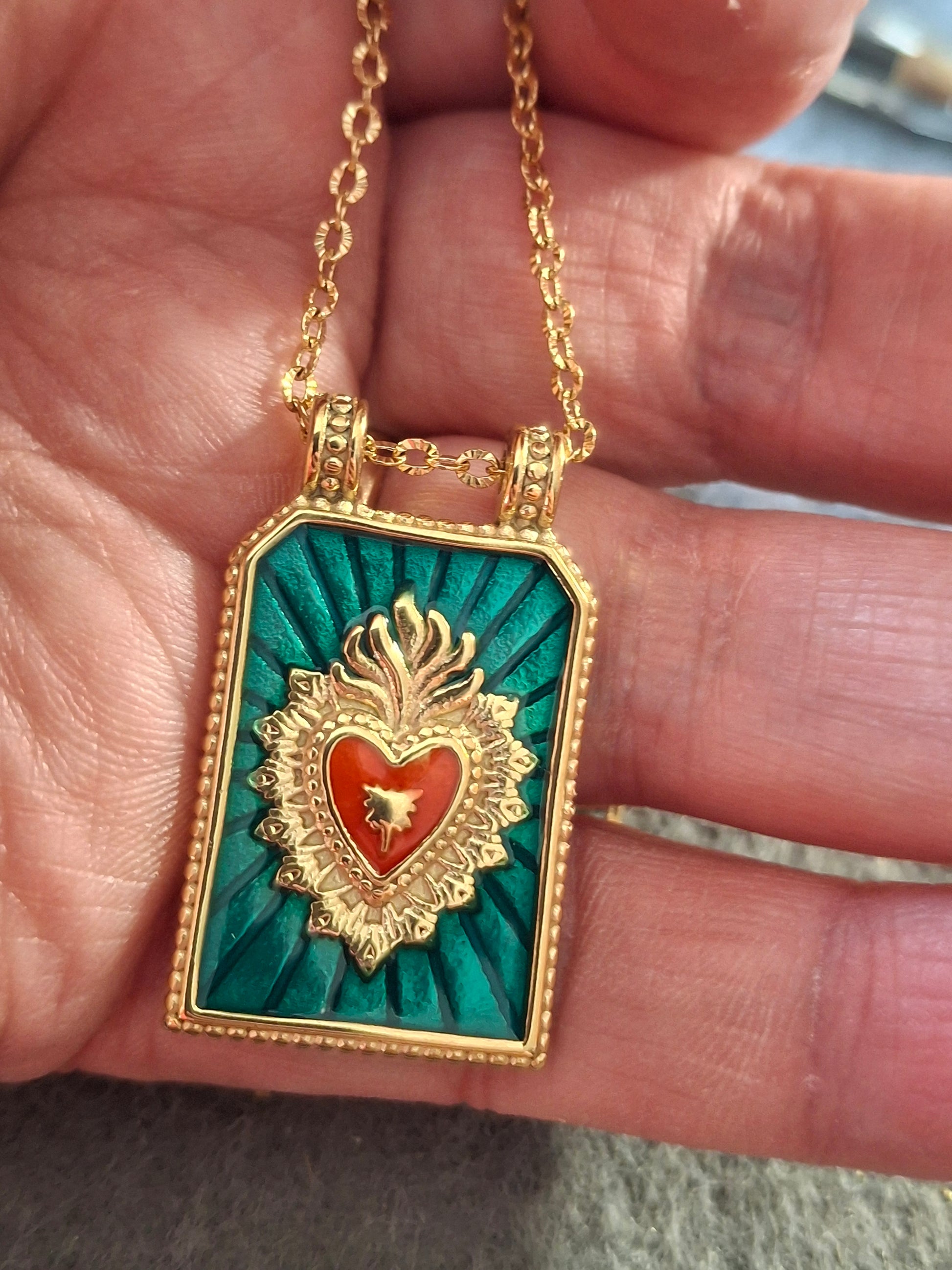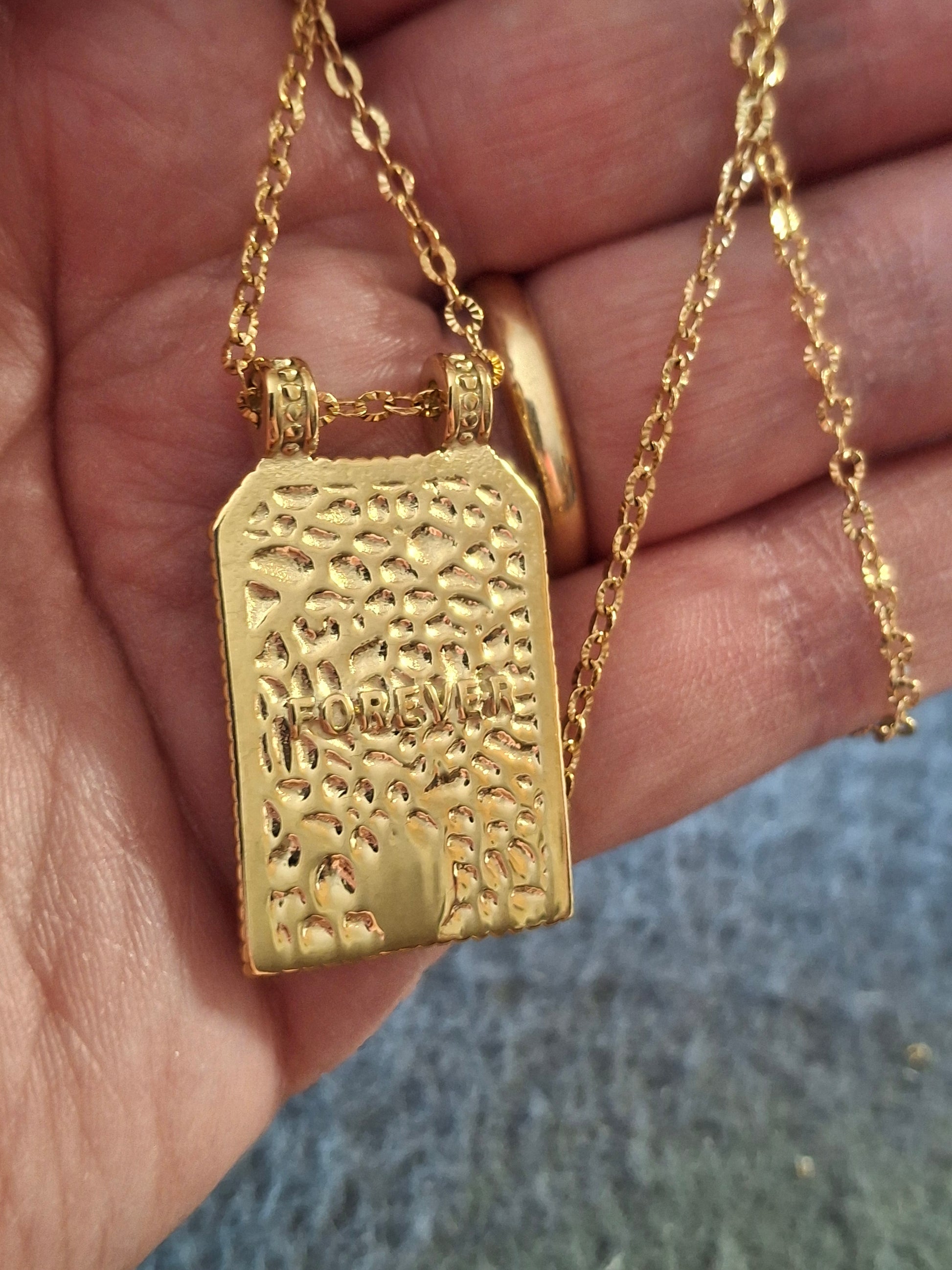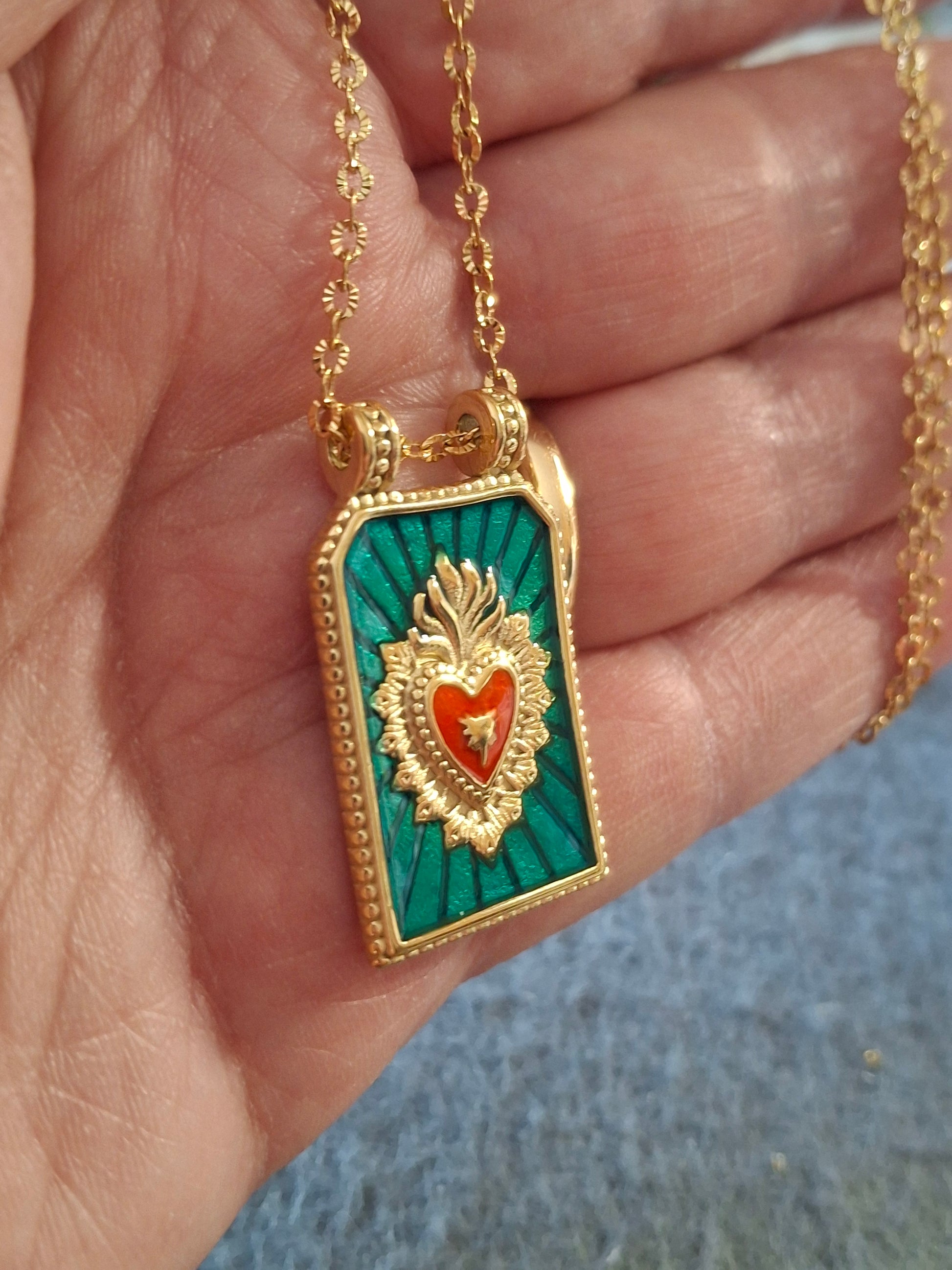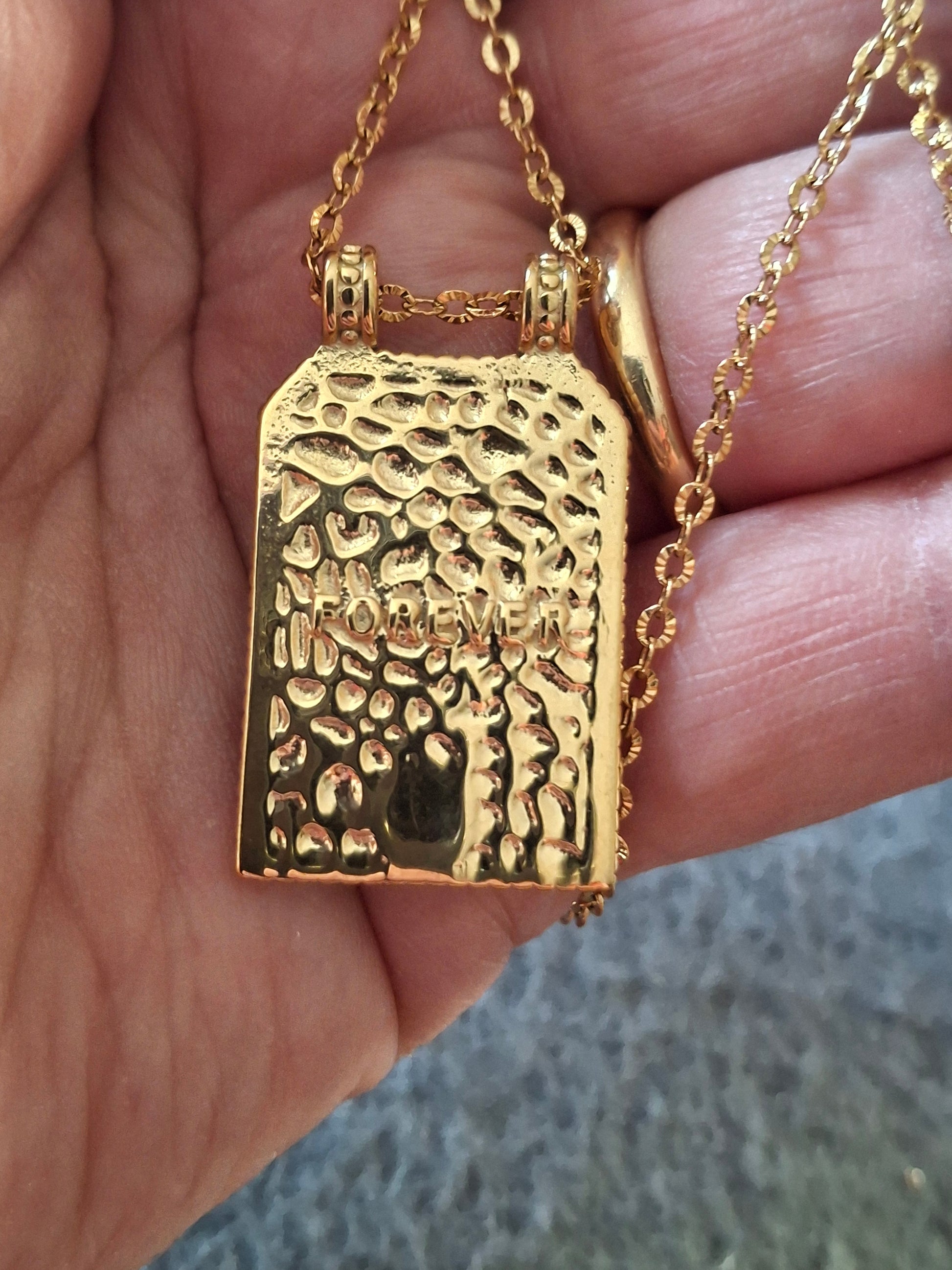 Collier chaîne dorée acier inoxydable stainless steel 316 et carte stainless steel 316 et email