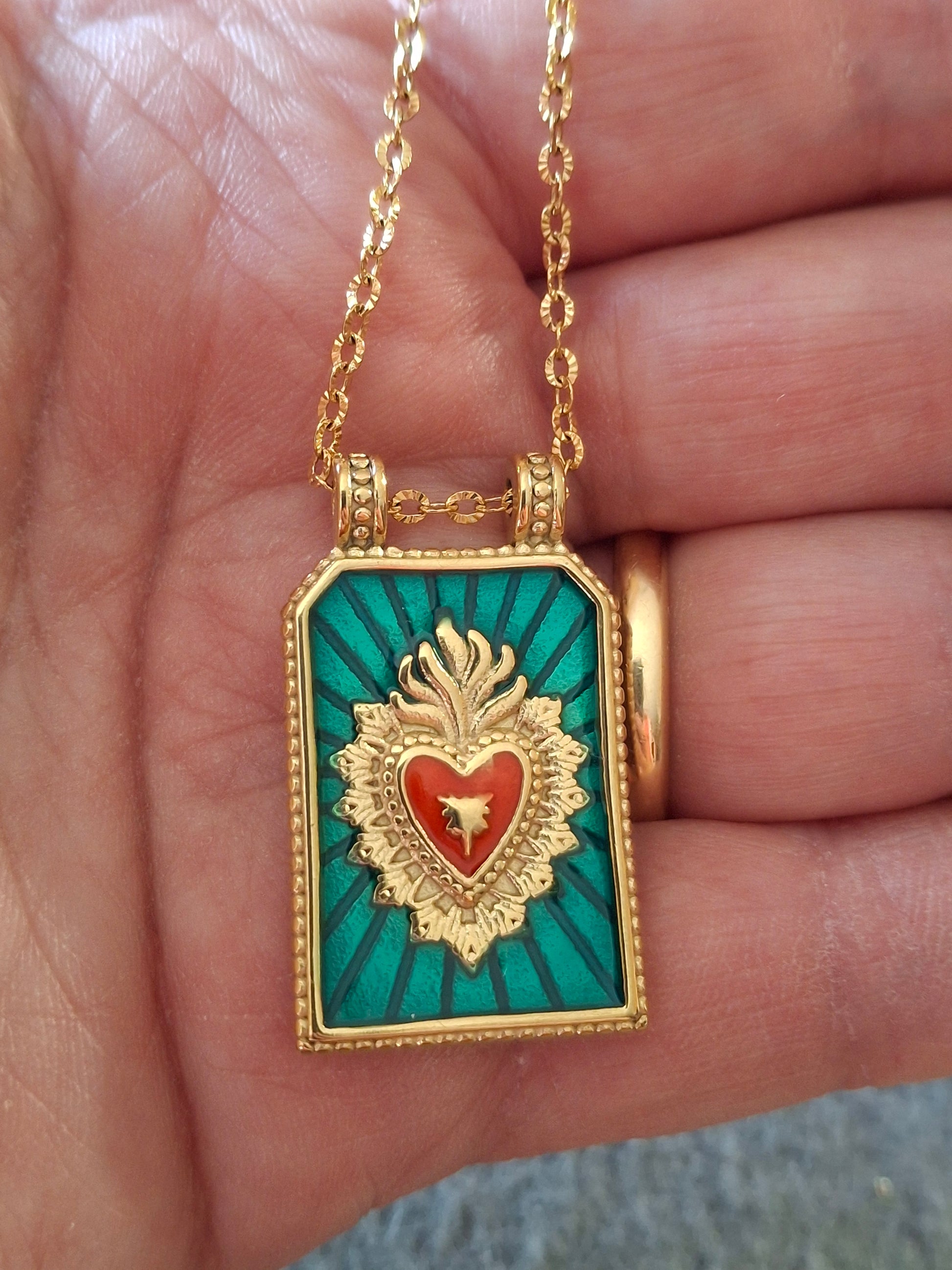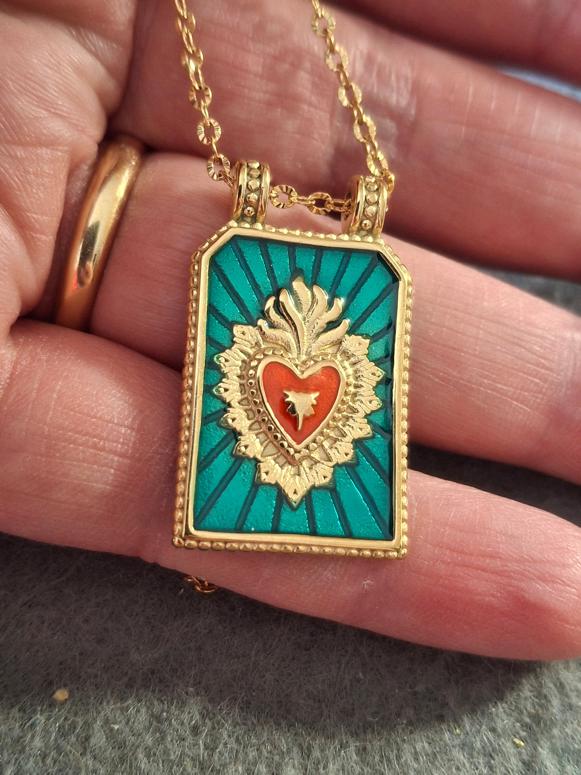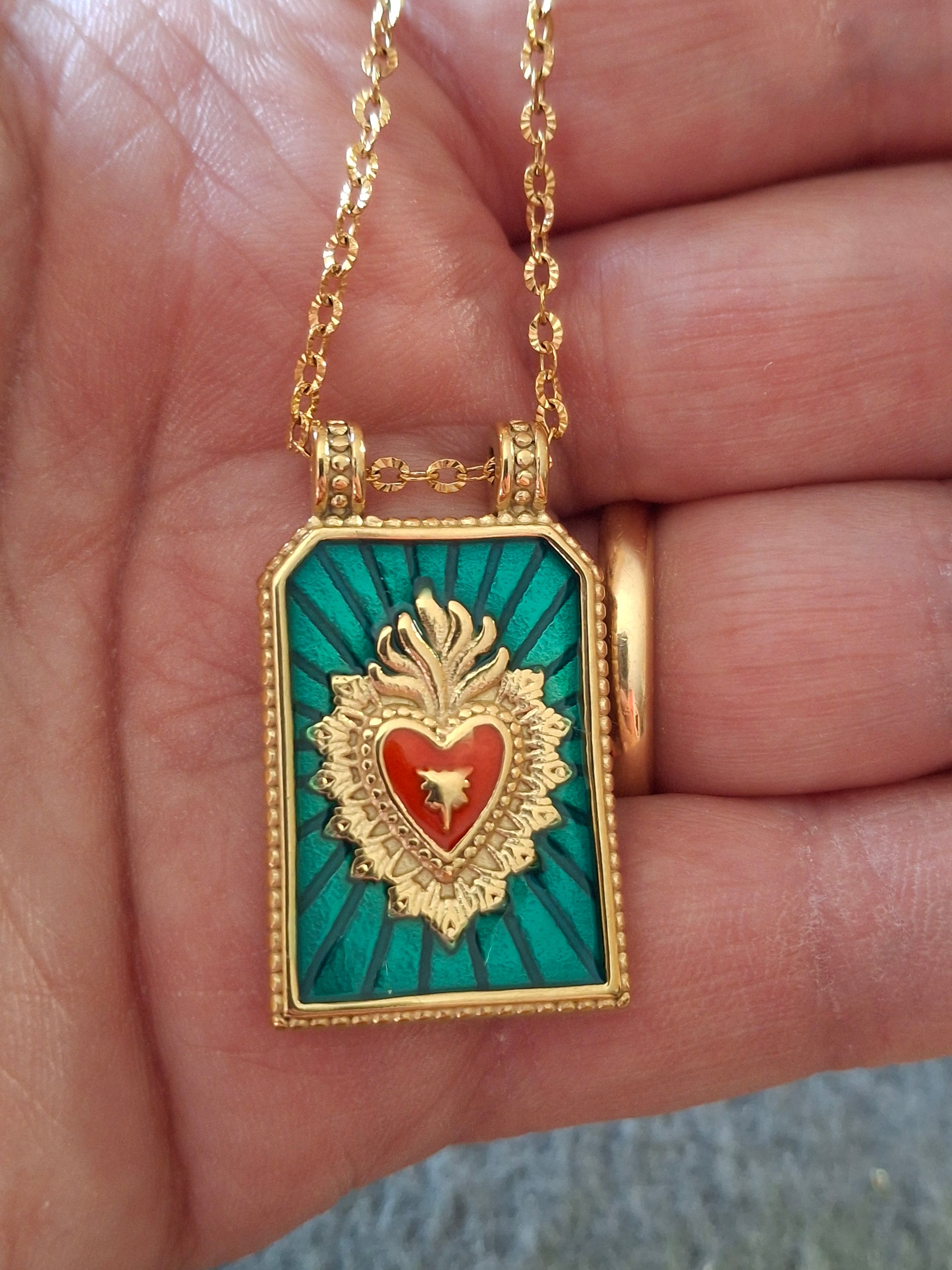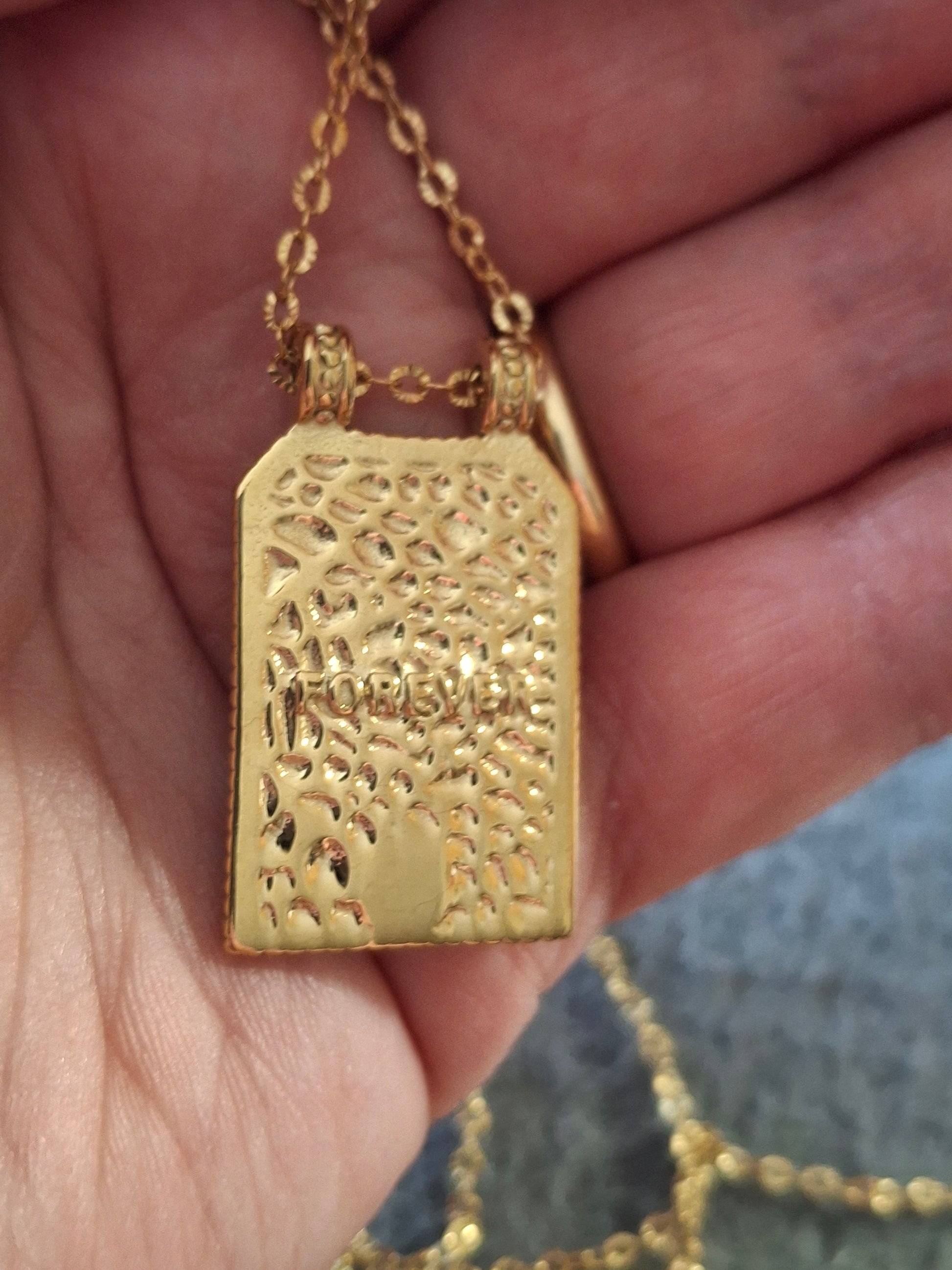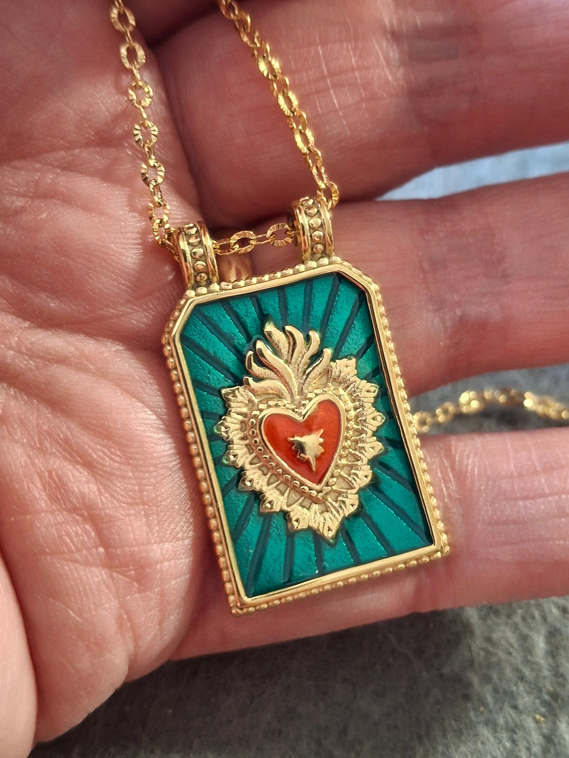 Collier chaîne dorée acier inoxydable stainless steel 316 et carte stainless steel 316 et email