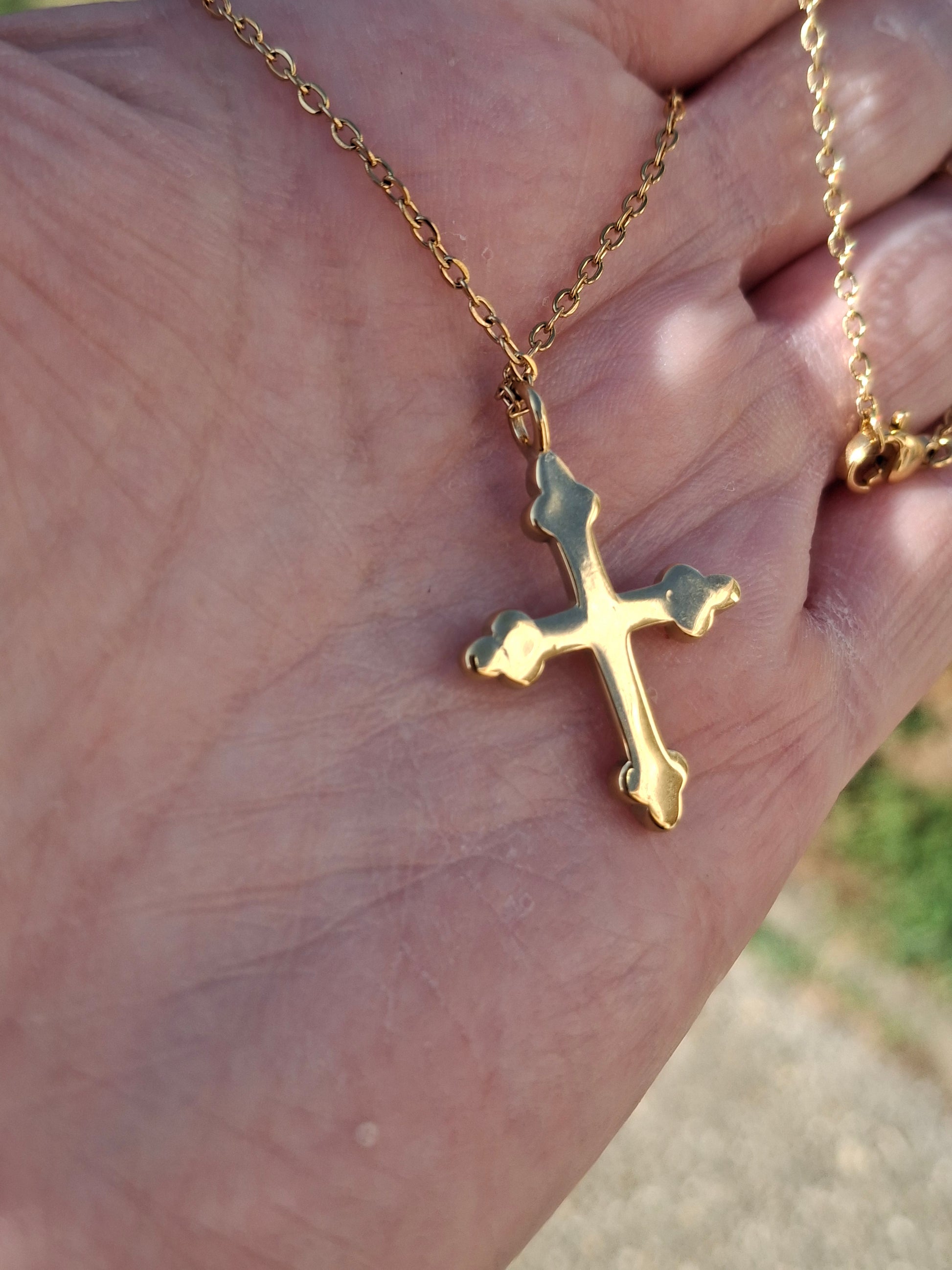 Collier chaîne dorée acier inoxydable stainless steel 316 et croix stainless steel 316