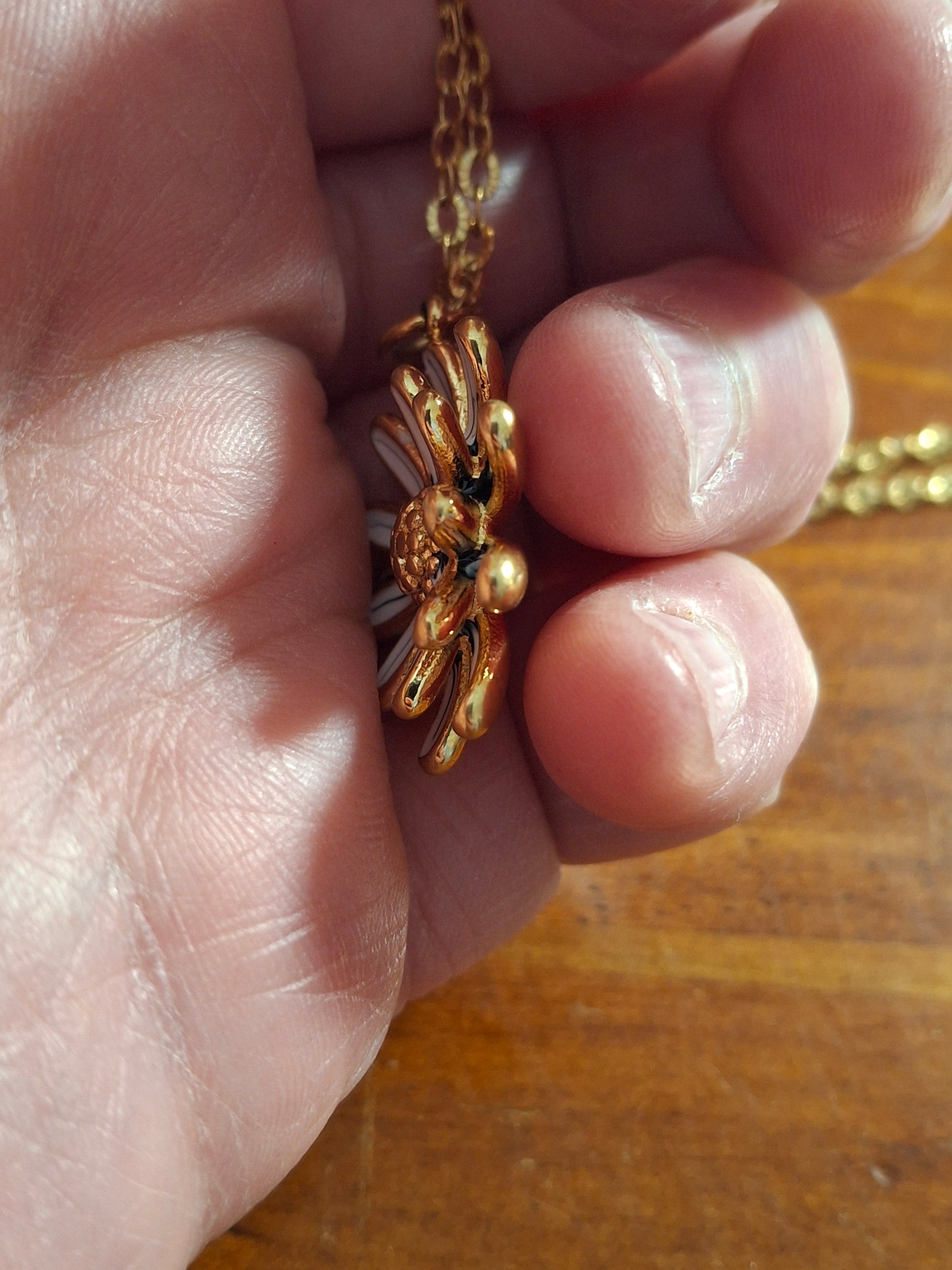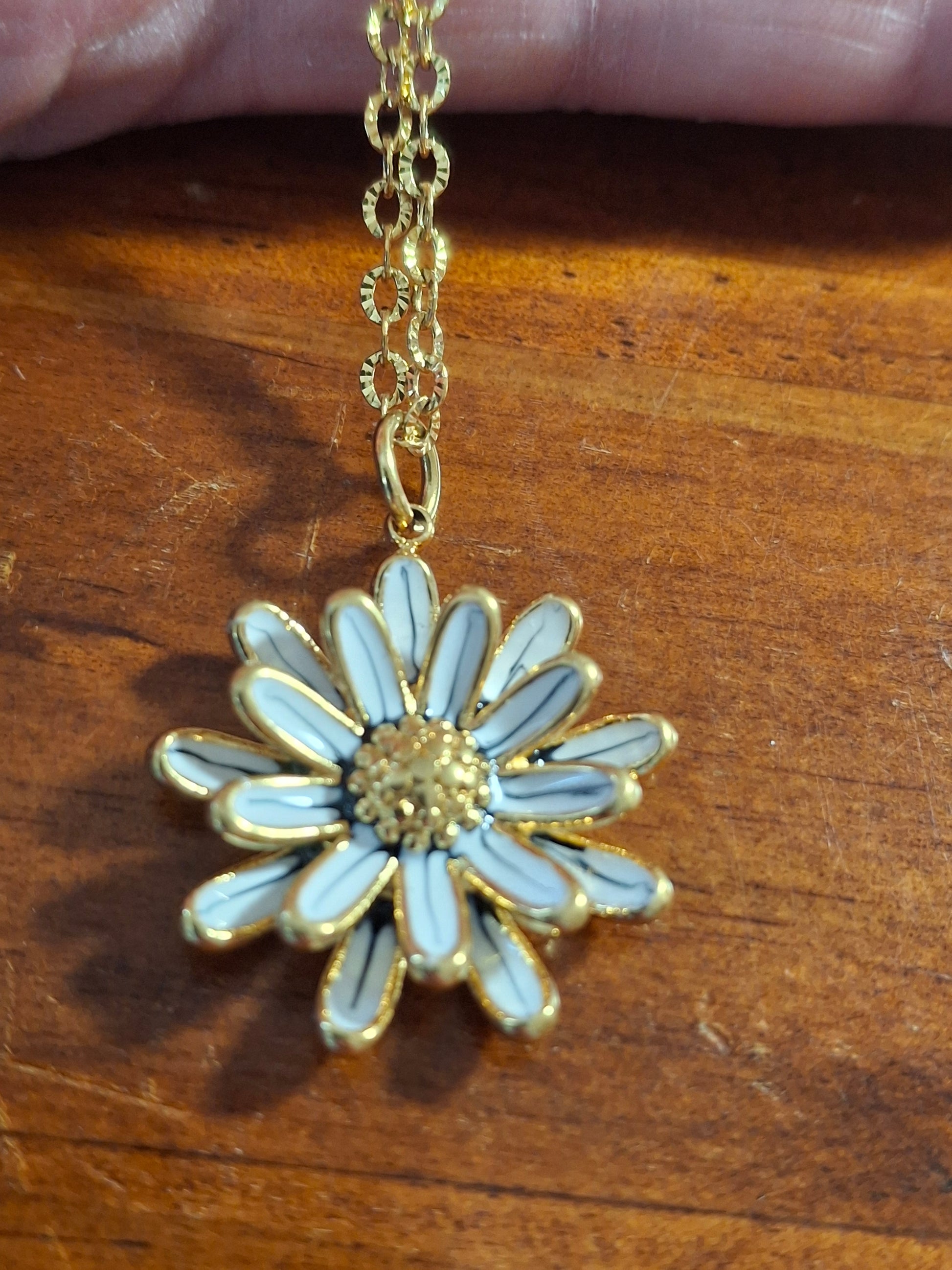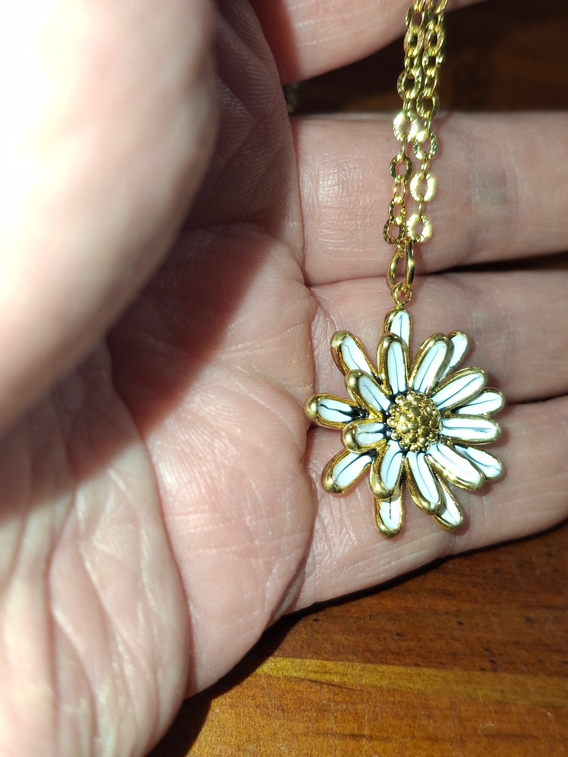 Collier chaîne dorée acier inoxydable stainless steel 316 et fleur stainless steel 316 polie et email