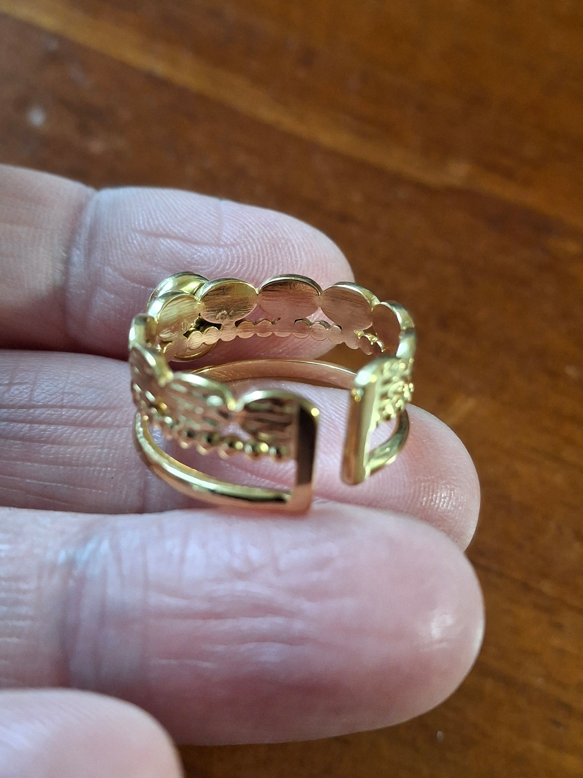 Très jolie bague ,jolis détails en acier inoxydable hypoallergenique stainless steel 316 poli de qualité supérieure galvanisation résistante longue durée sans nickel cadmium et plomb, résistante à l eau, ne rouille pas, ne noircit pas, réglable ajustable