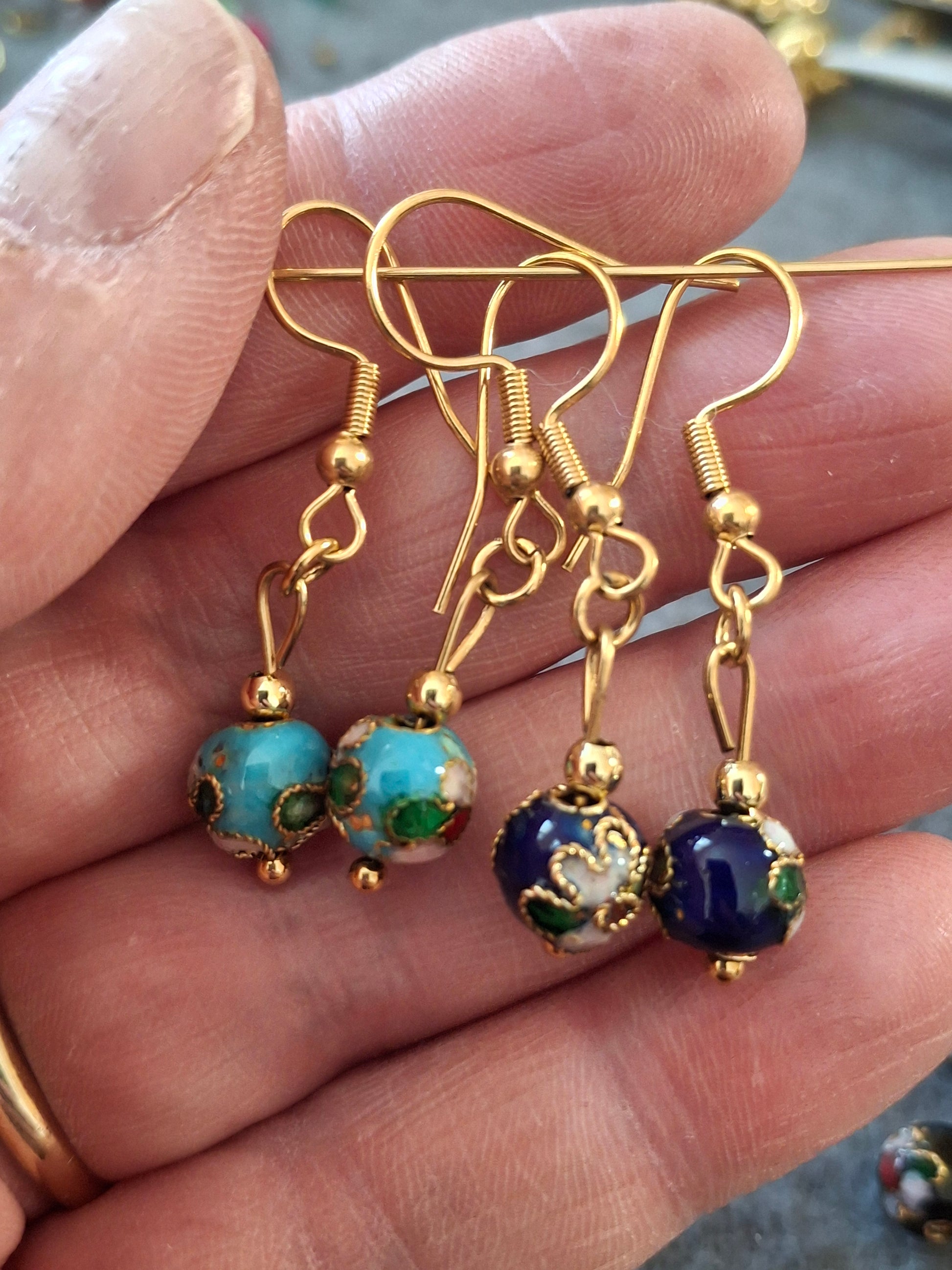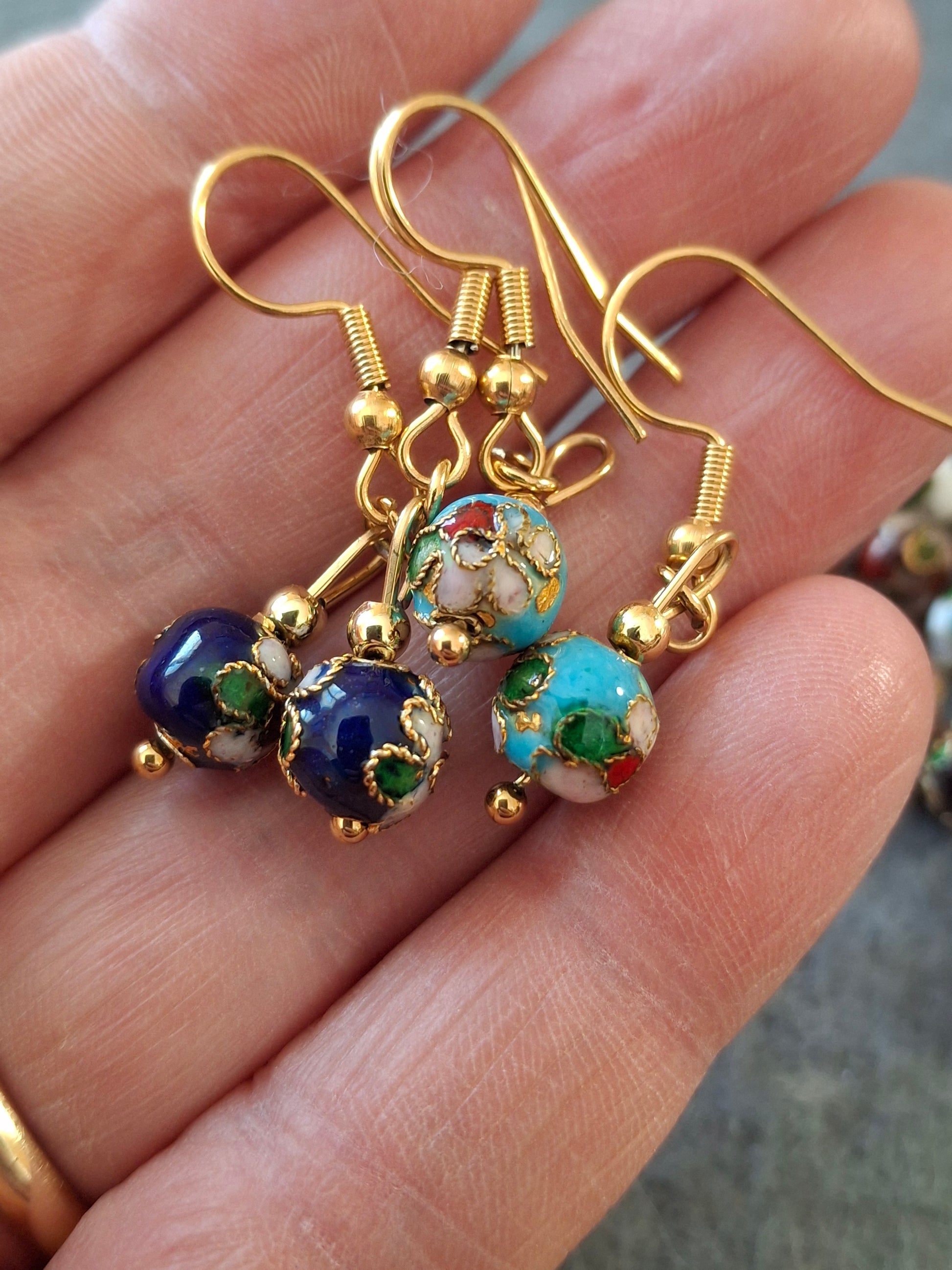 Boucles d oreilles attaches indiennes stainless steel 316 et perle en email cloisonné