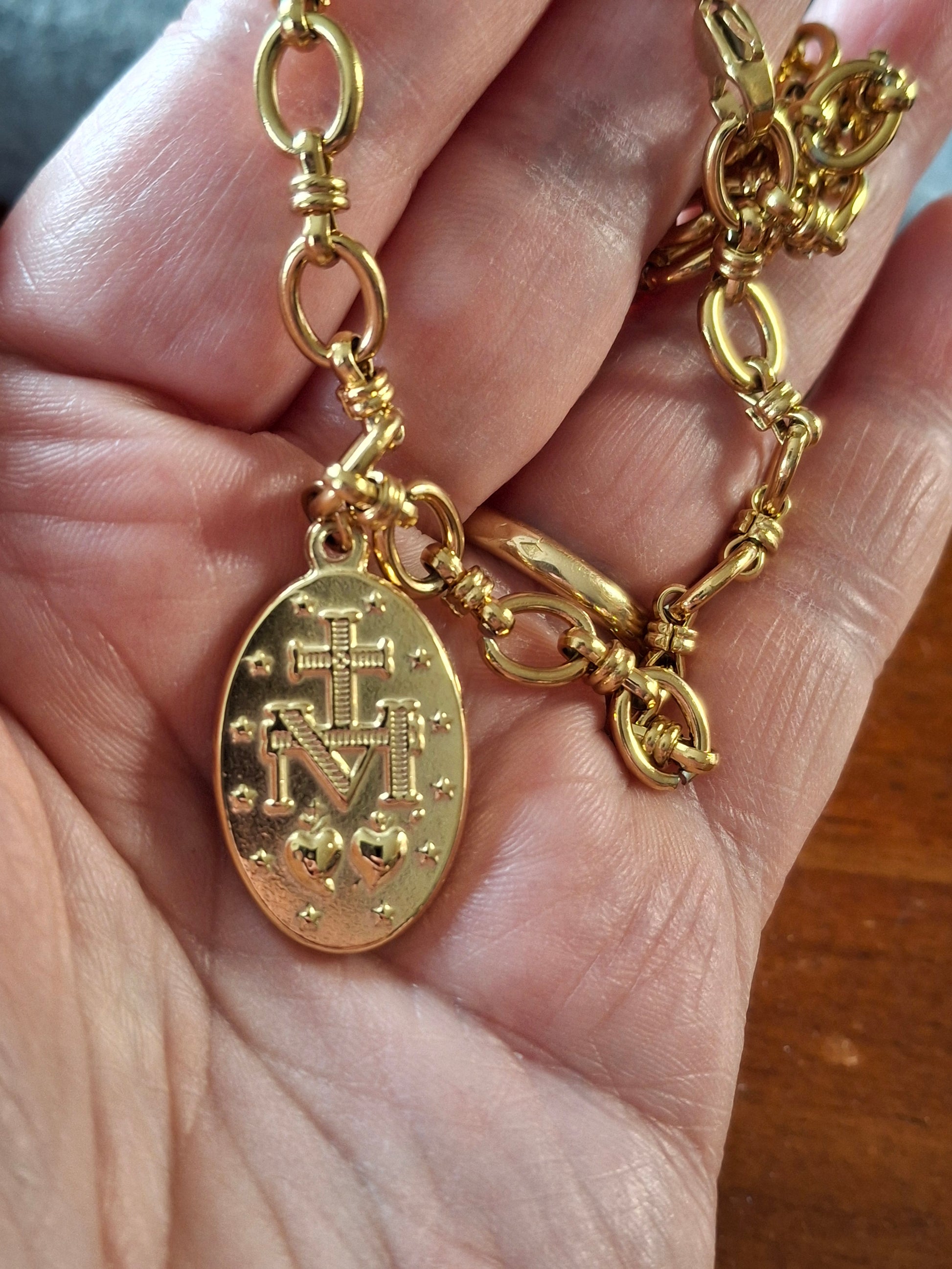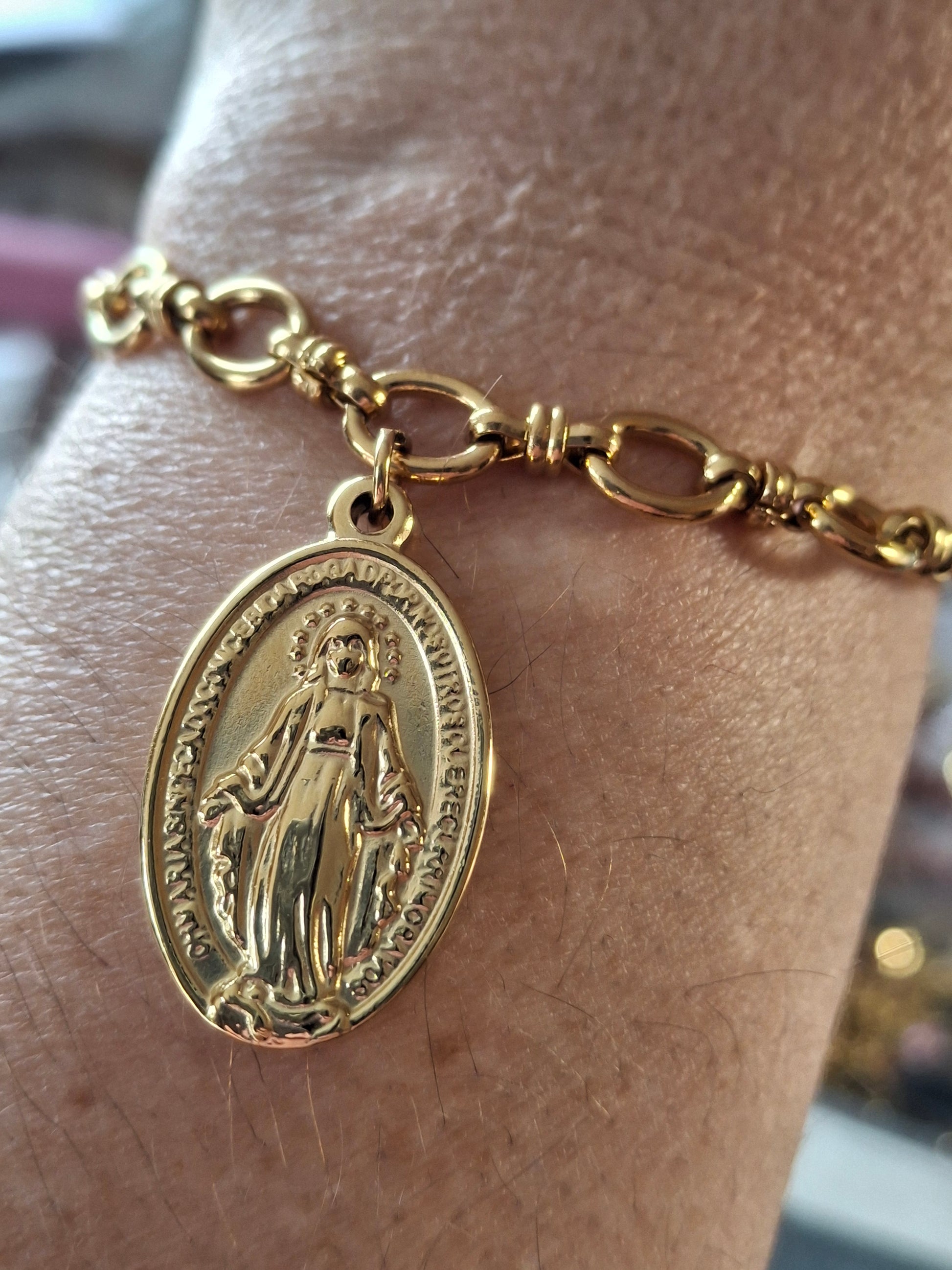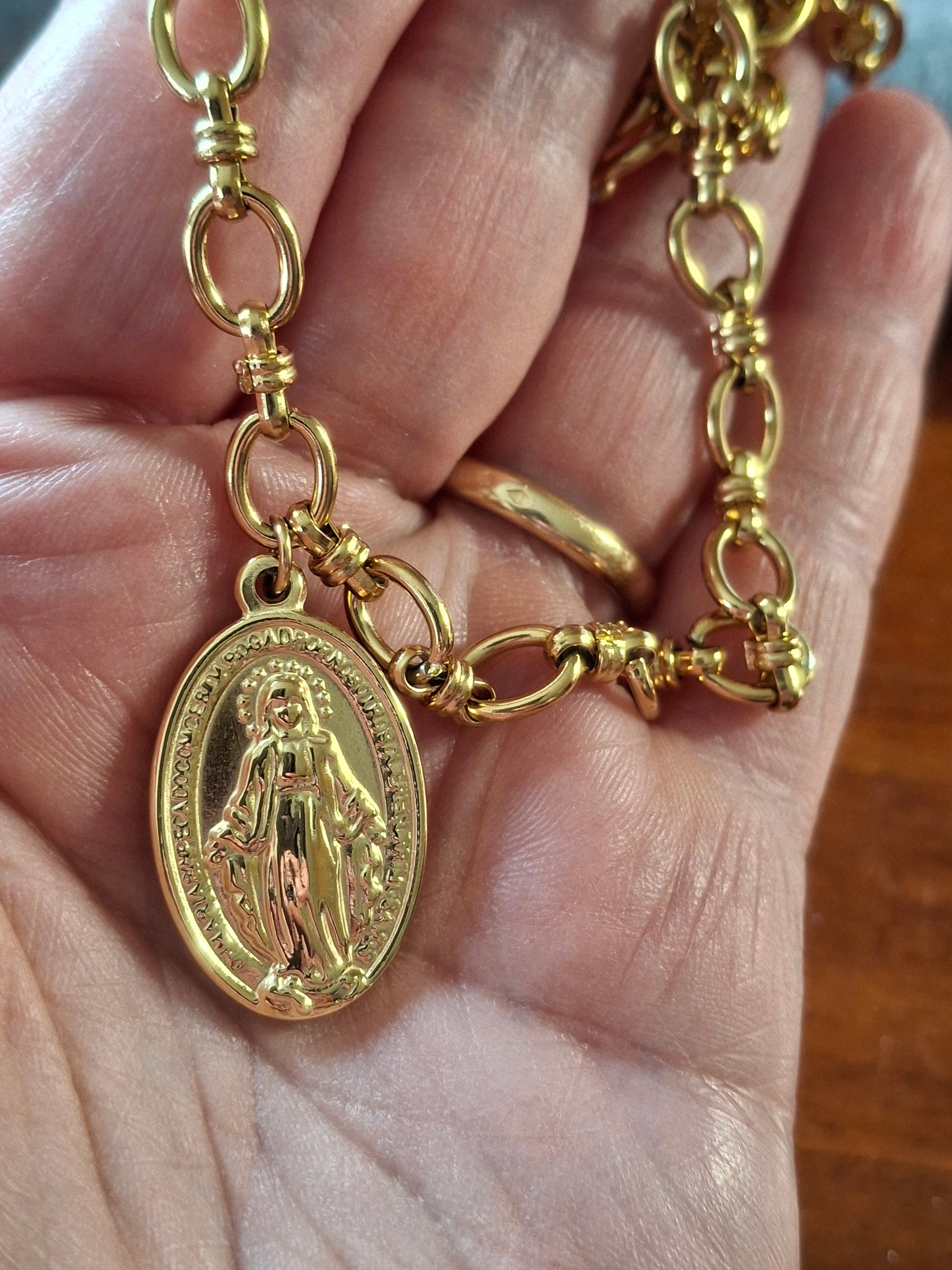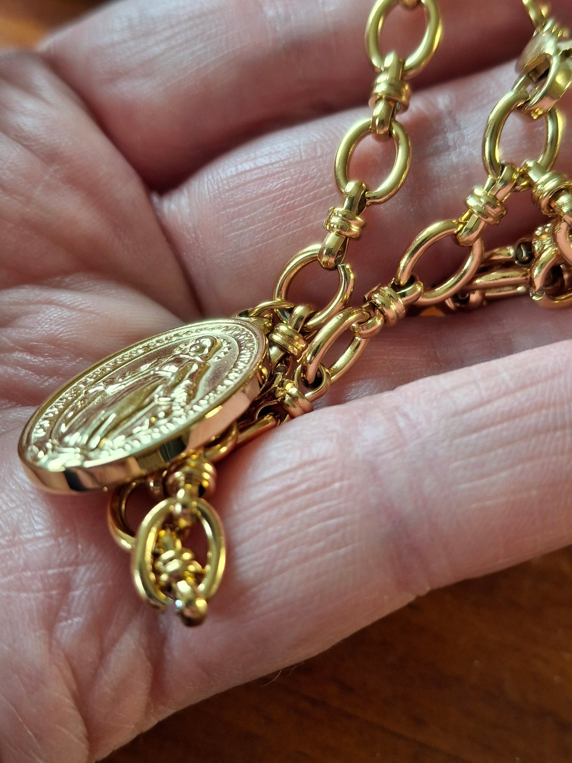 Bracelet chaîne acier inoxydable stainless steel 316 et grande médaille madone stainless steel 316