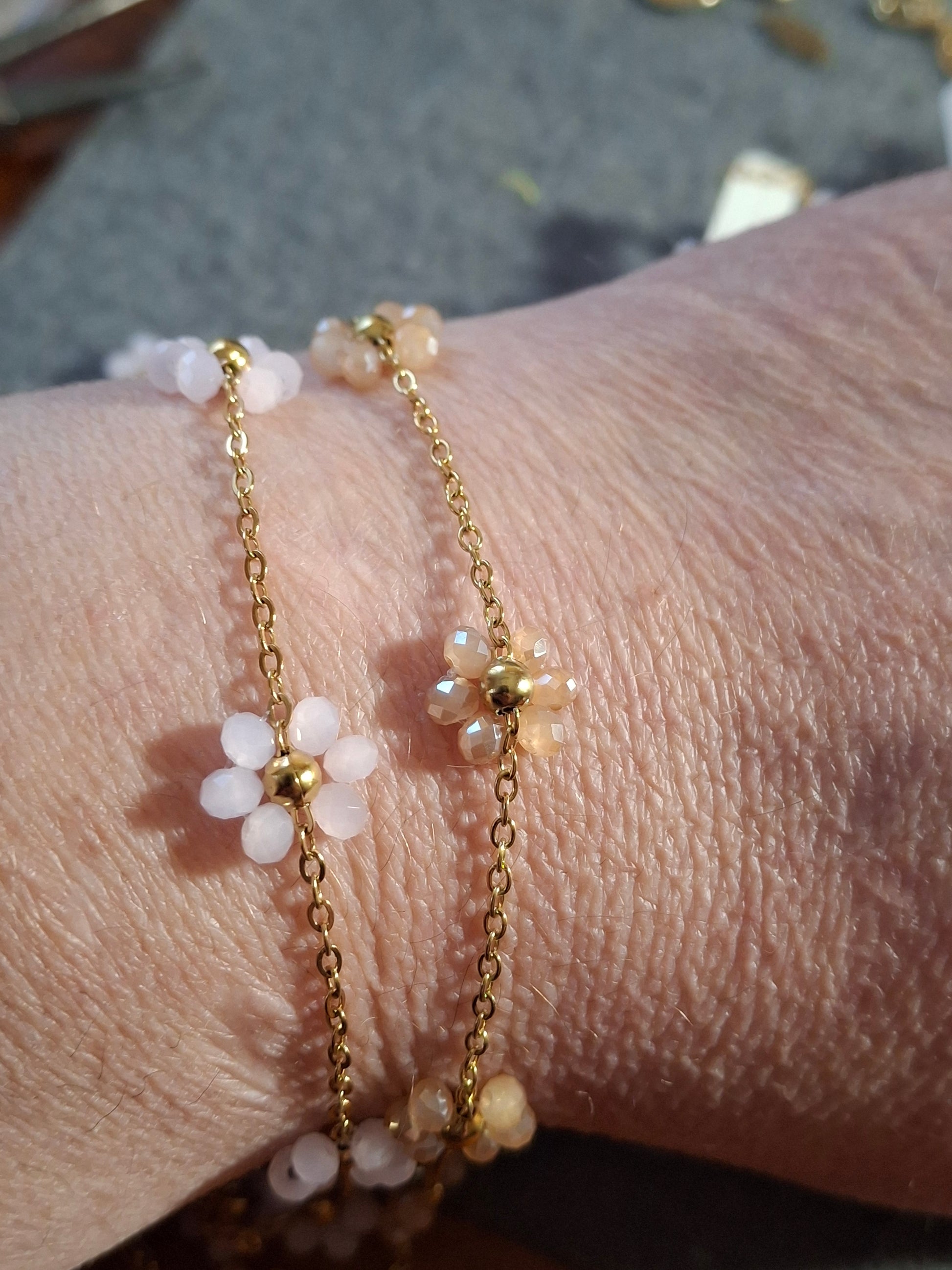 Bracelet chaîne acier inoxydable stainless steel fleurs sur mesure
