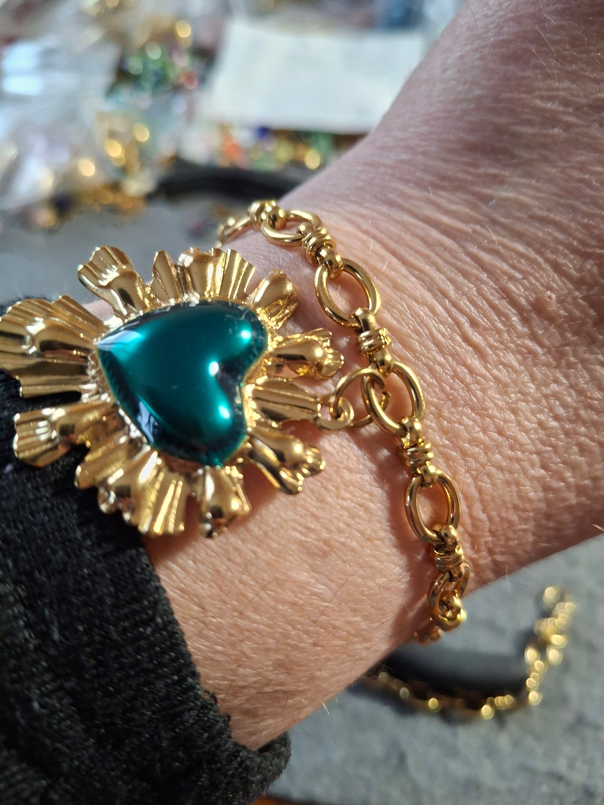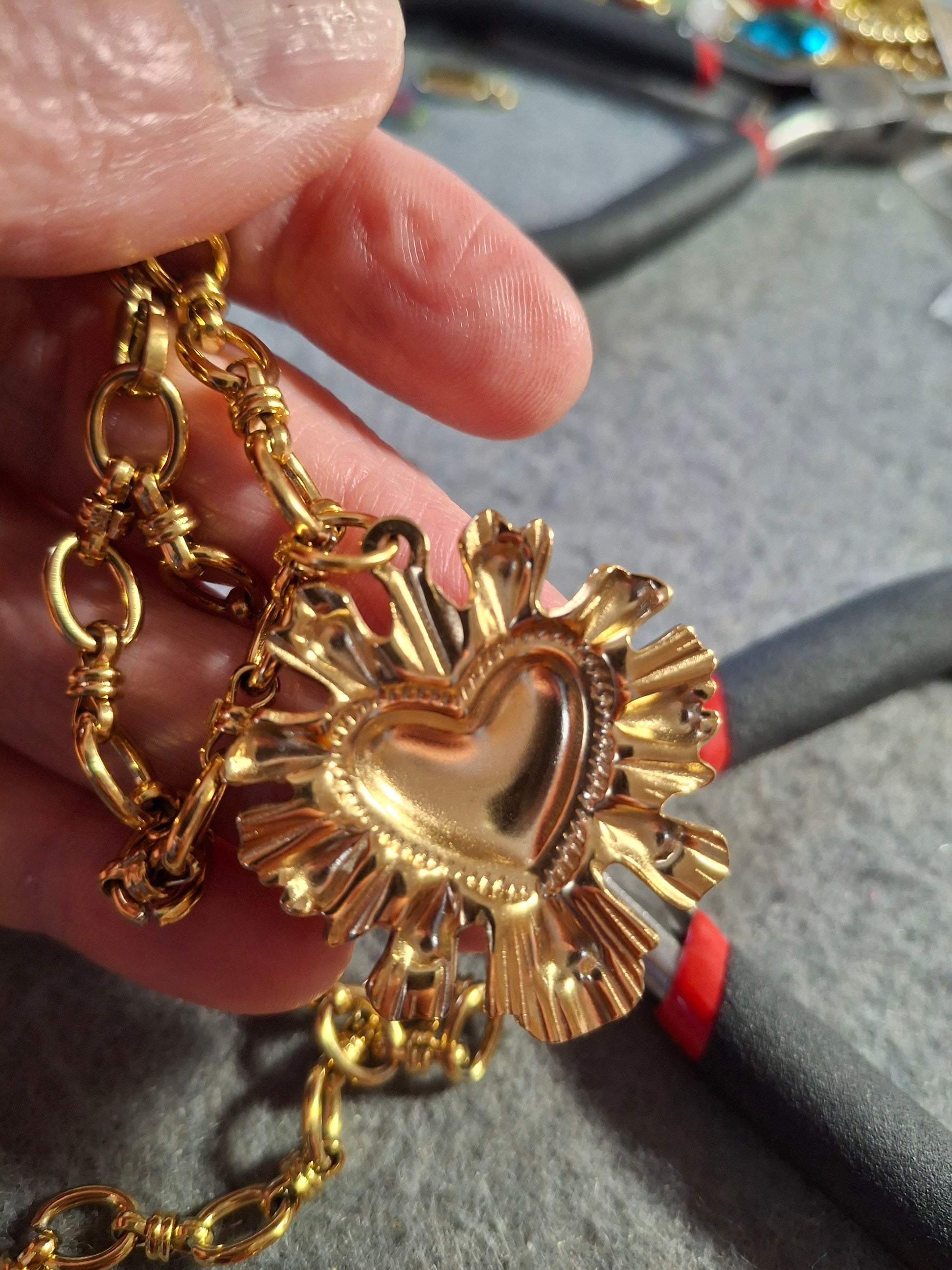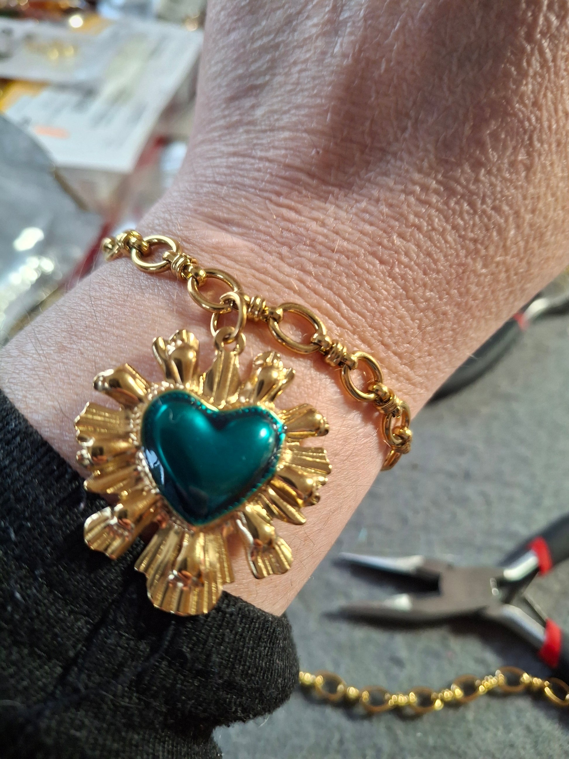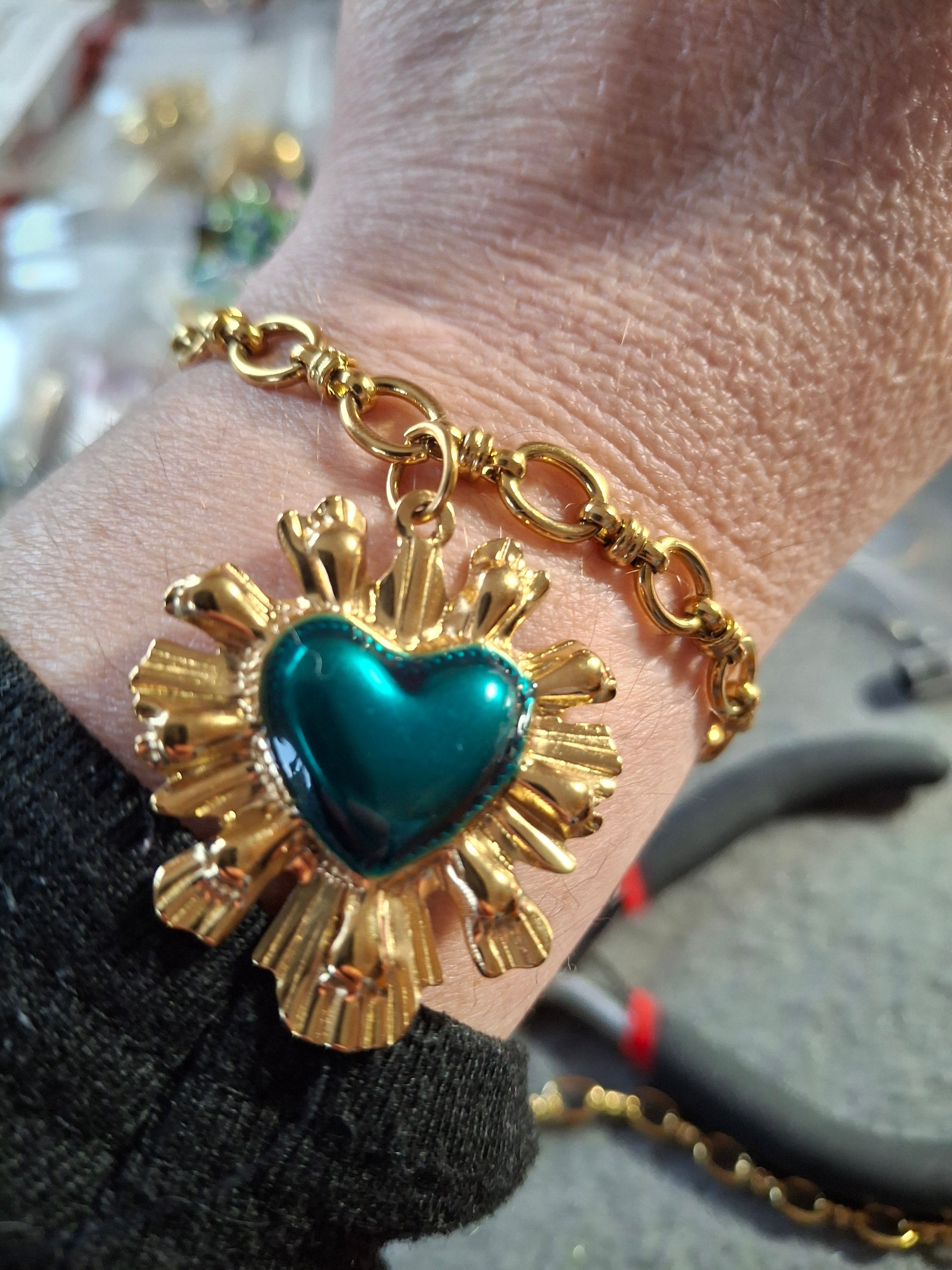 Bracelet chaîne maille gourmette stainless steel 316 ,grand cœur rétro stainless steel 316 sur mesure