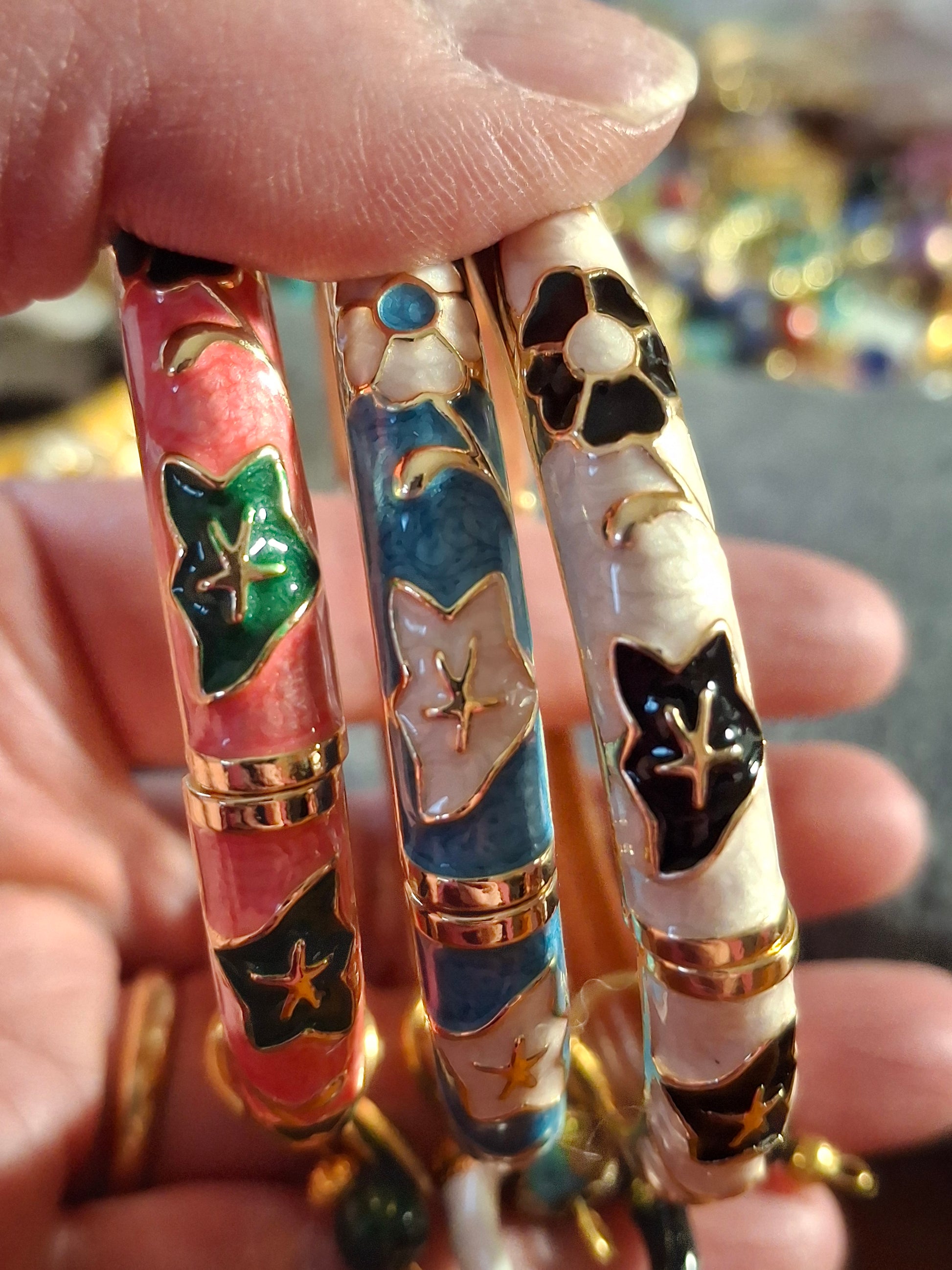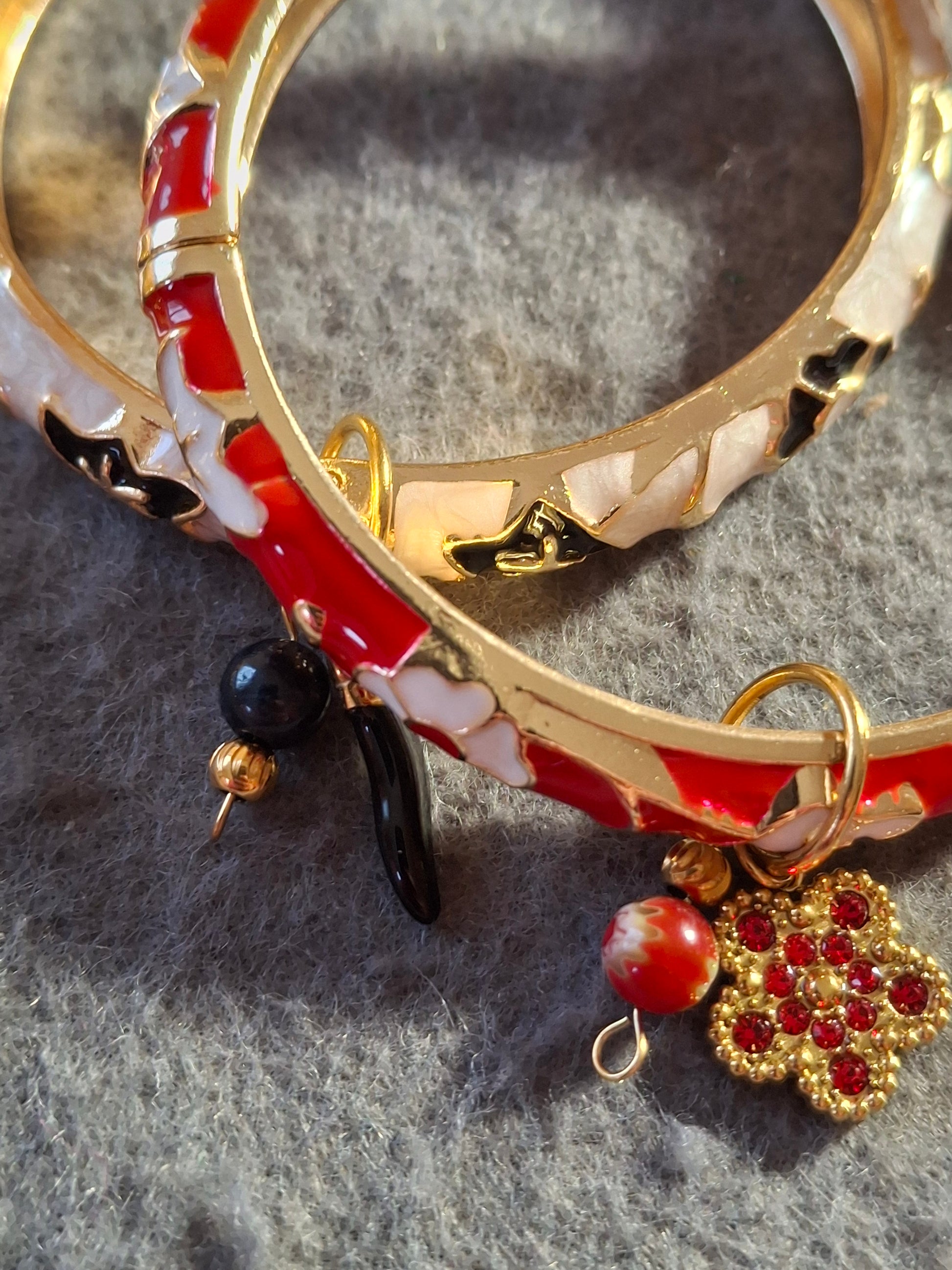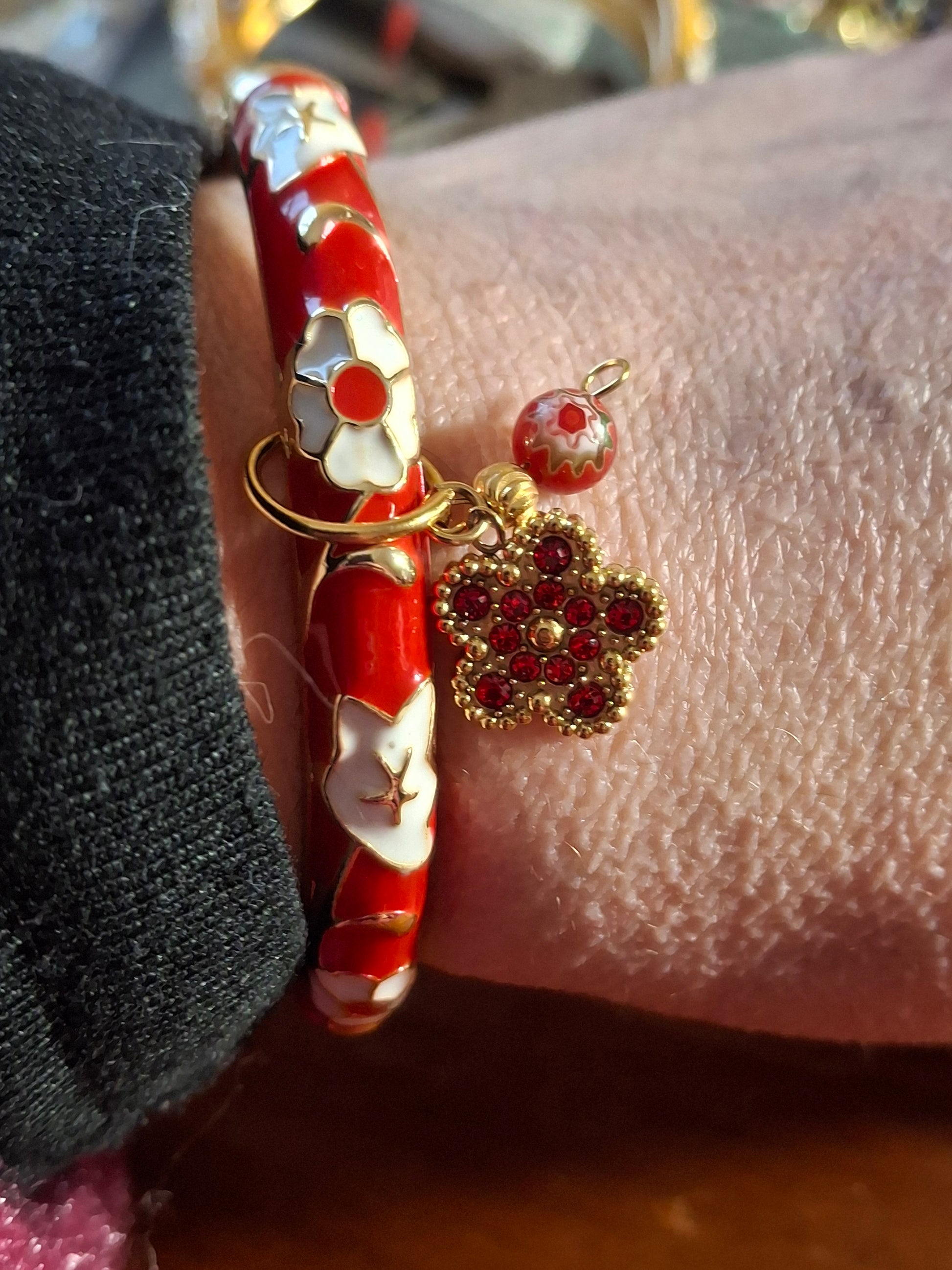 Bracelet jonc rigide email cloisonné et breloques