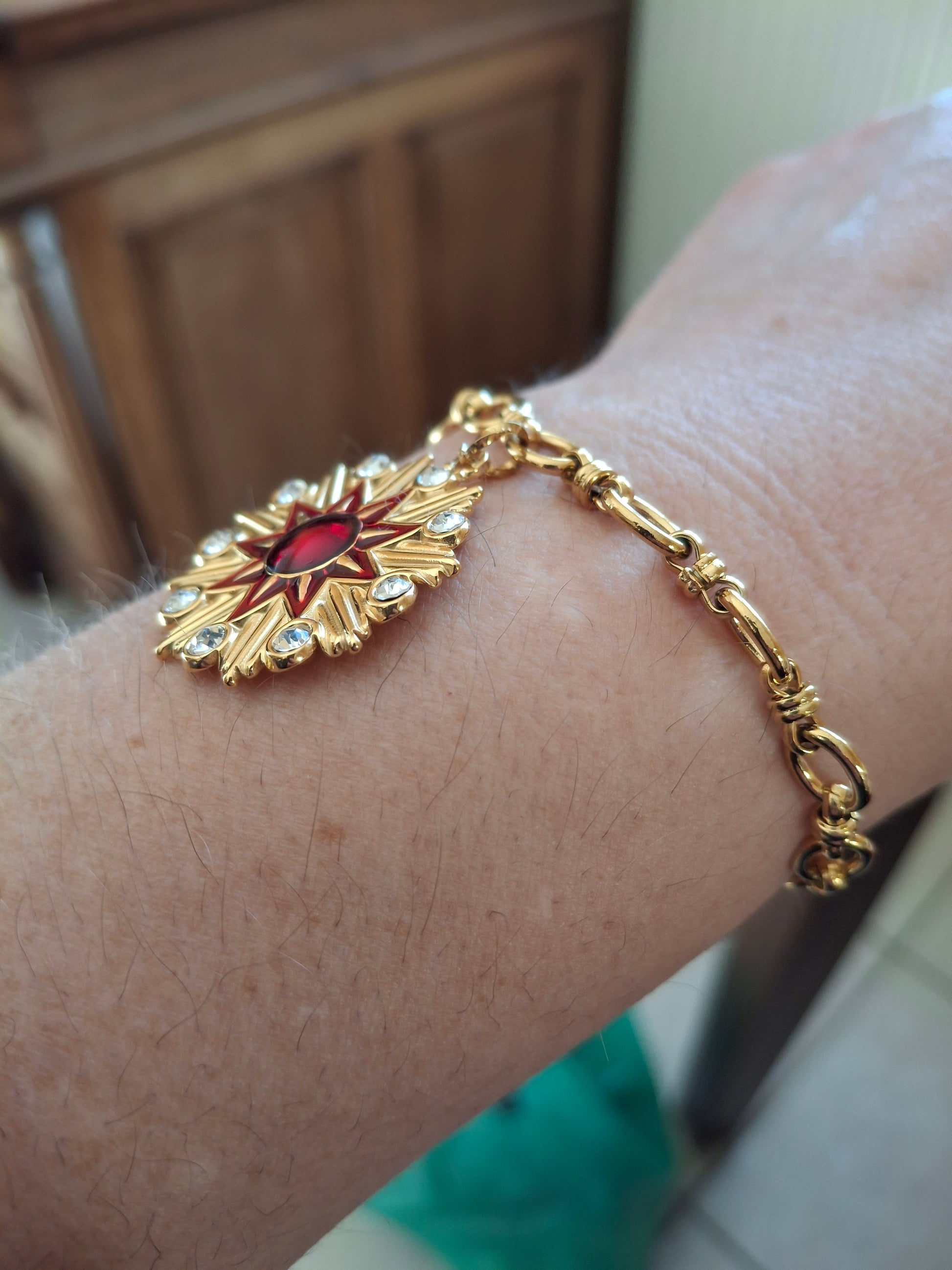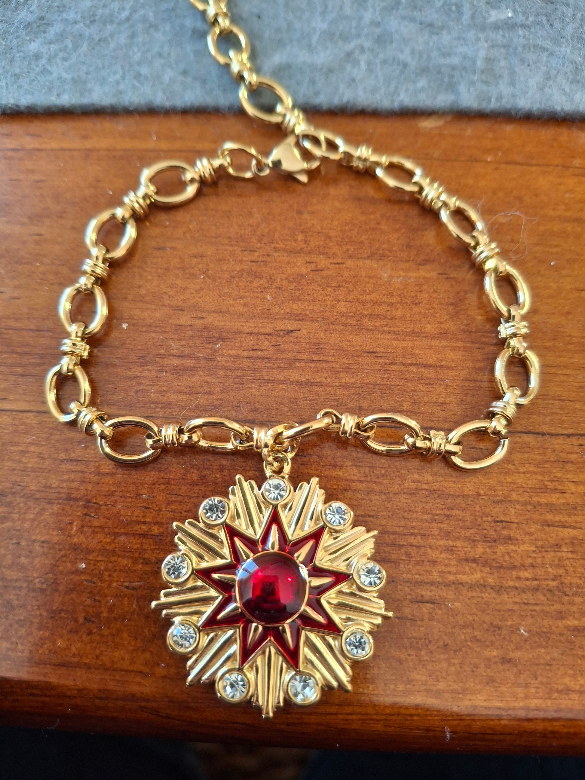 Bracelet chaîne acier inoxydable stainless steel 316 pendentif stainless steel 316 email rouge serti zirconium, sur mesure