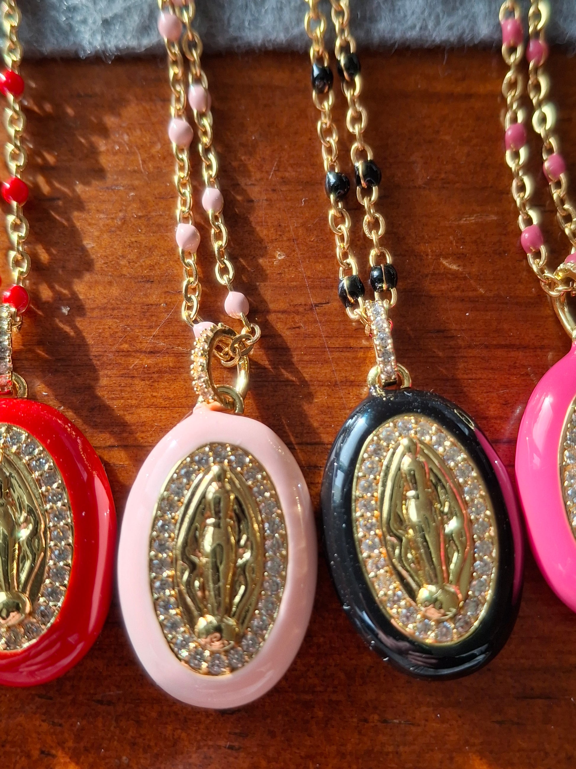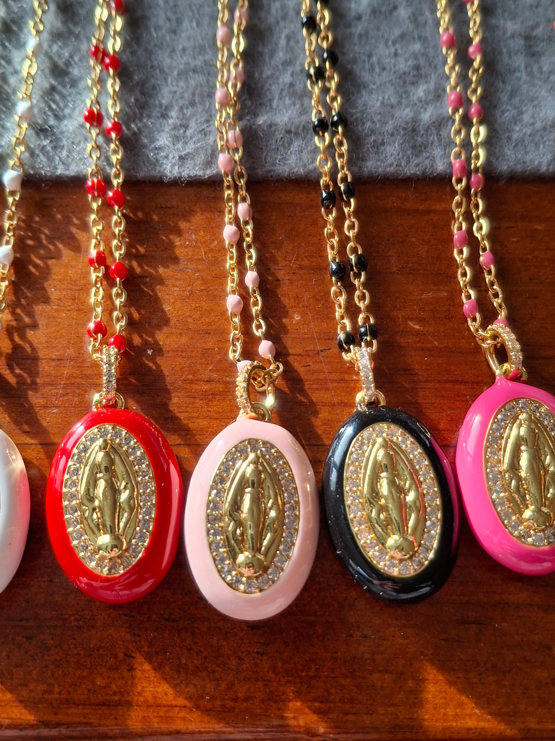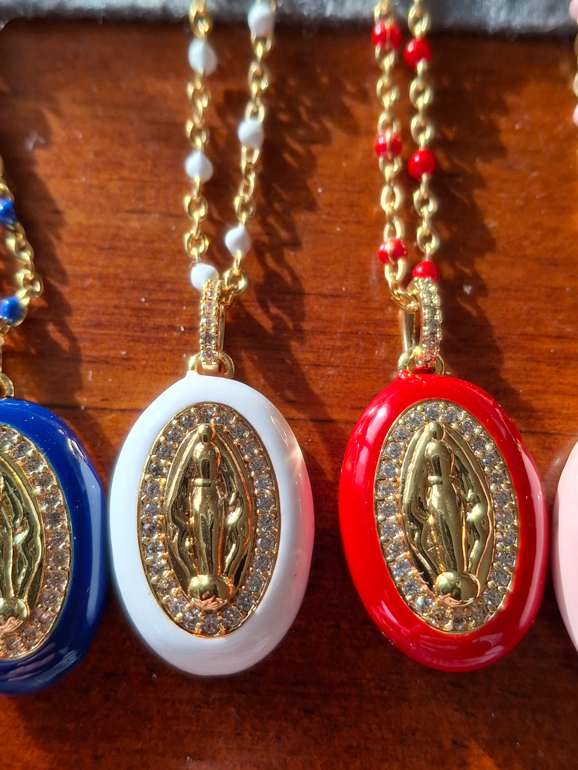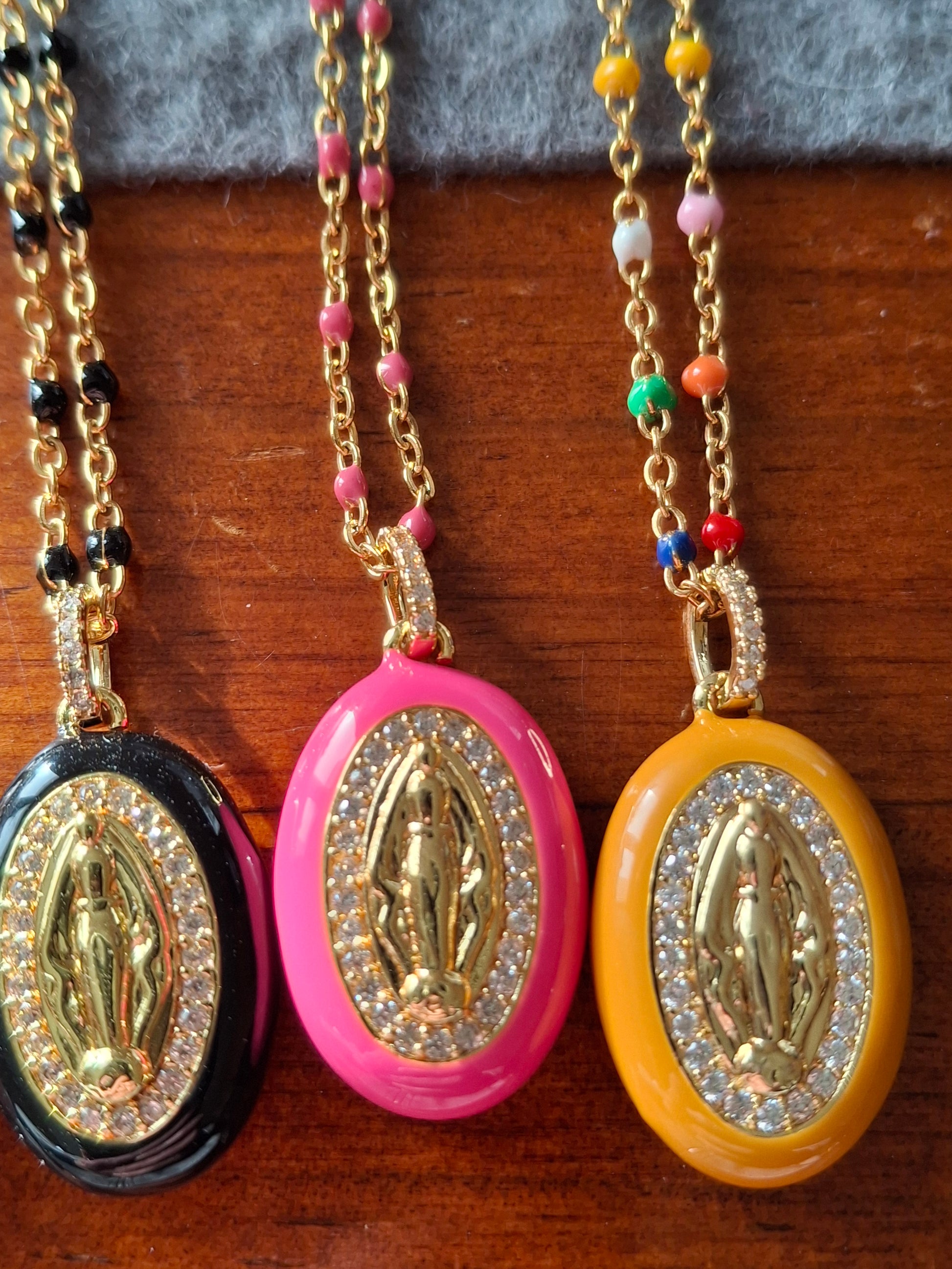 Collier chaîne acier inoxydable stainless steel grande médaille madone en email coloré