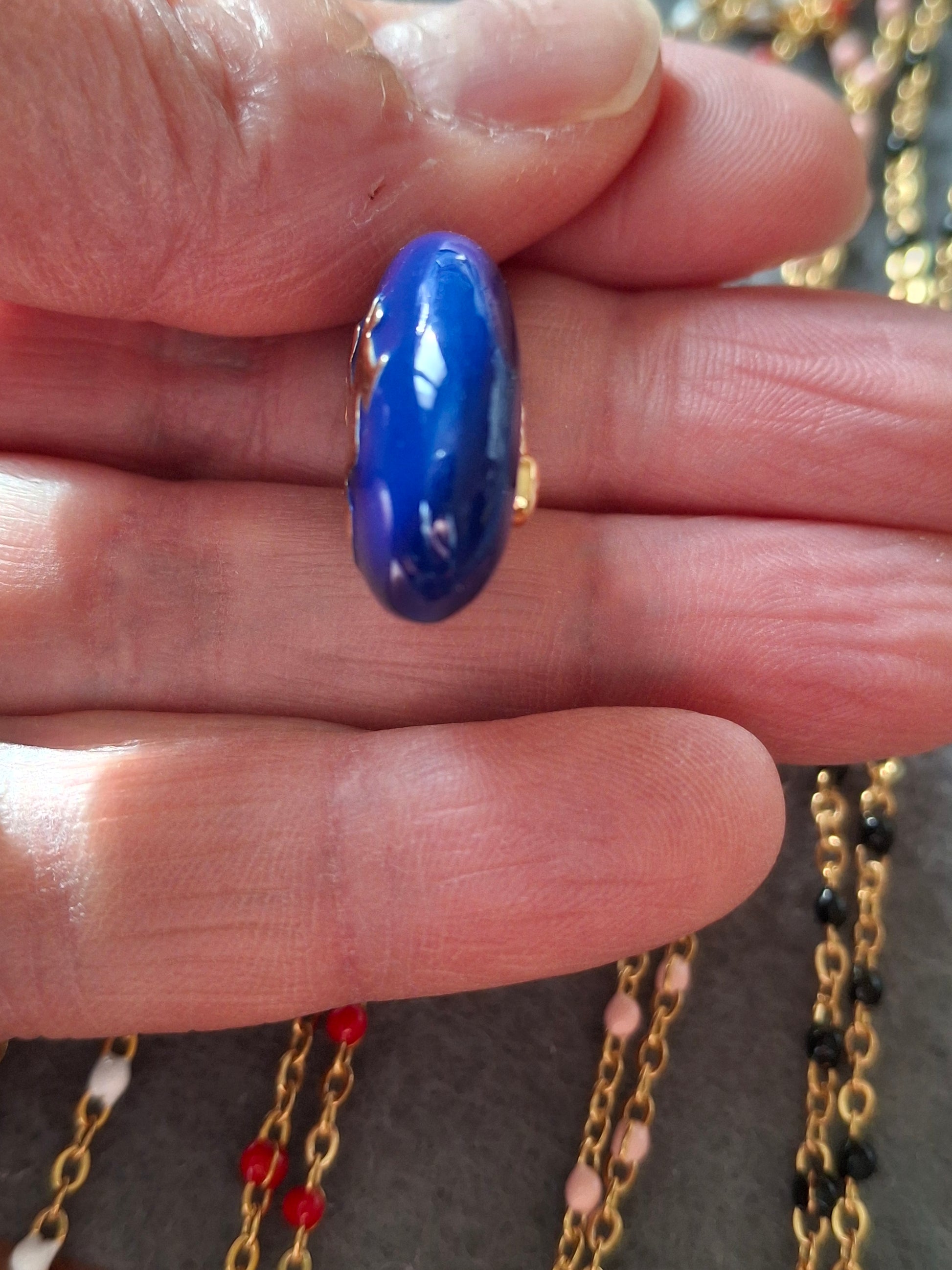 Collier chaîne dorée acier inoxydable stainless steel et perles en email coloré longueur totale proposée 55cms peut être ajustée sur demande sans nickel cadmium et plomb