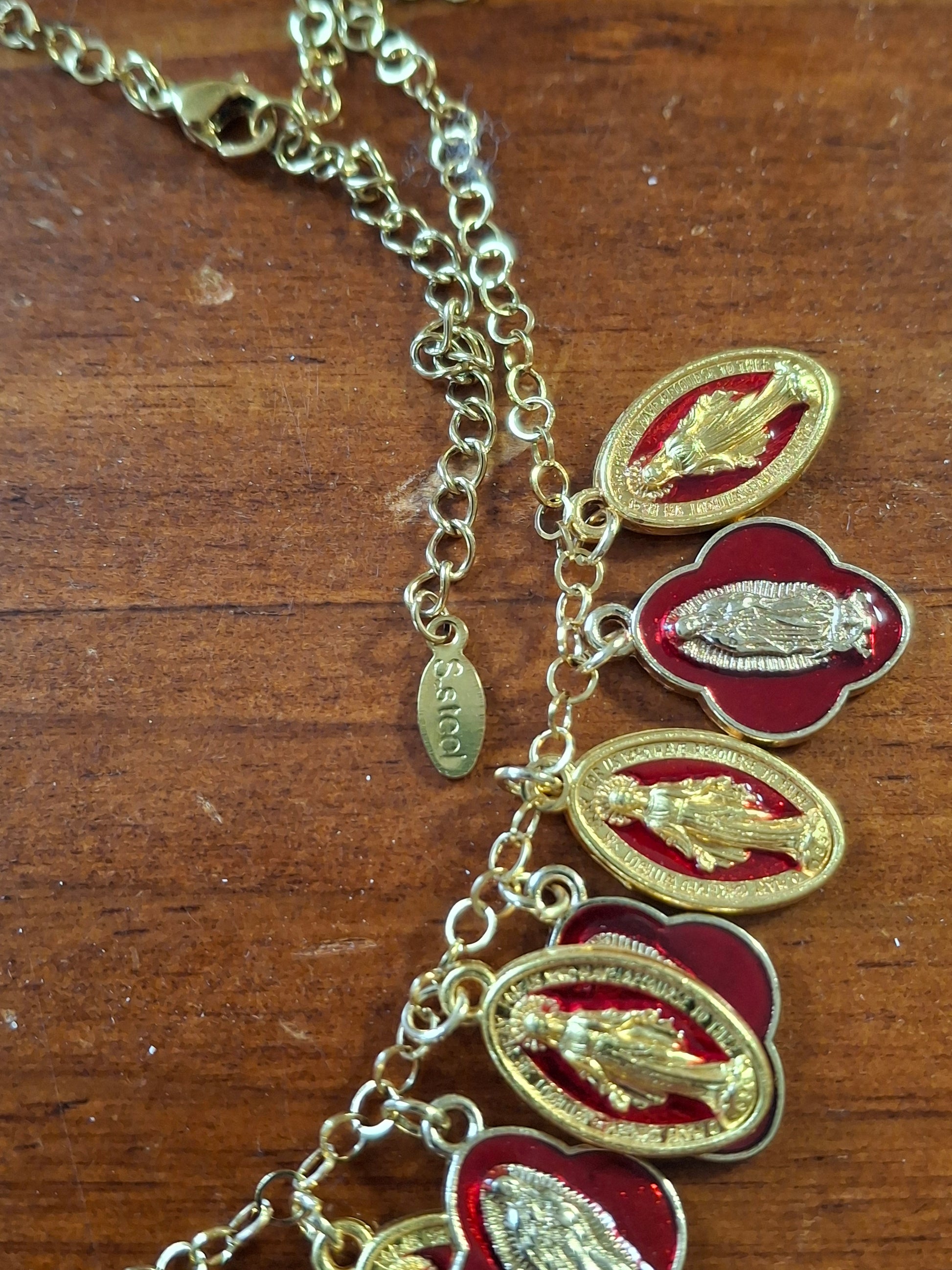 Collier chaîne dorée acier inoxydable rolo plaqué or et breloques madone handmade