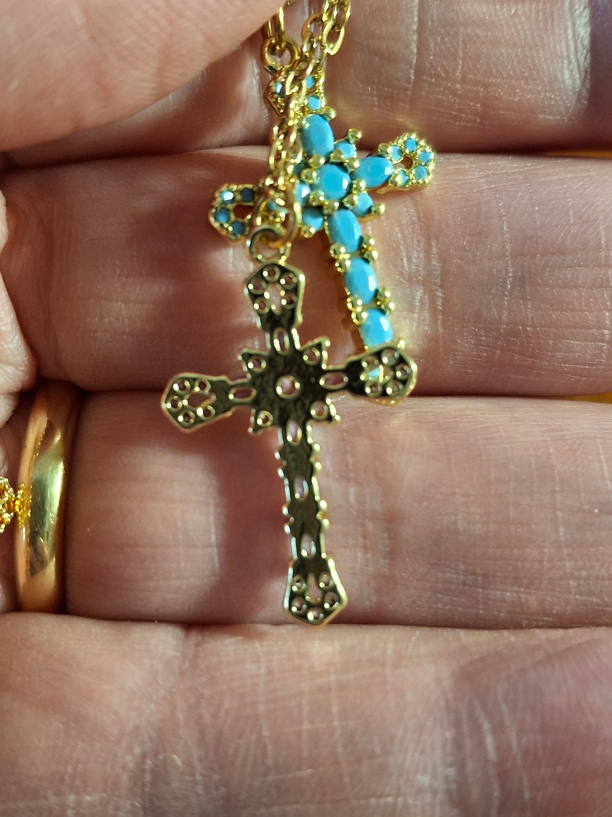 Collier chaîne dorée acier inoxydable stainless steel 316 ,croix plaqué or 18K sertie cristal et zirconium AAA austrian