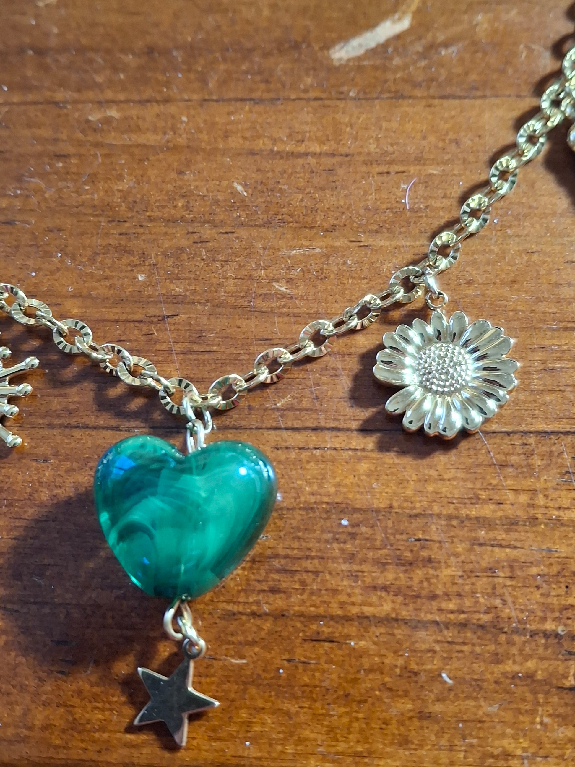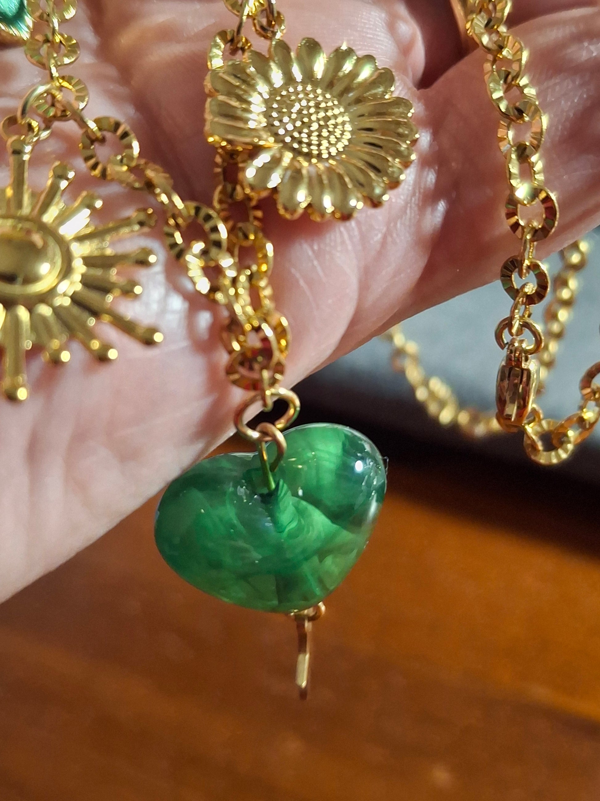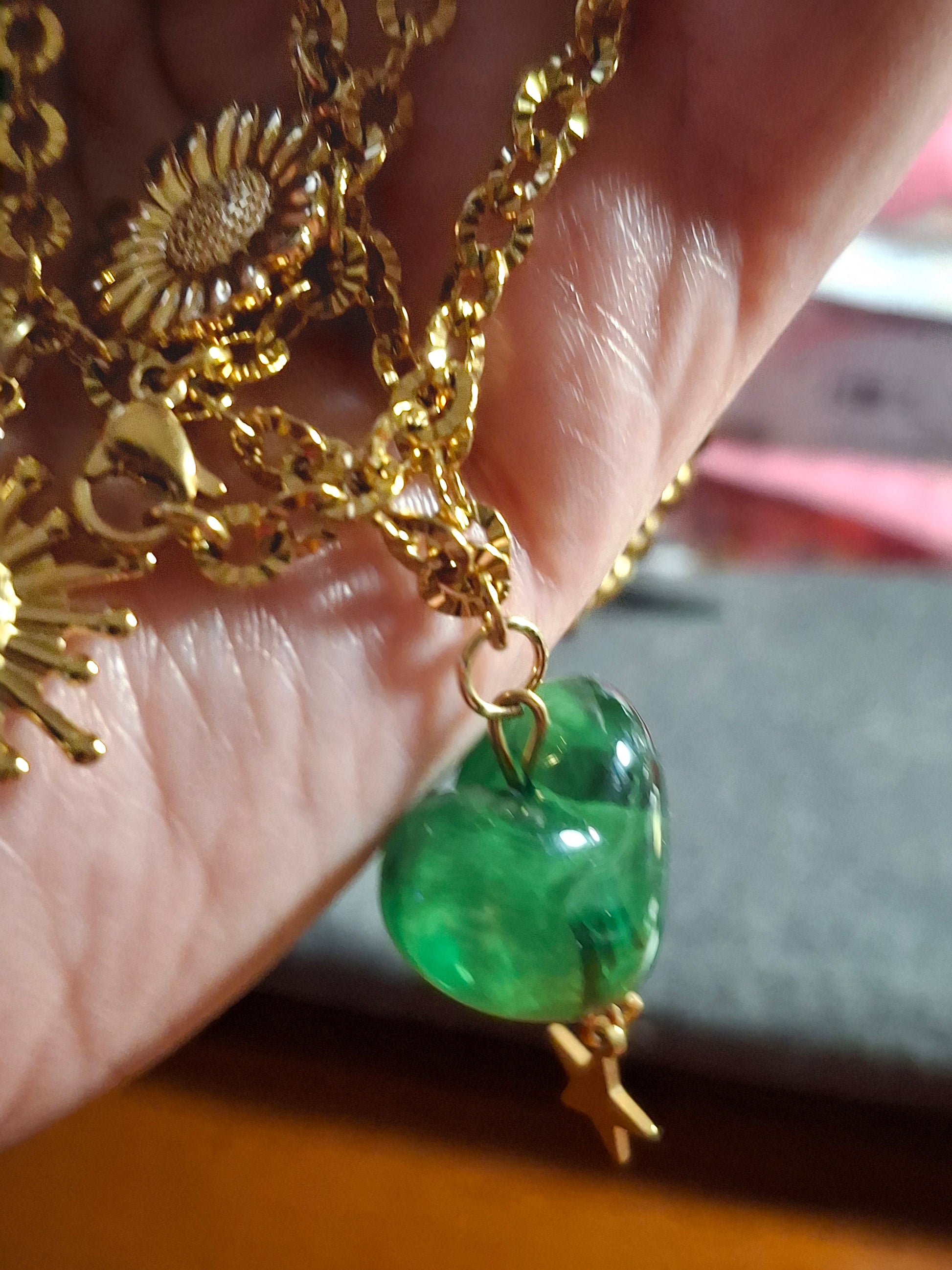 Breloques stainless steel 316 sans nickel cadmium et plomb, coeur et email vert, fleur, soleil, piment, étoile, coeur ,perle, coeur en acrylique vert monté sur tige en acier inoxydable stainless steel 316