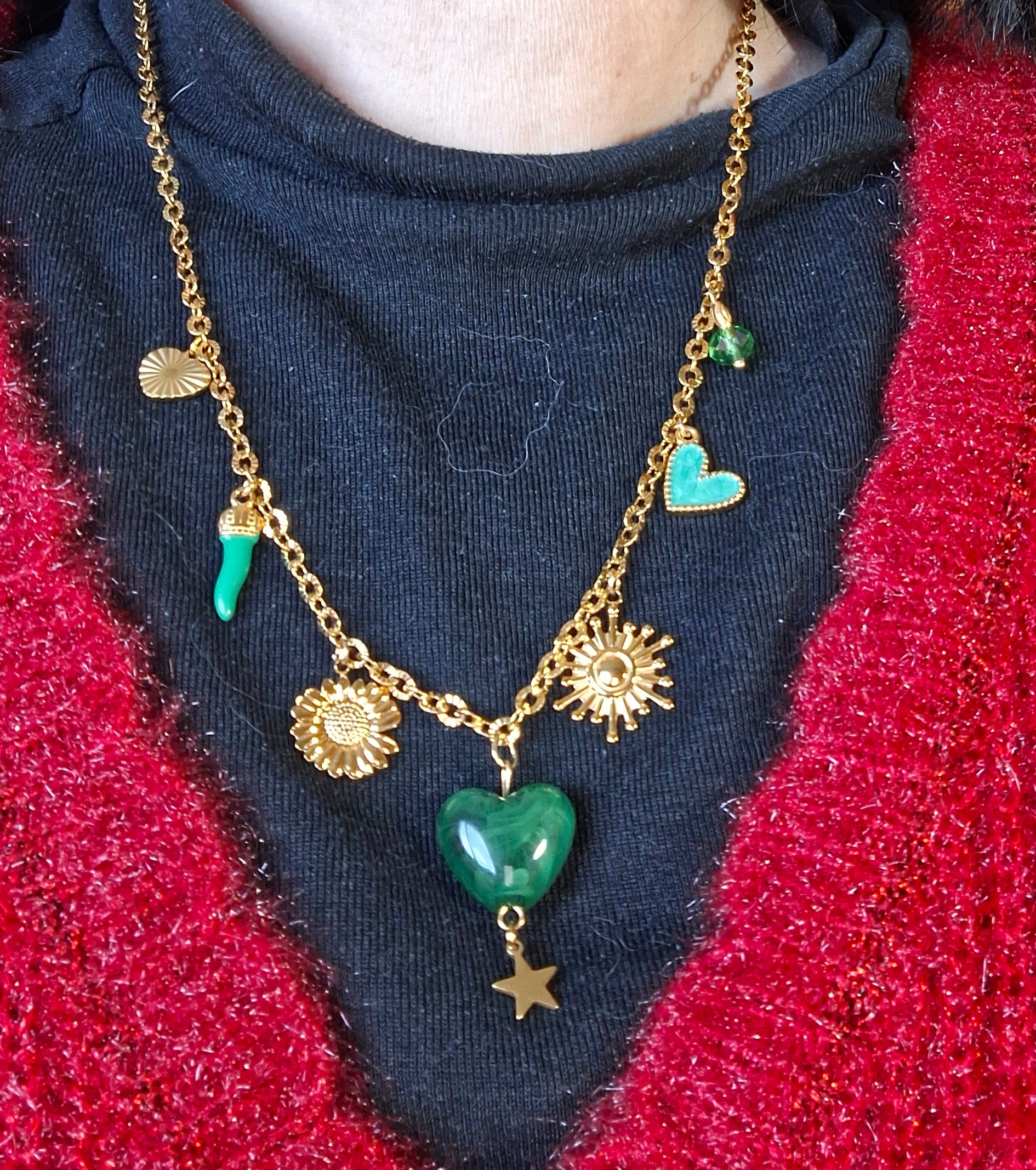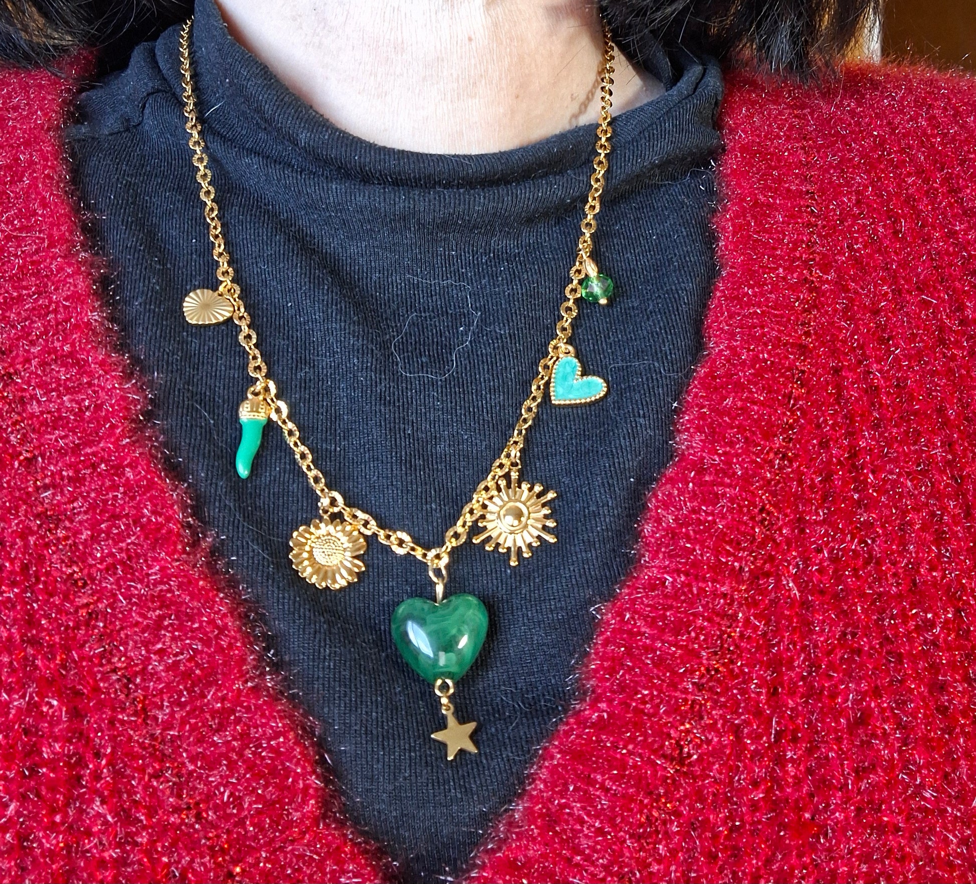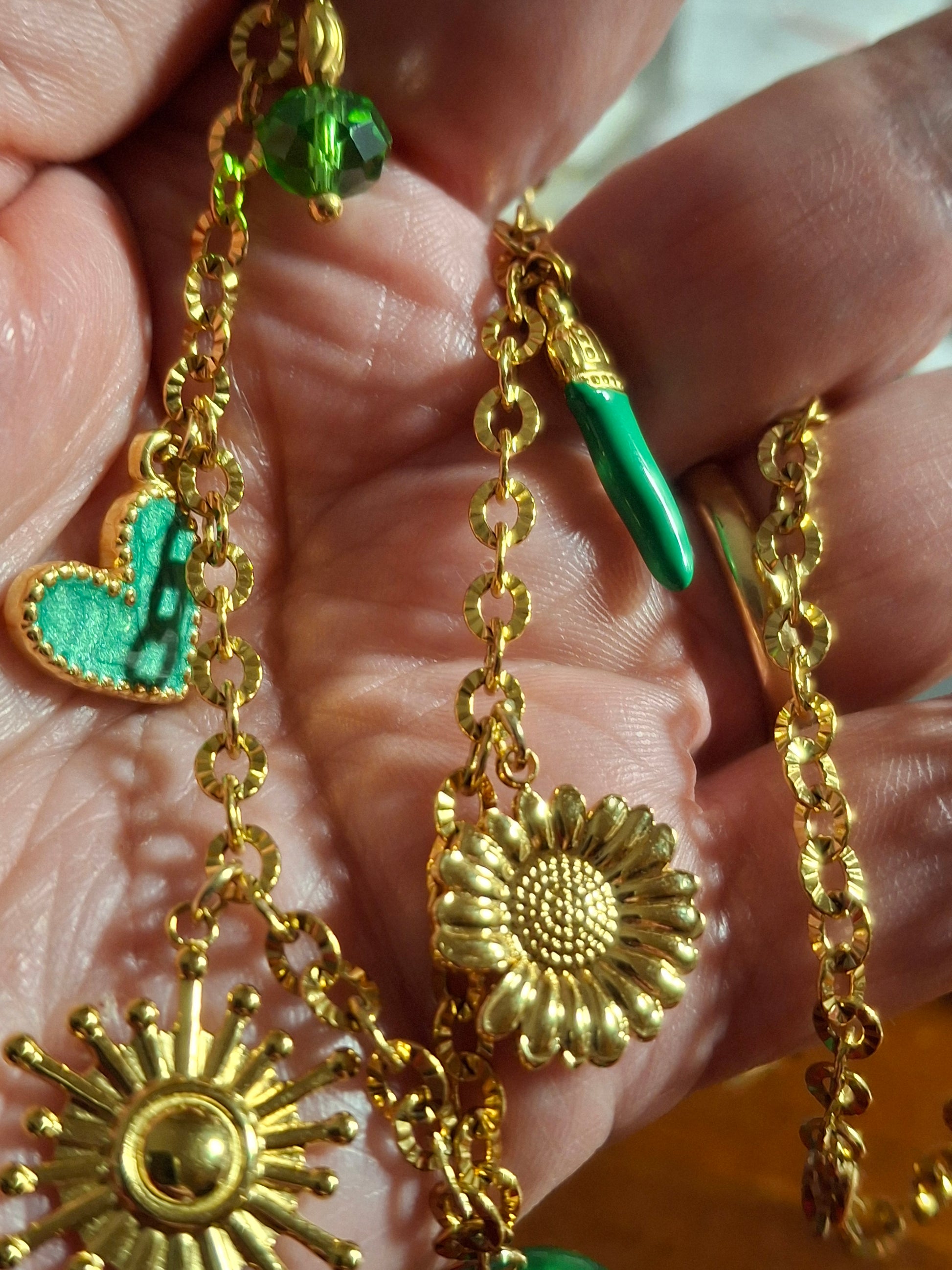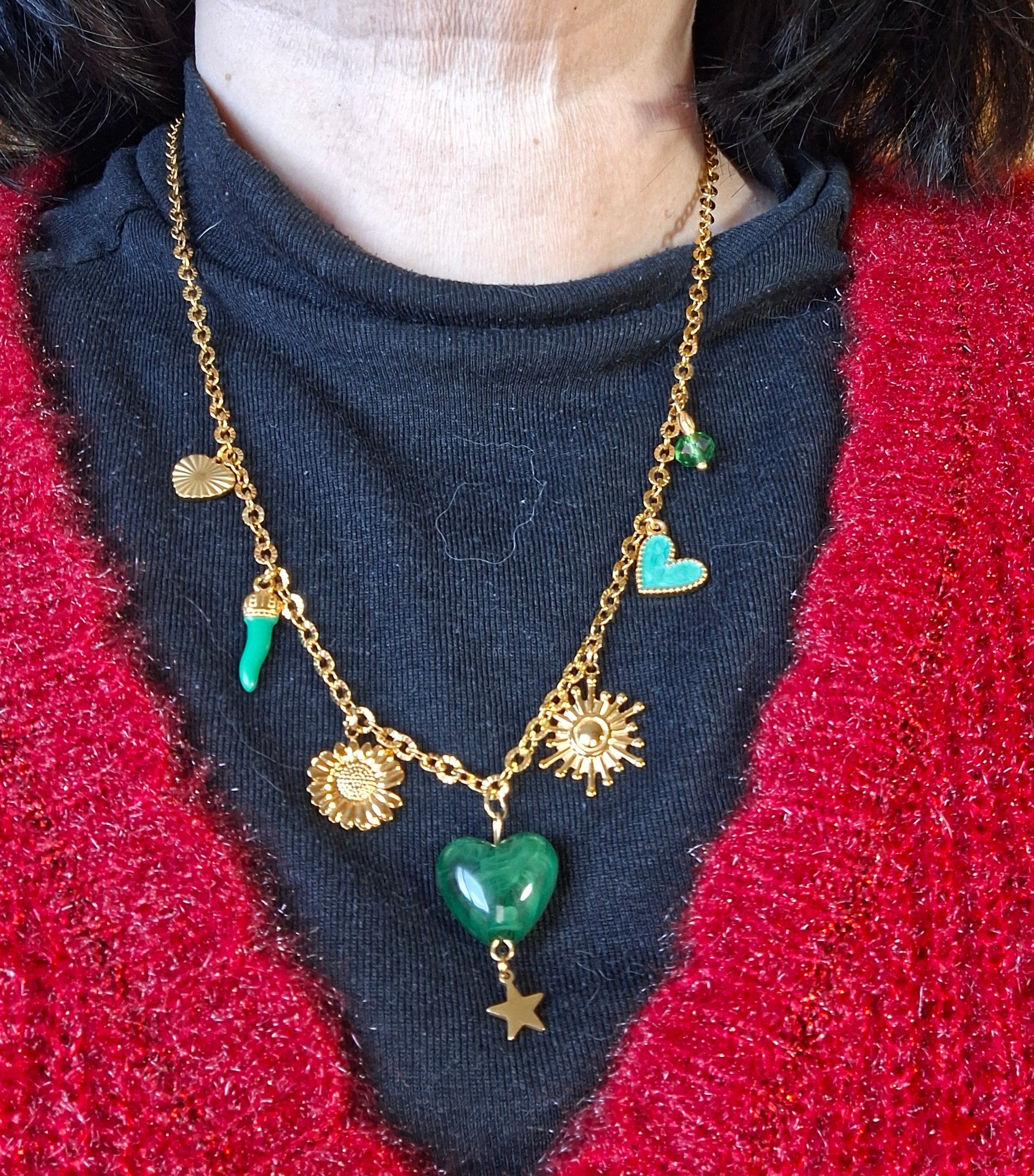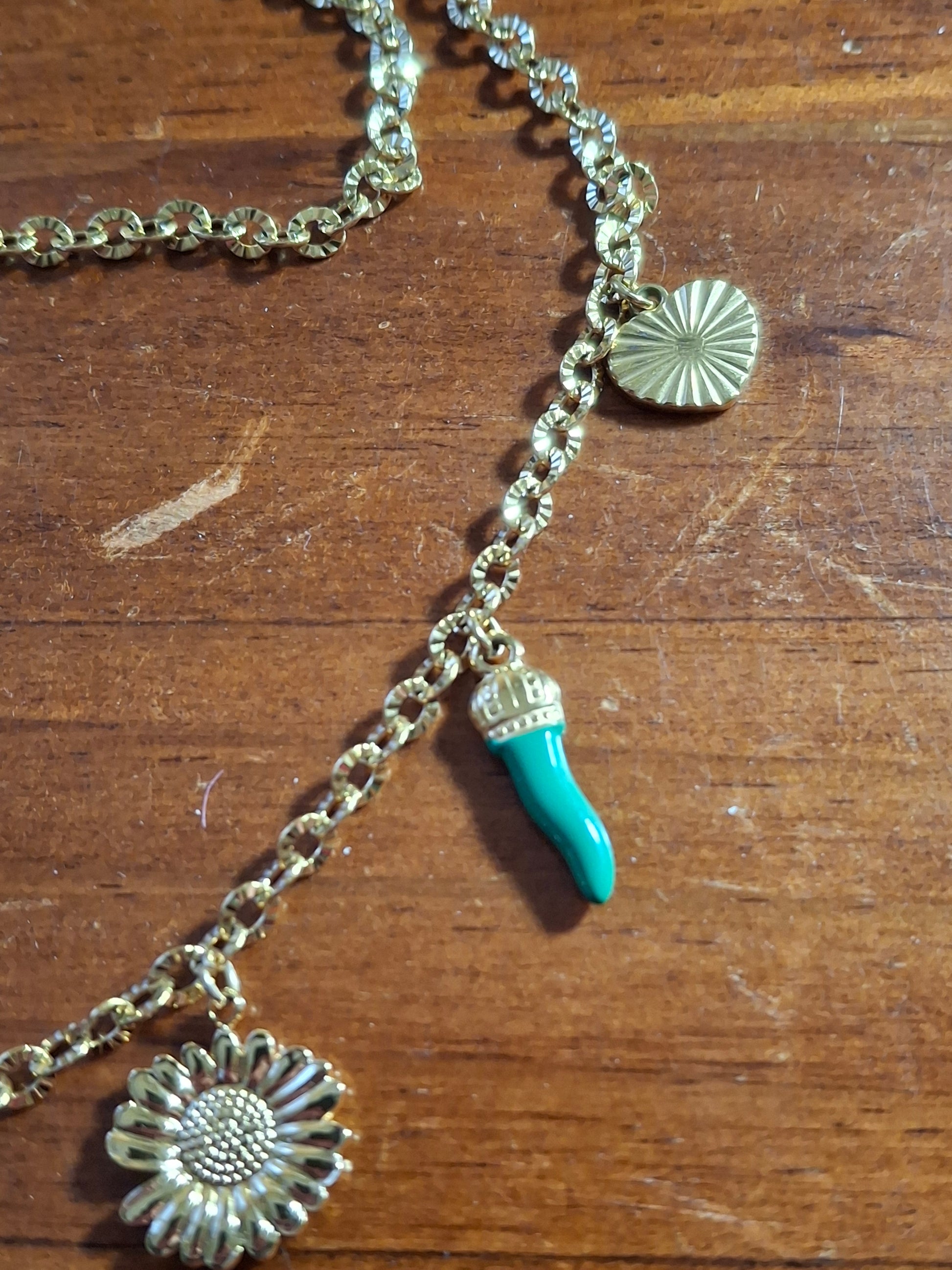 Collier chaîne dorée acier inoxydable stainless steel 316 et breloques handmade sur mesure