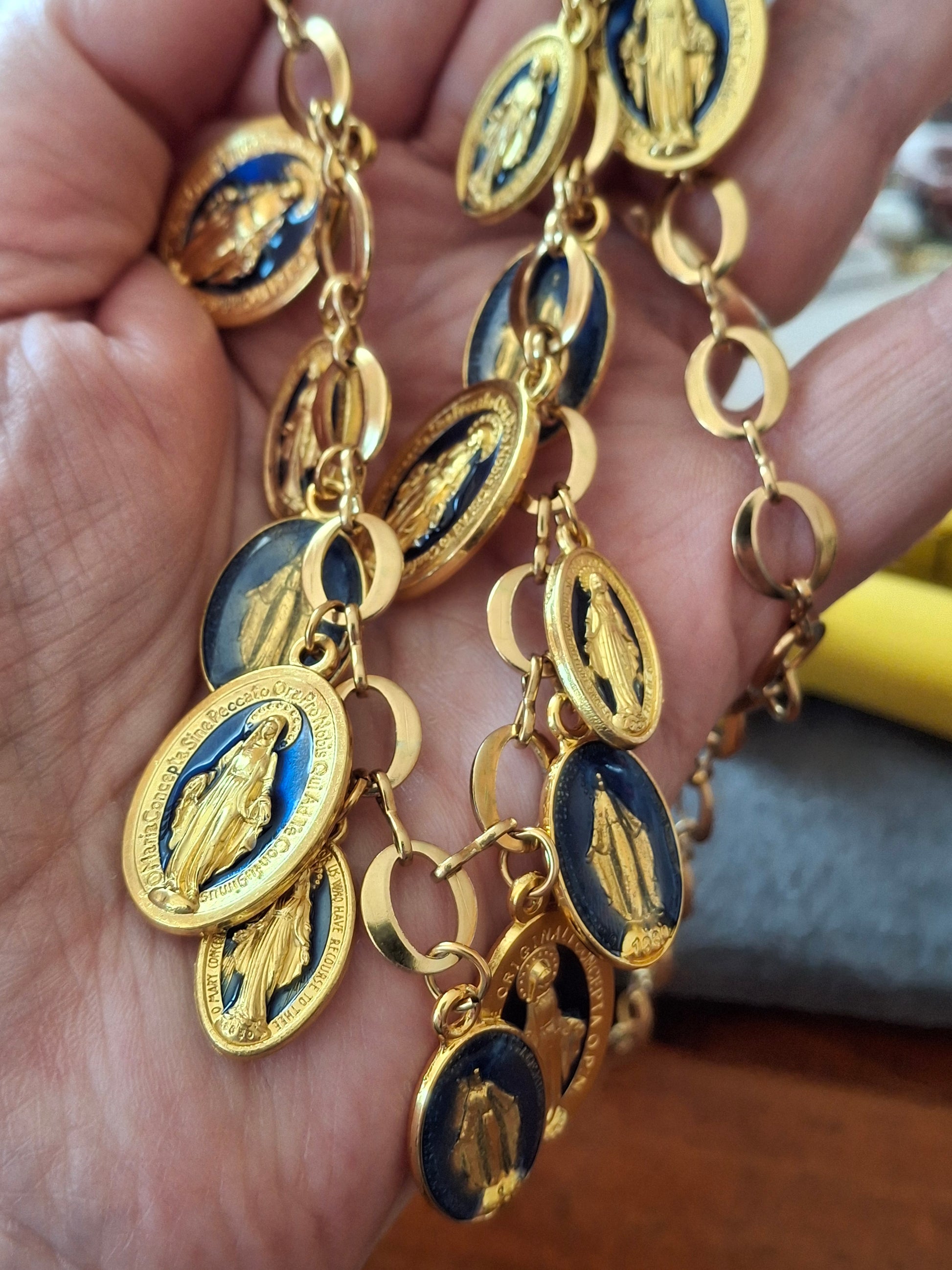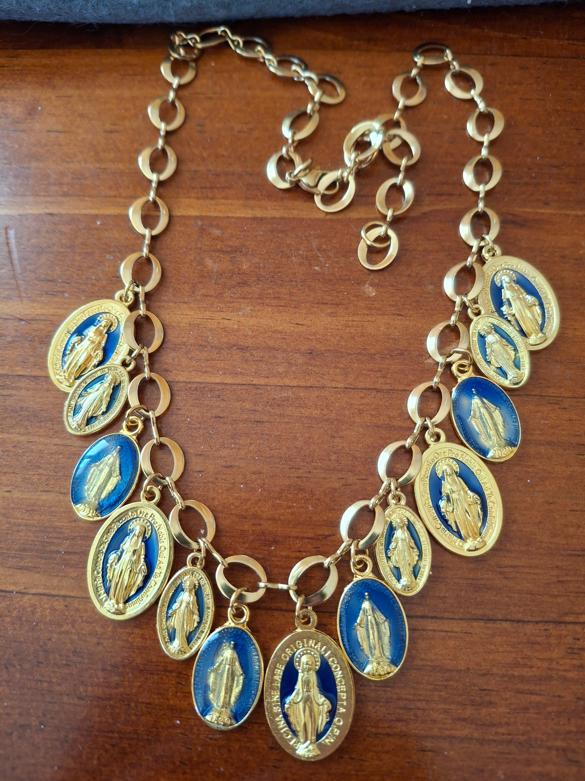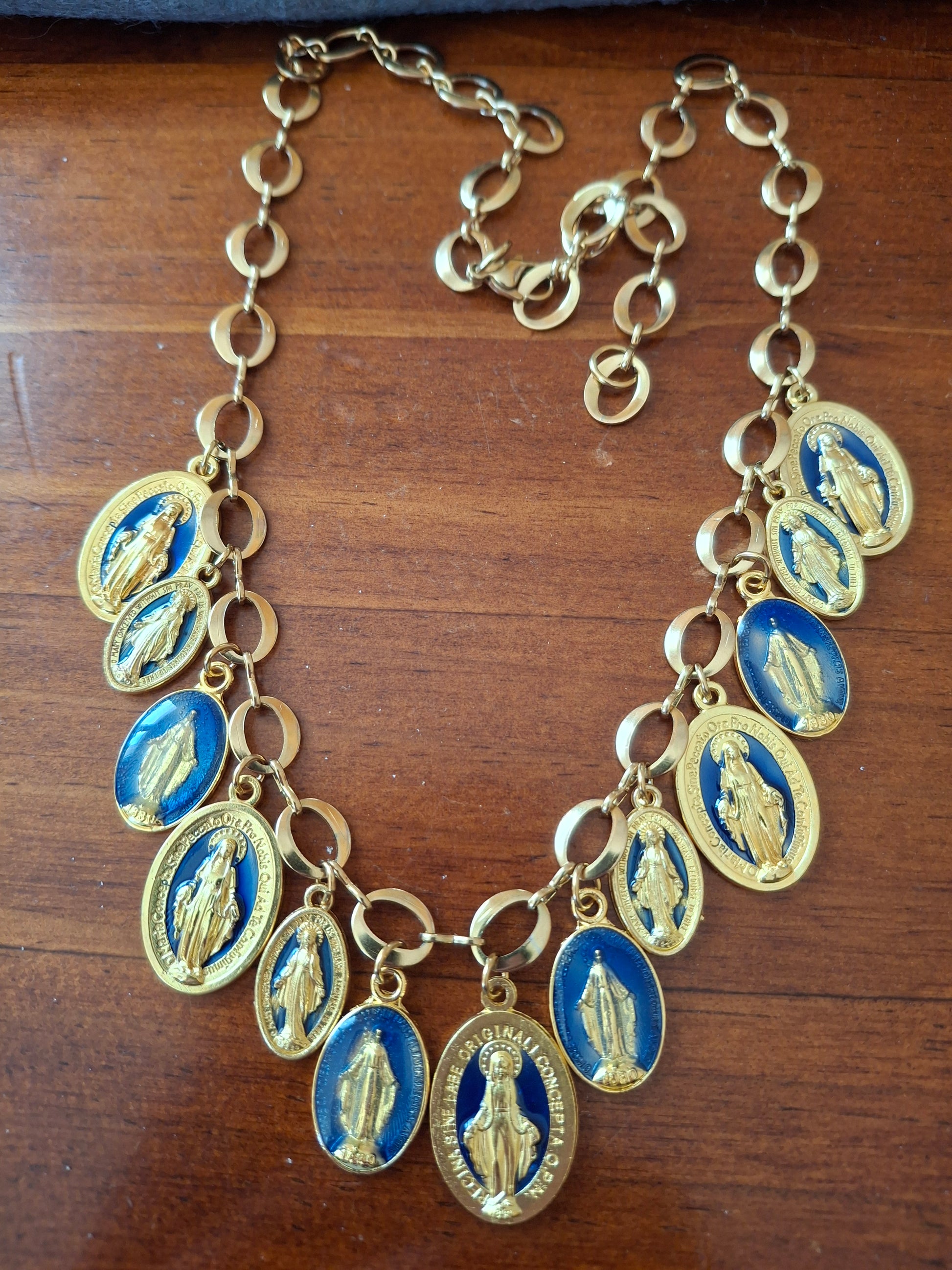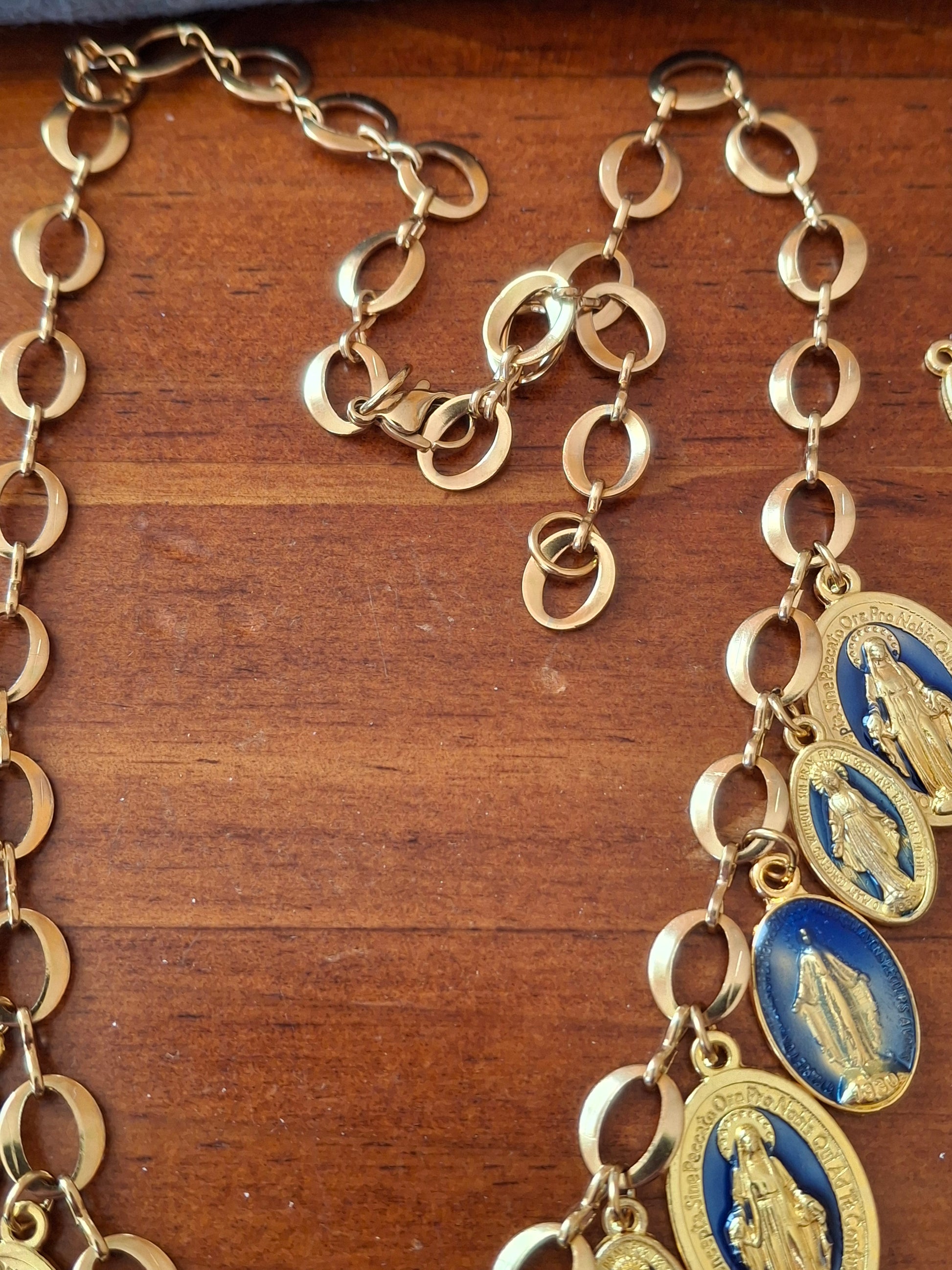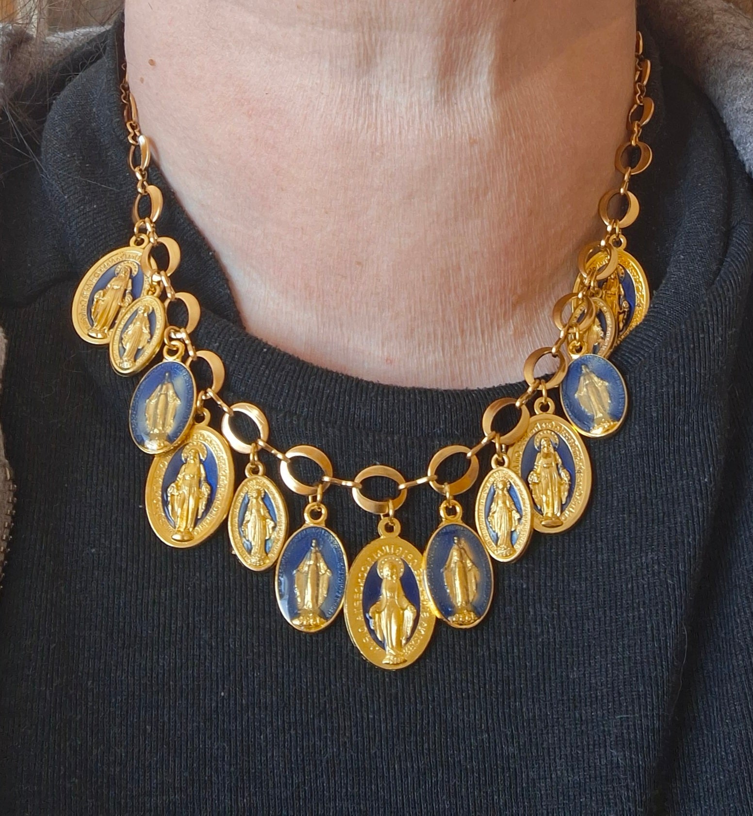 Collier chaîne dorée acier inoxydable stainless steel 316 et breloques madone handmade