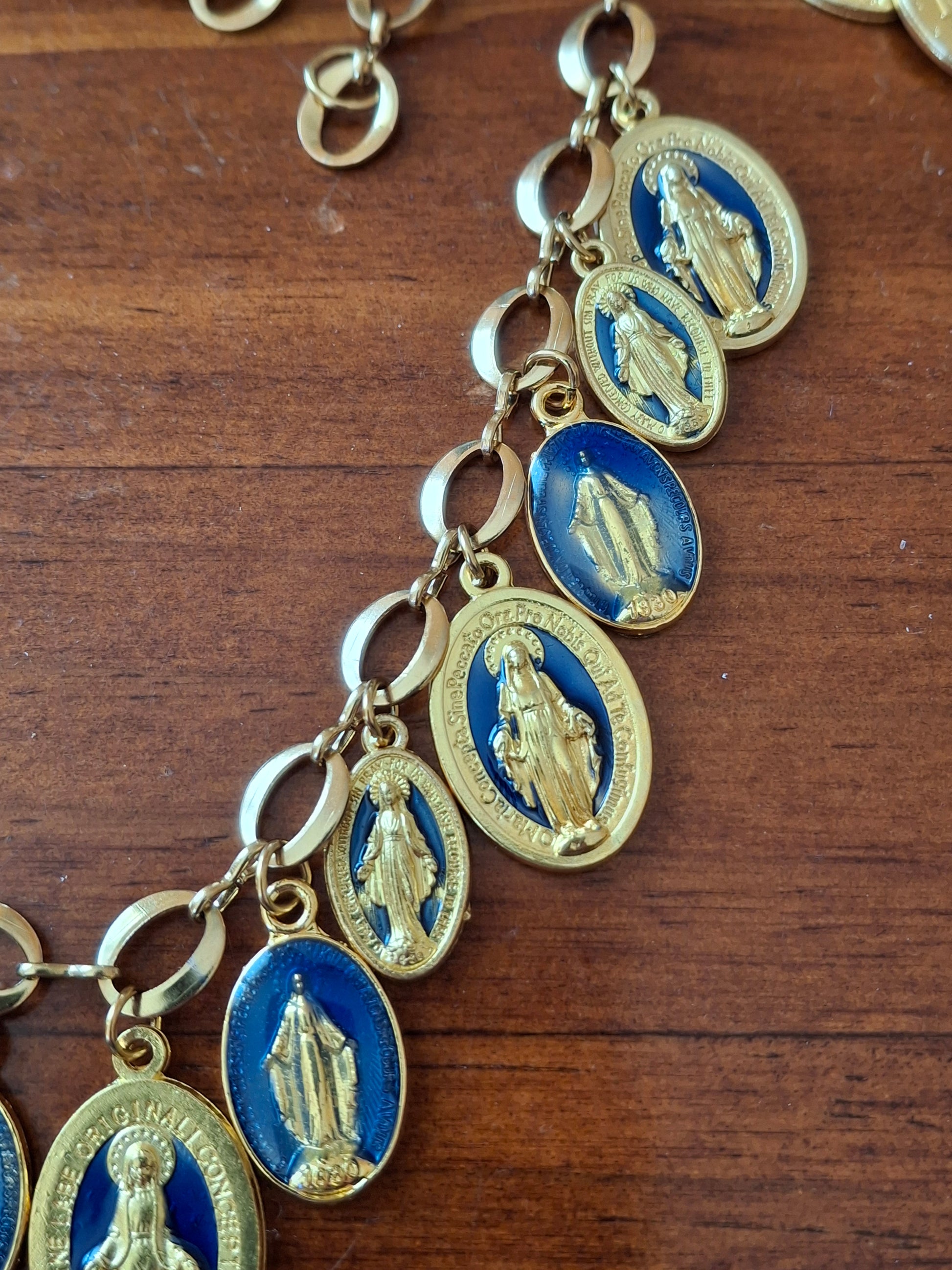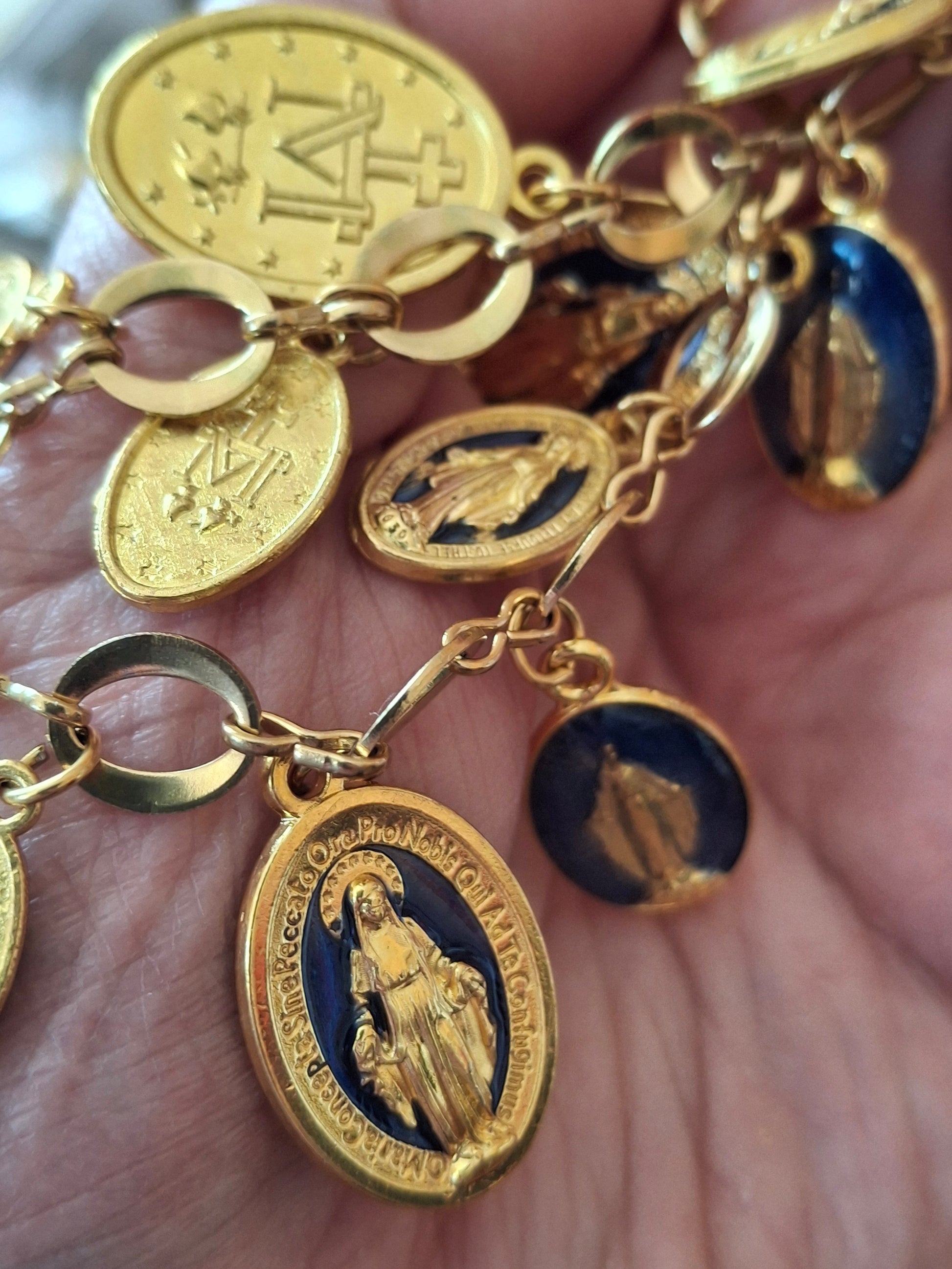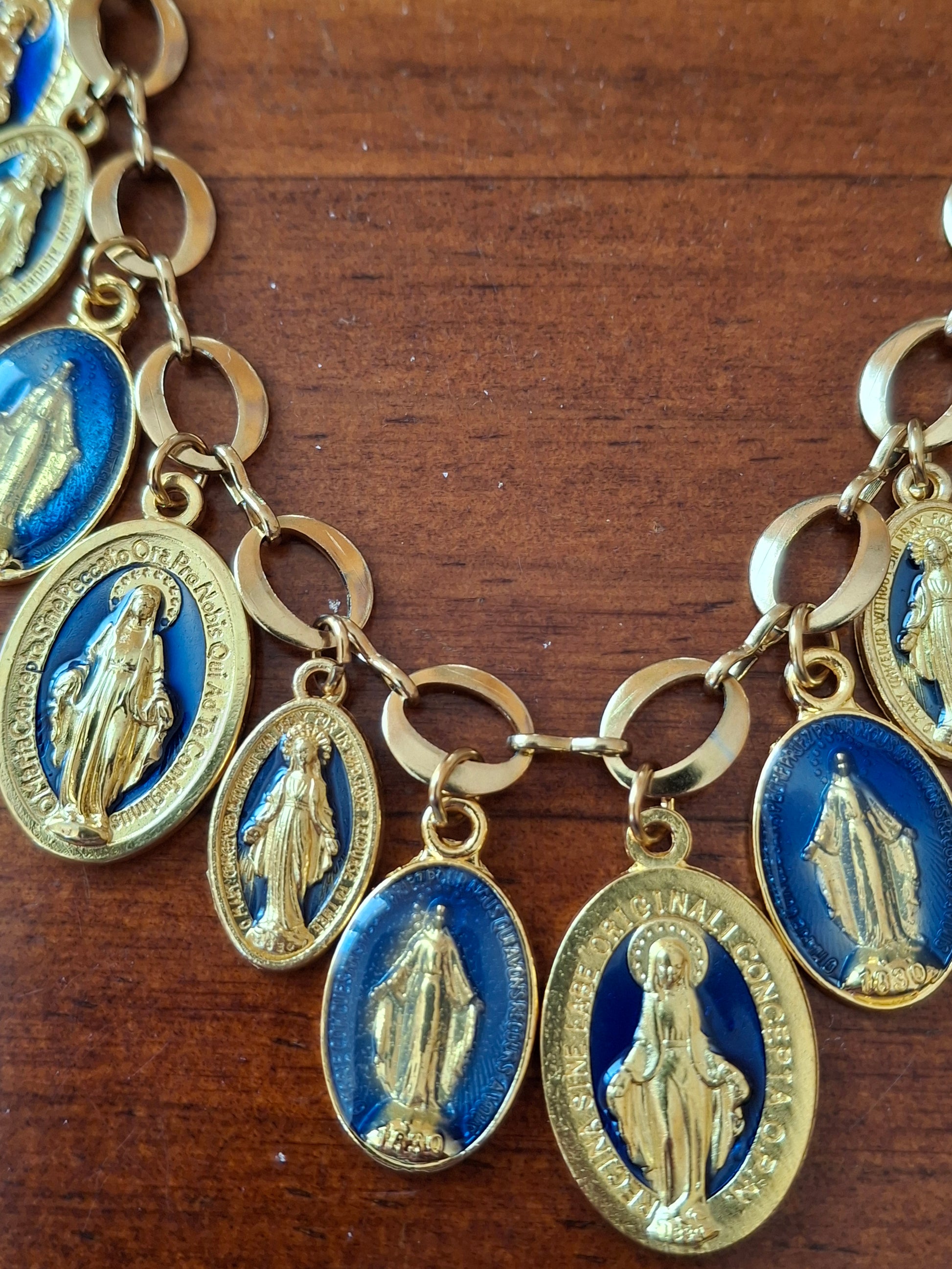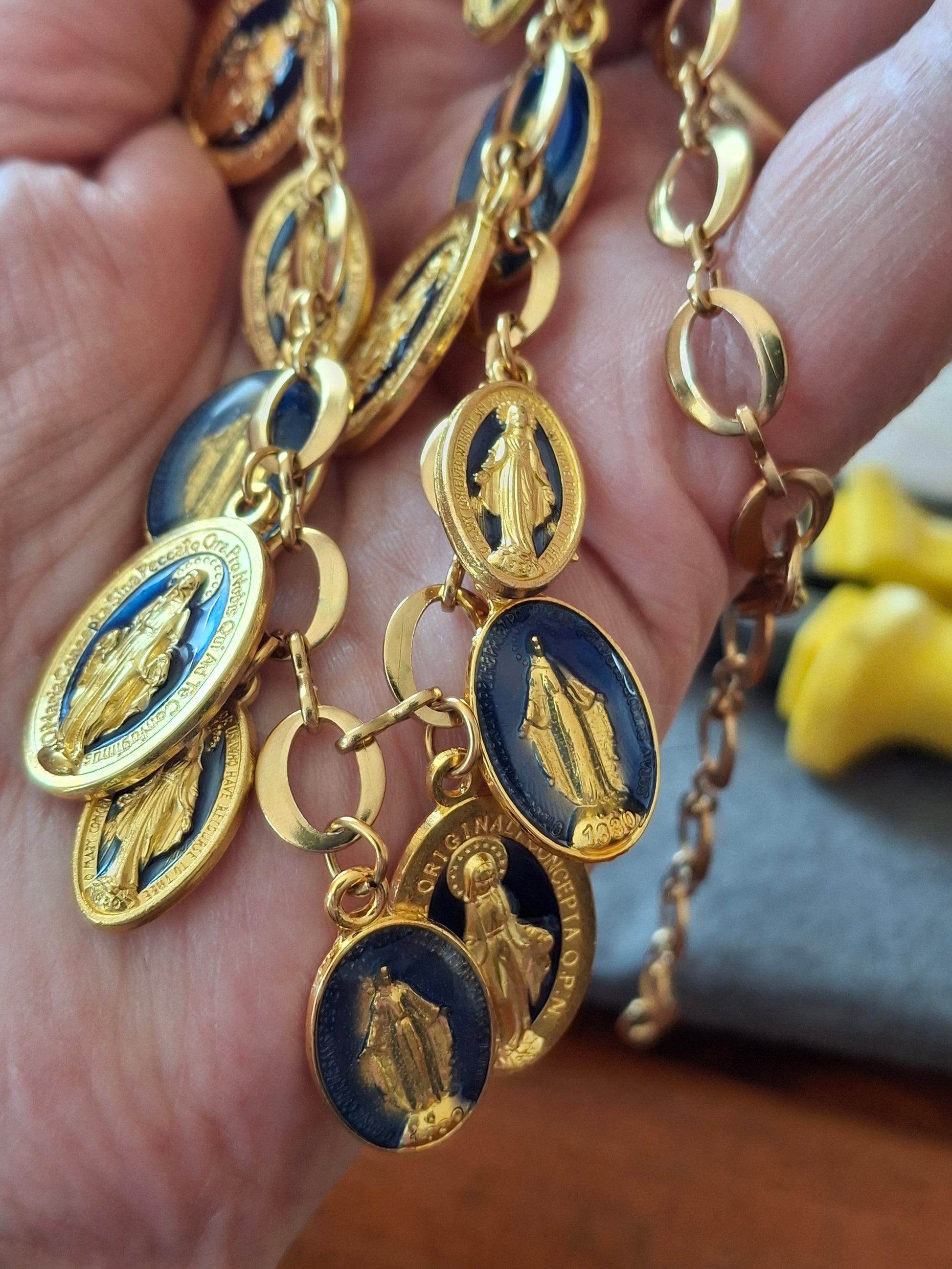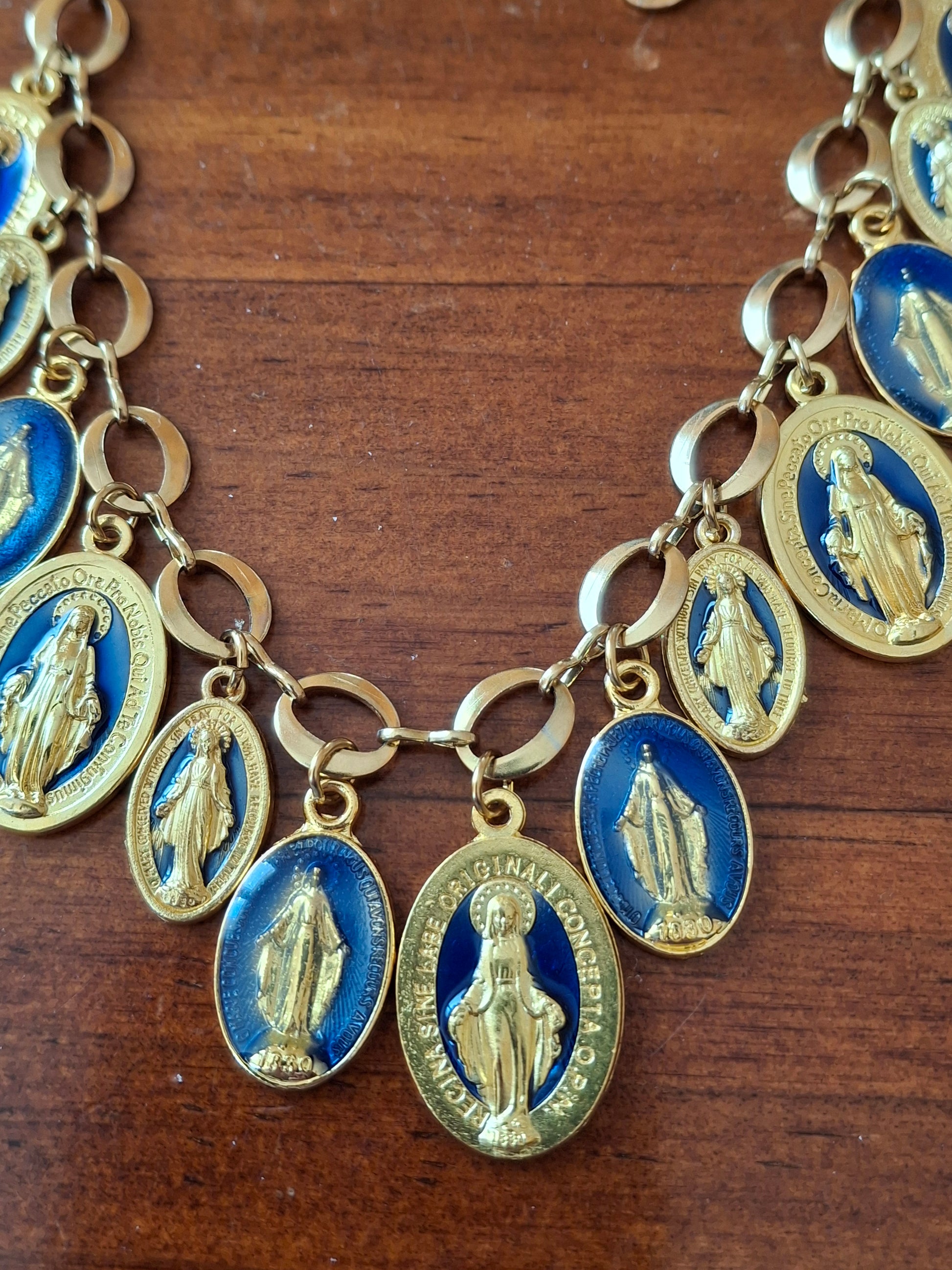 Collier chaîne dorée acier inoxydable stainless steel 316 et breloques madone handmade