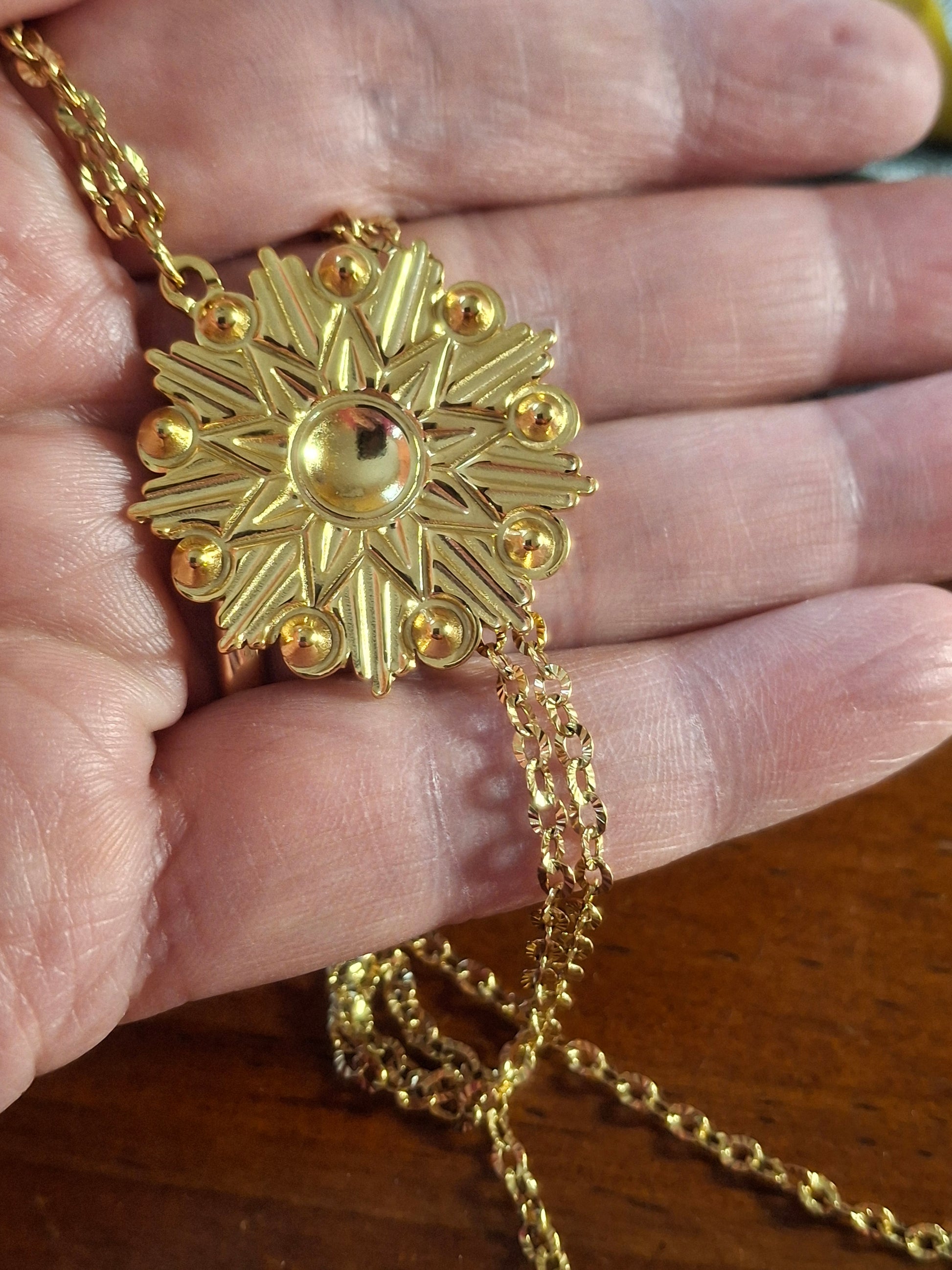 Collier très belle chaîne dorée acier inoxydable stainless steel 316 striée de qualité supérieure galvanisation résistante longue durée sans nickel cadmium et plomb longueur totale proposée 50cms, peut être ajustée sur demande