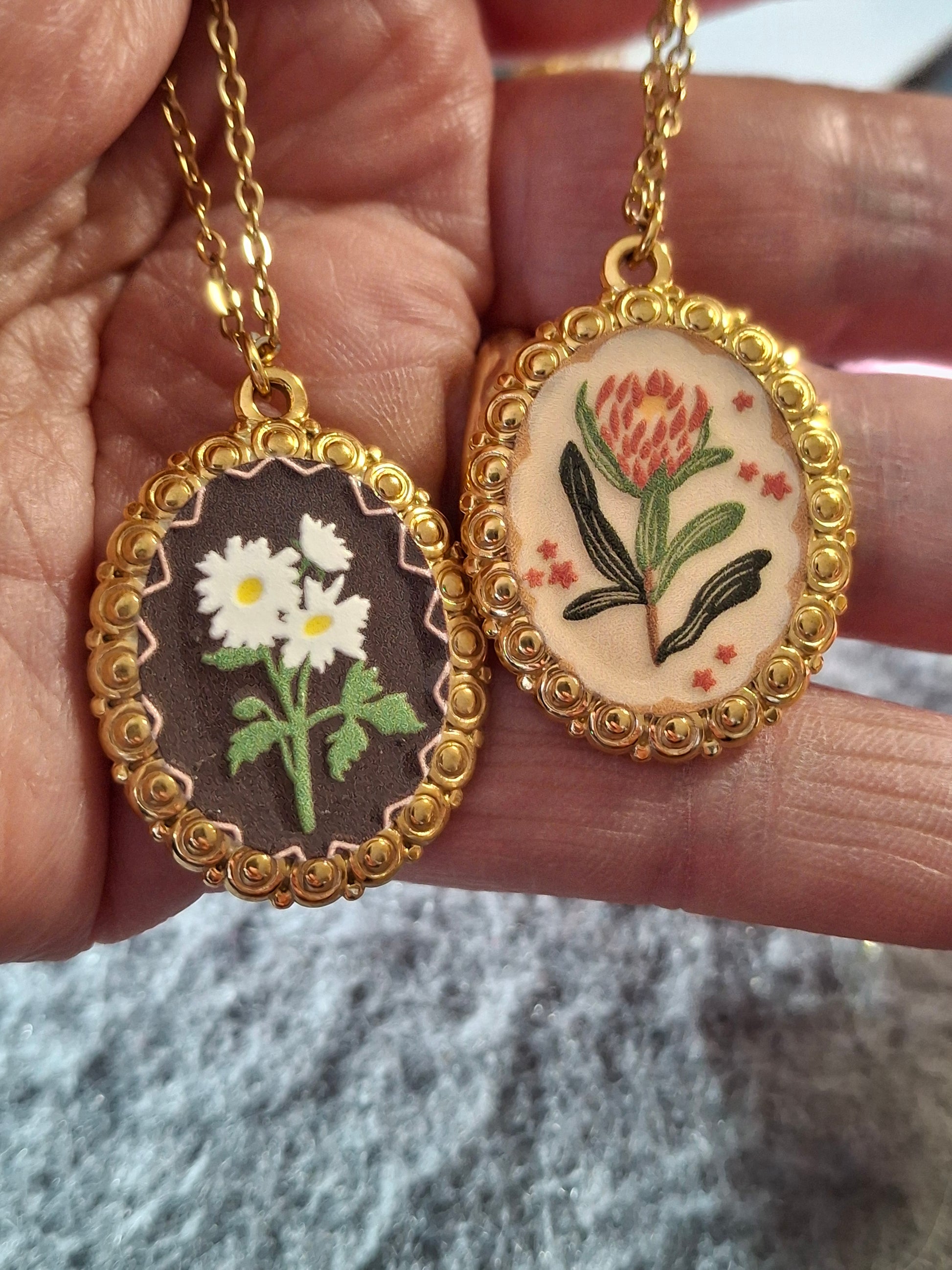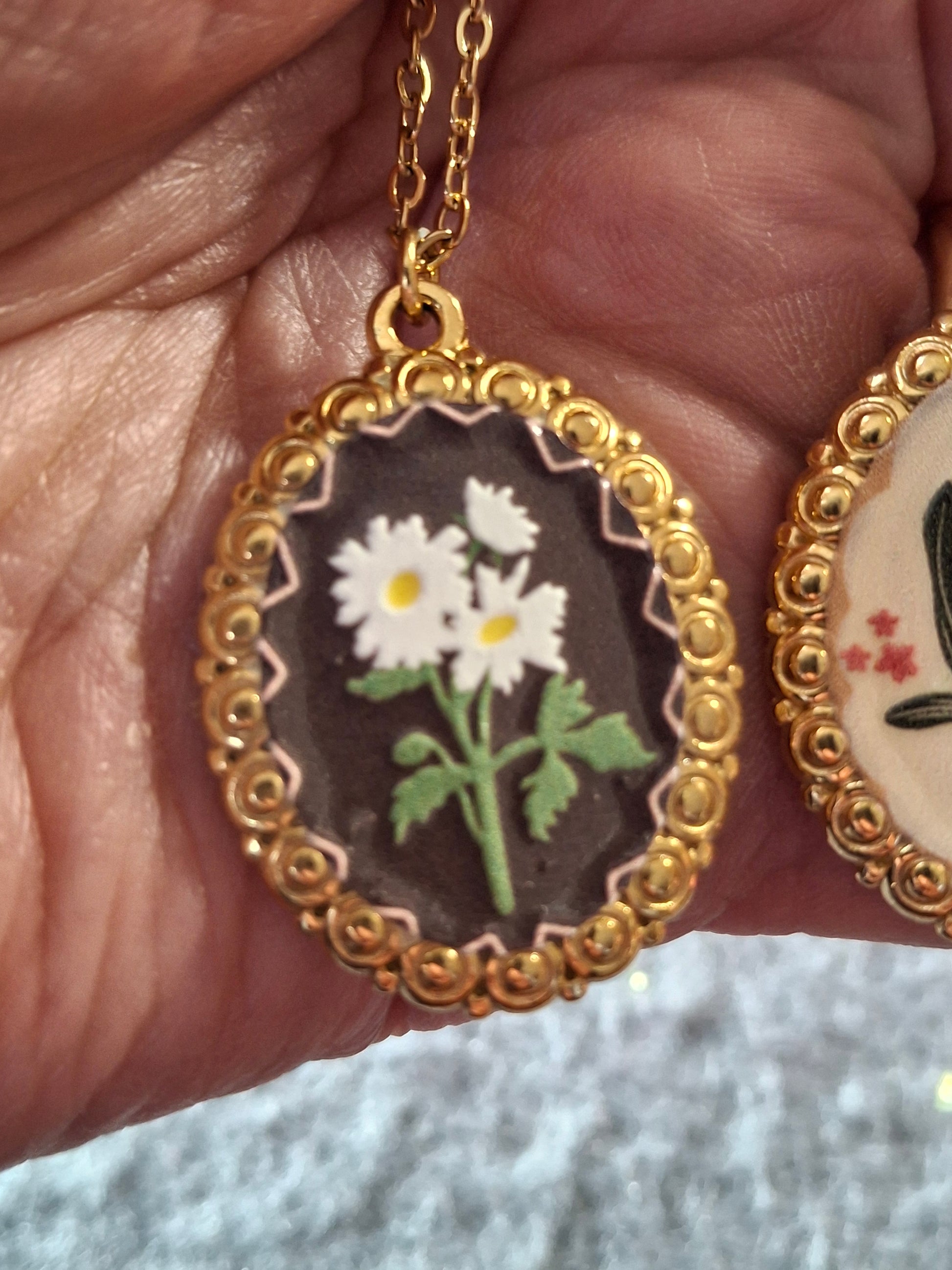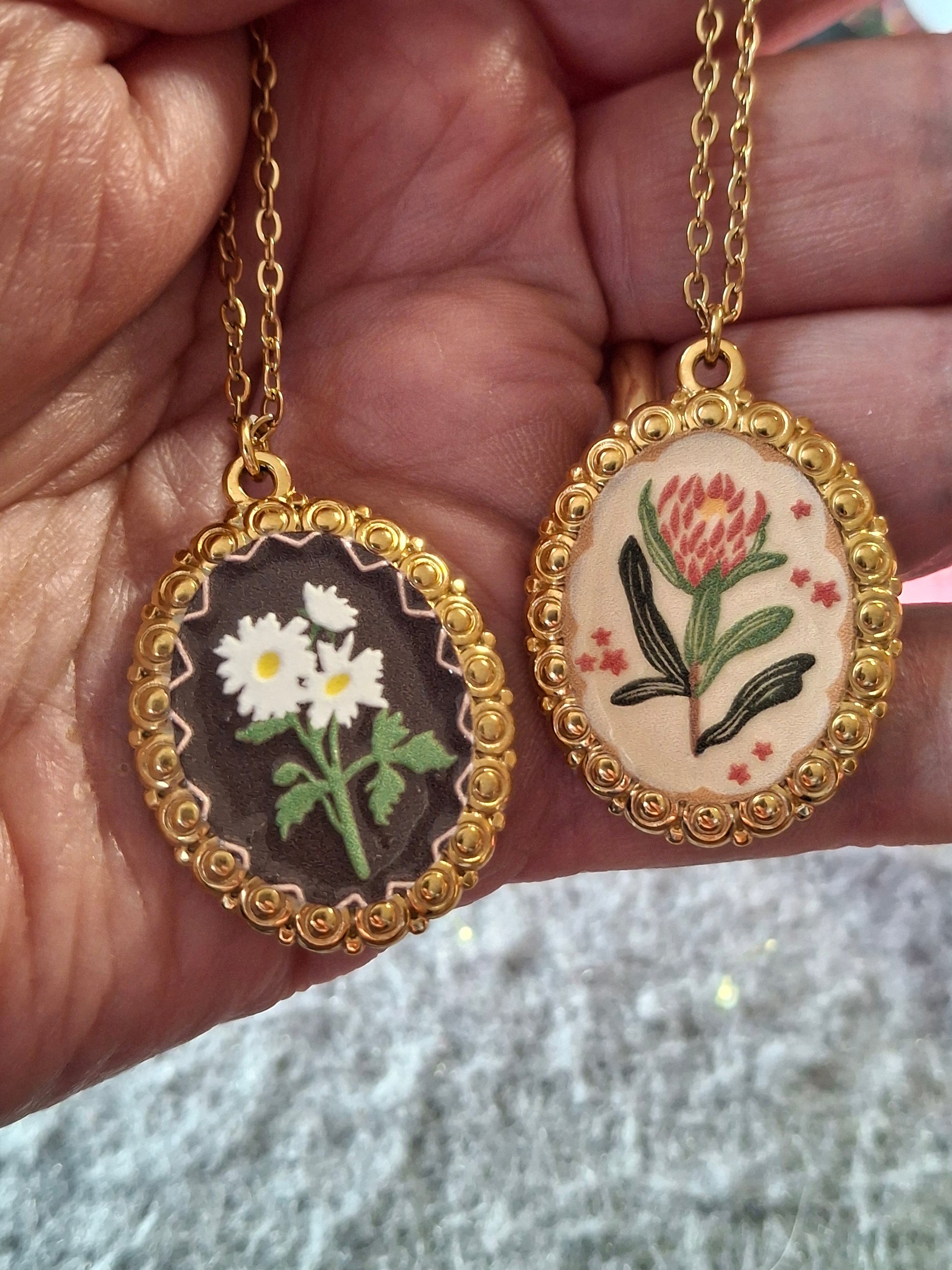Joli pendentif en acier inoxydable stainless steel 316 sans nickel cadmium et plomb style rétro motif fleurs et email coloré ,dimensions médaille hauteur 30mm largeur 23mm