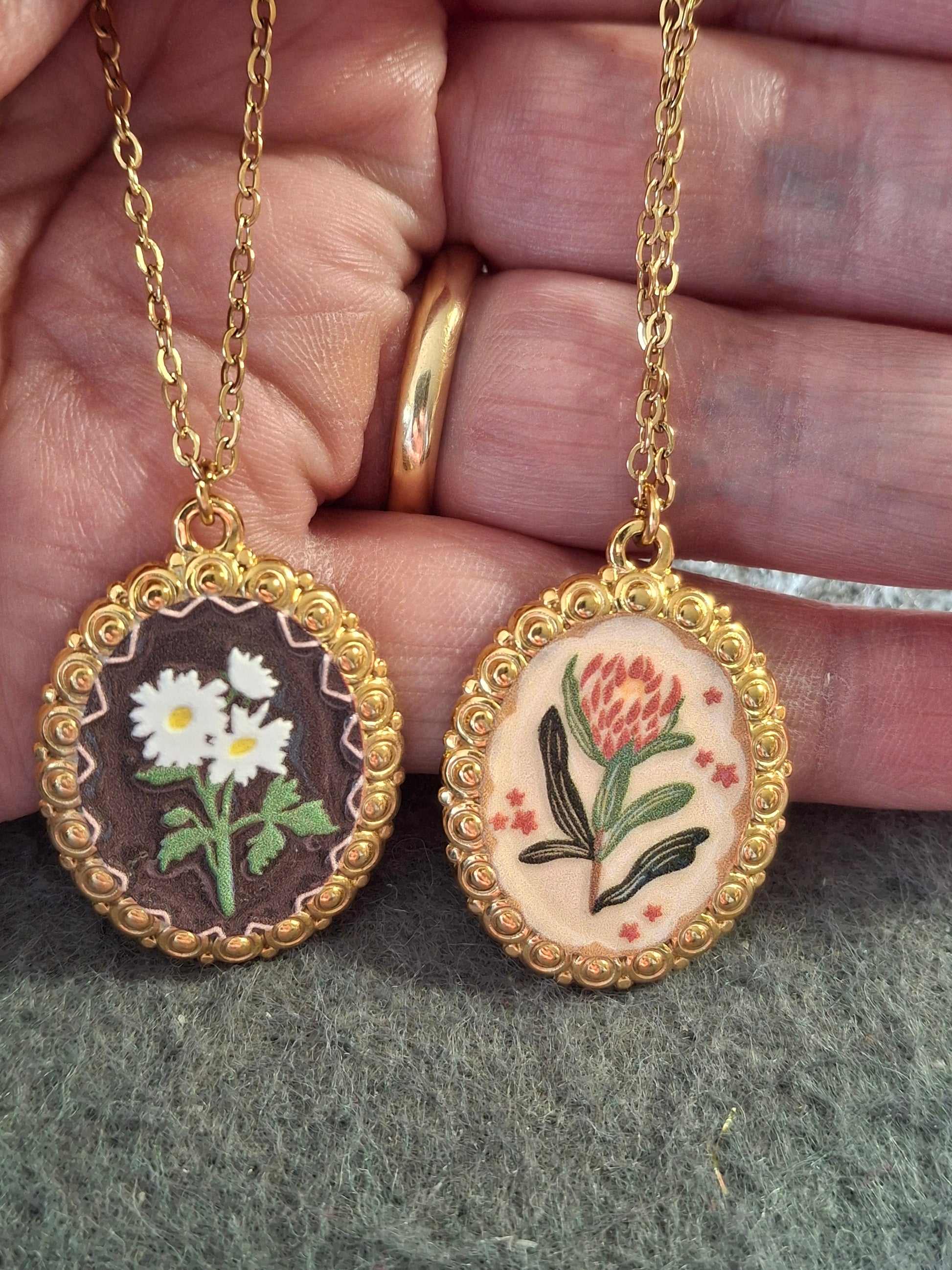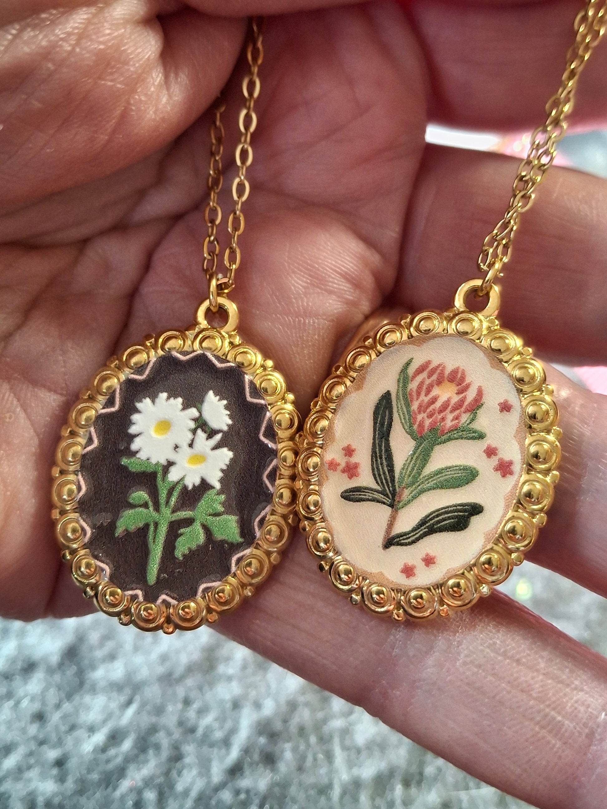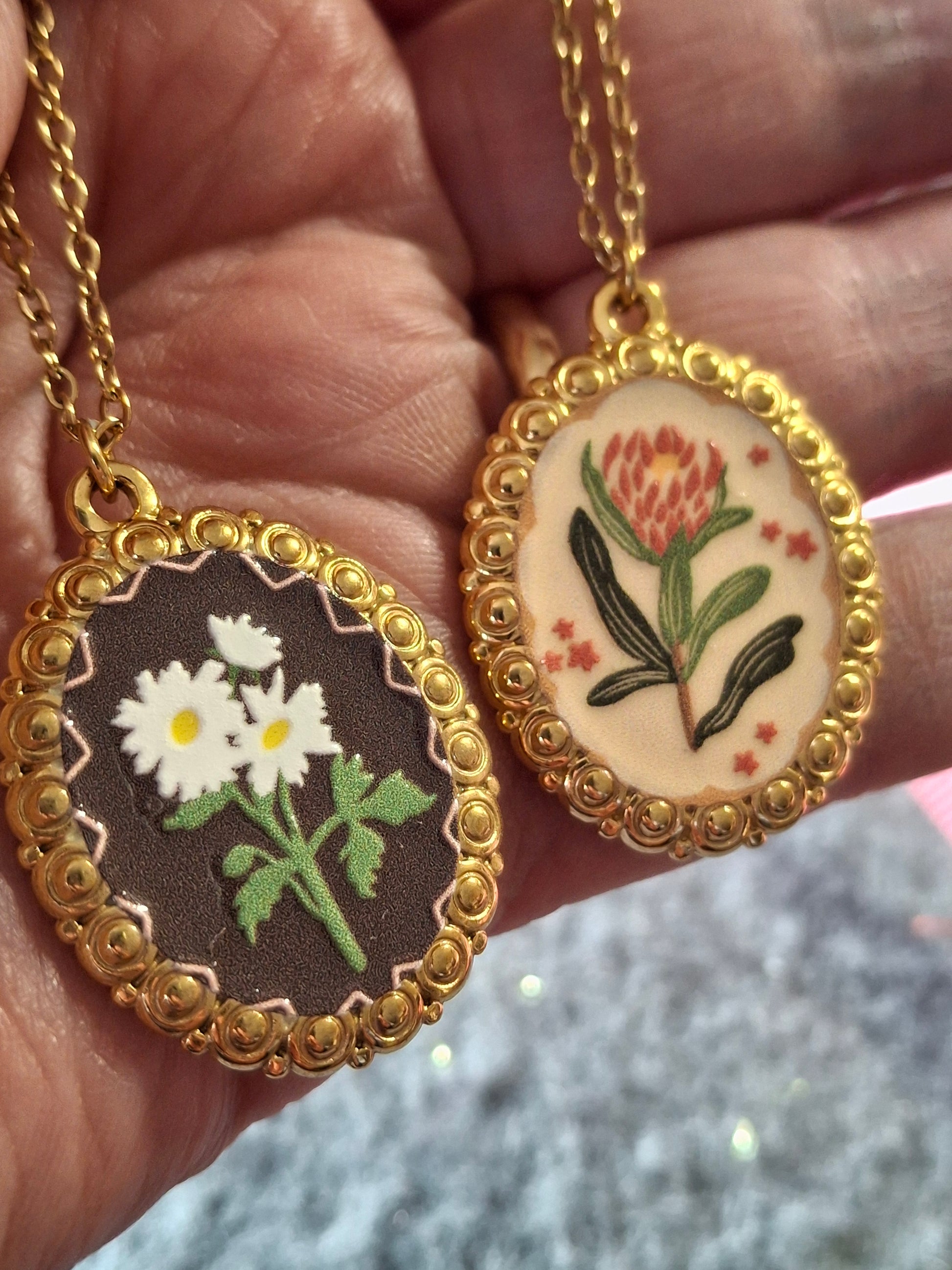Joli pendentif en acier inoxydable stainless steel 316 sans nickel cadmium et plomb style rétro motif fleurs et email coloré ,dimensions médaille hauteur 30mm largeur 23mm