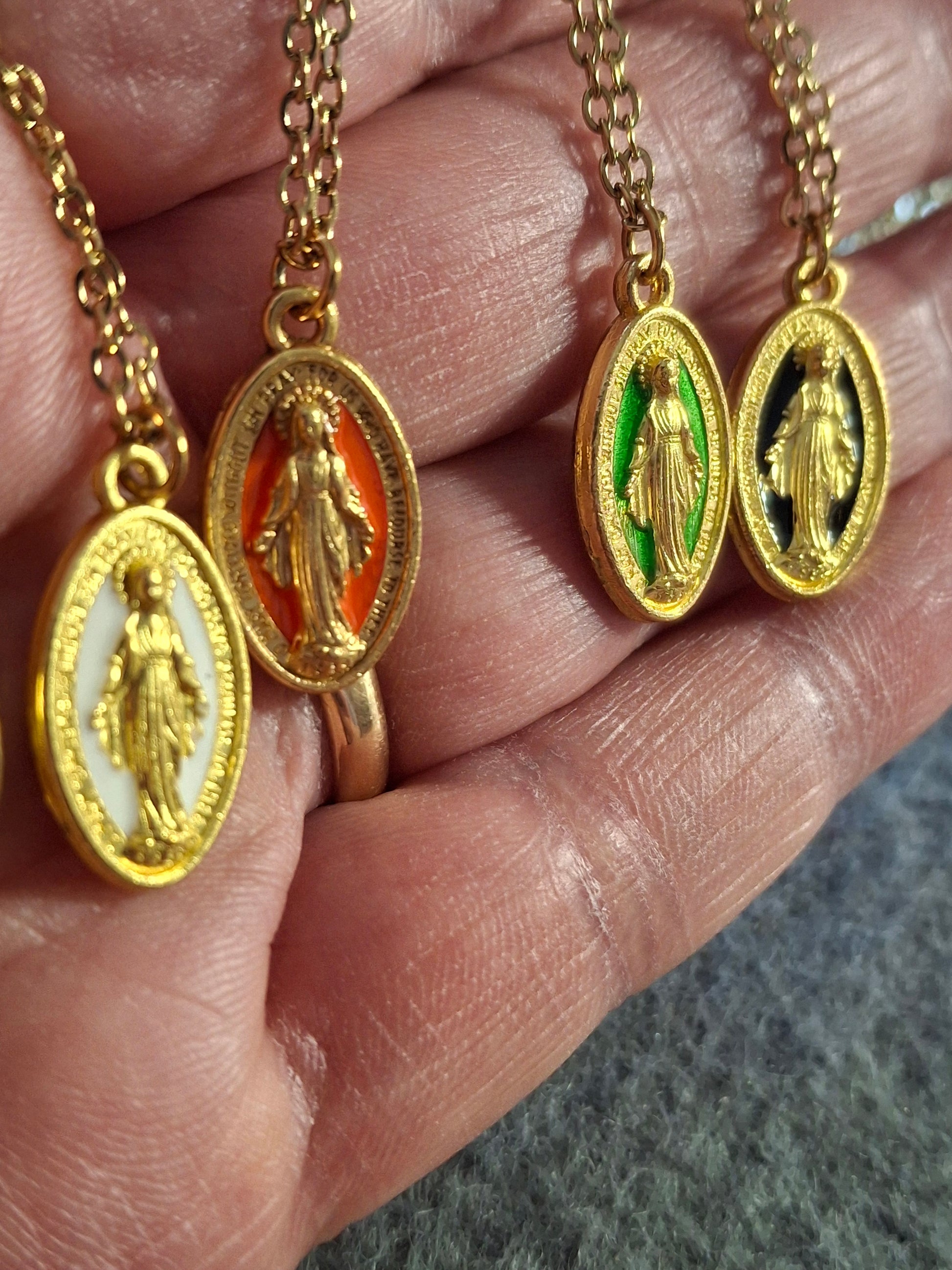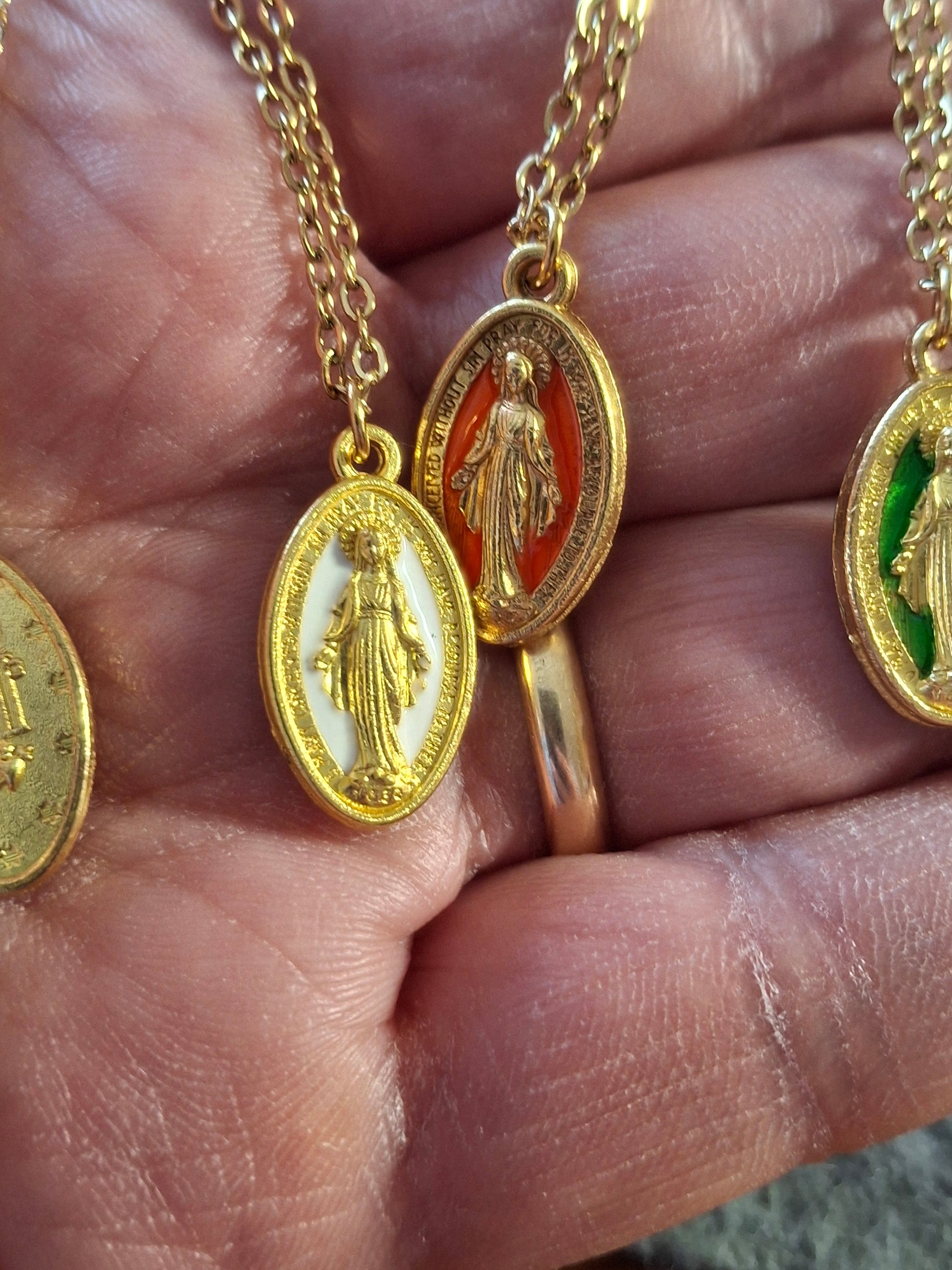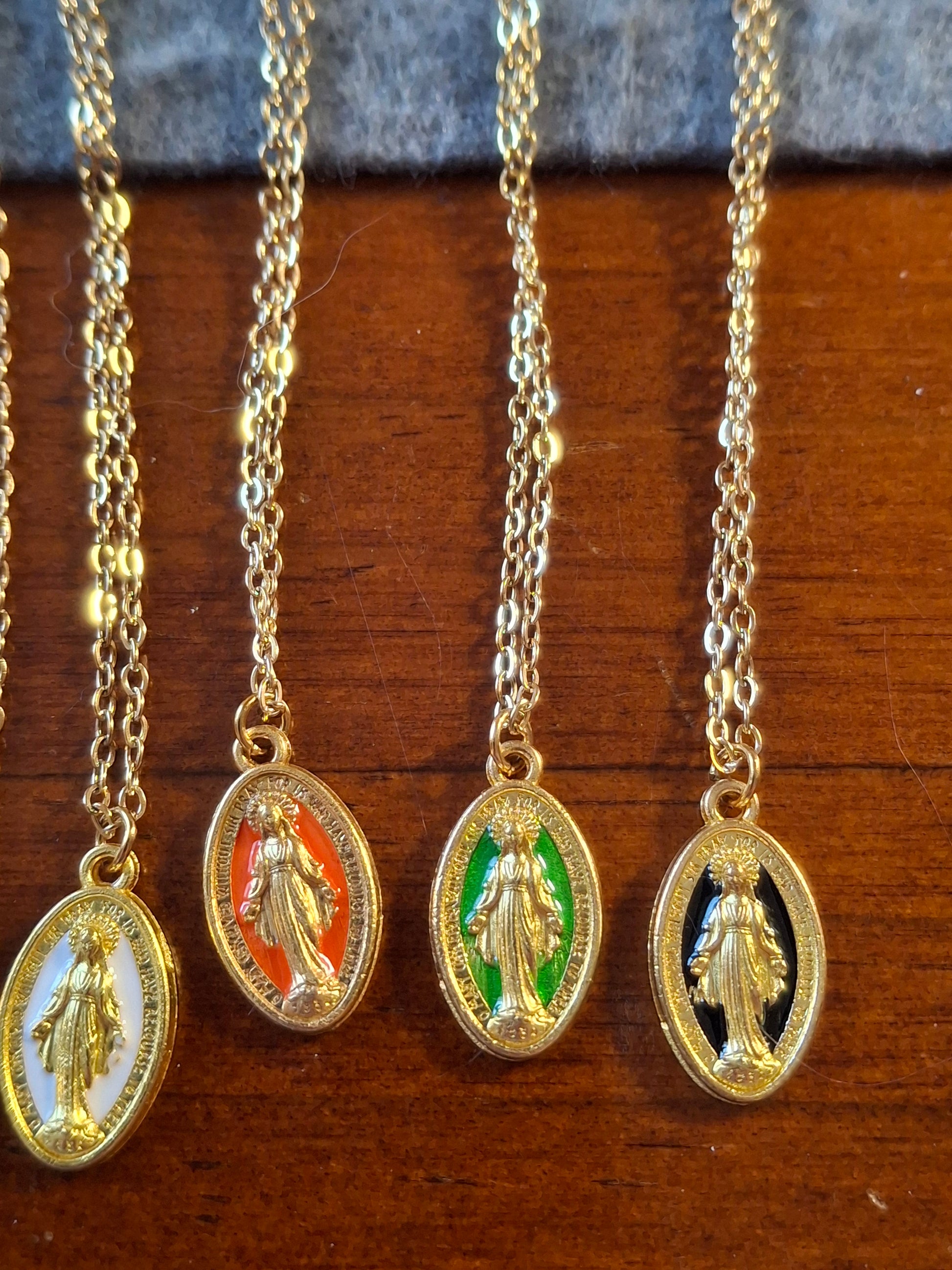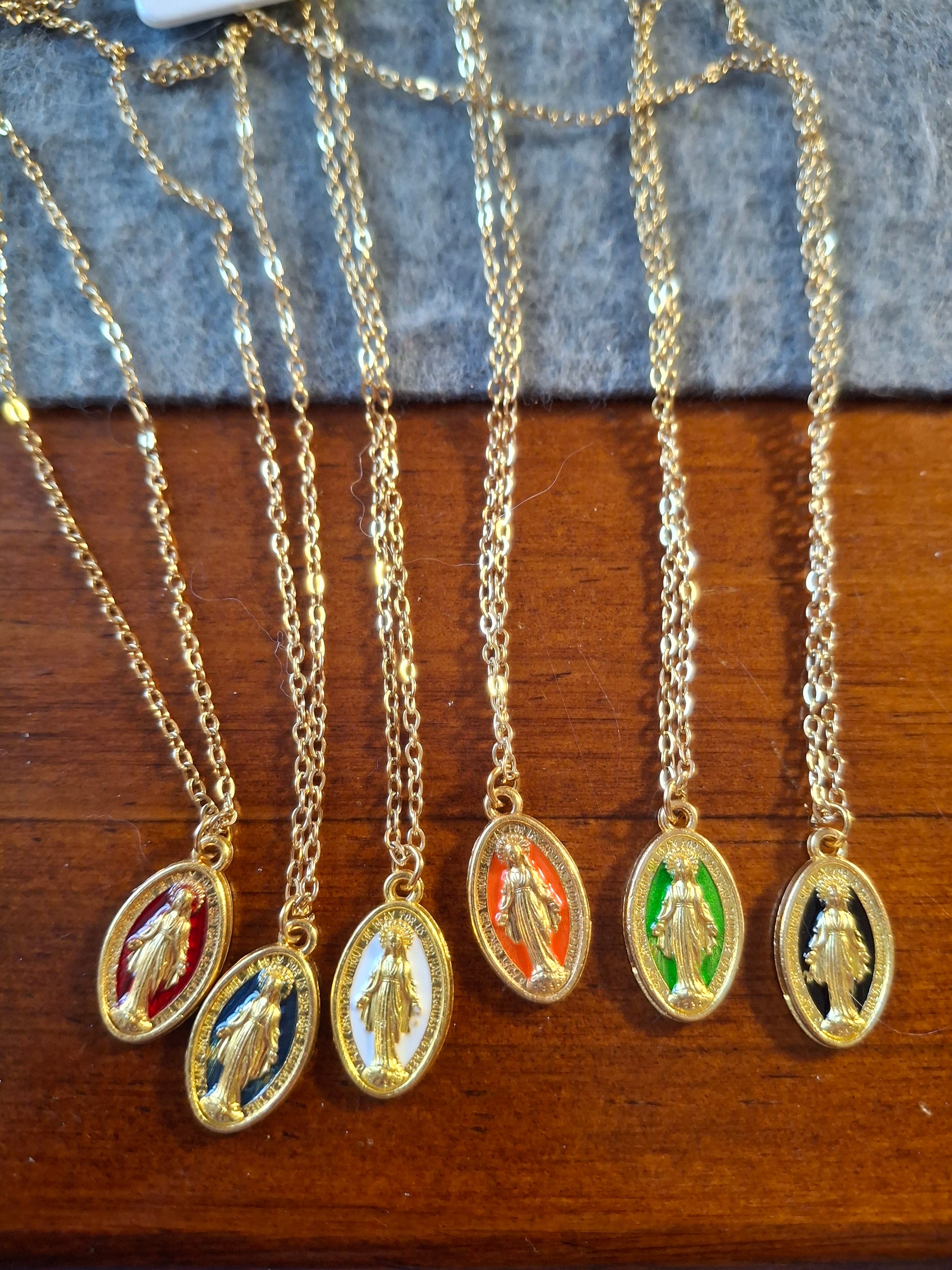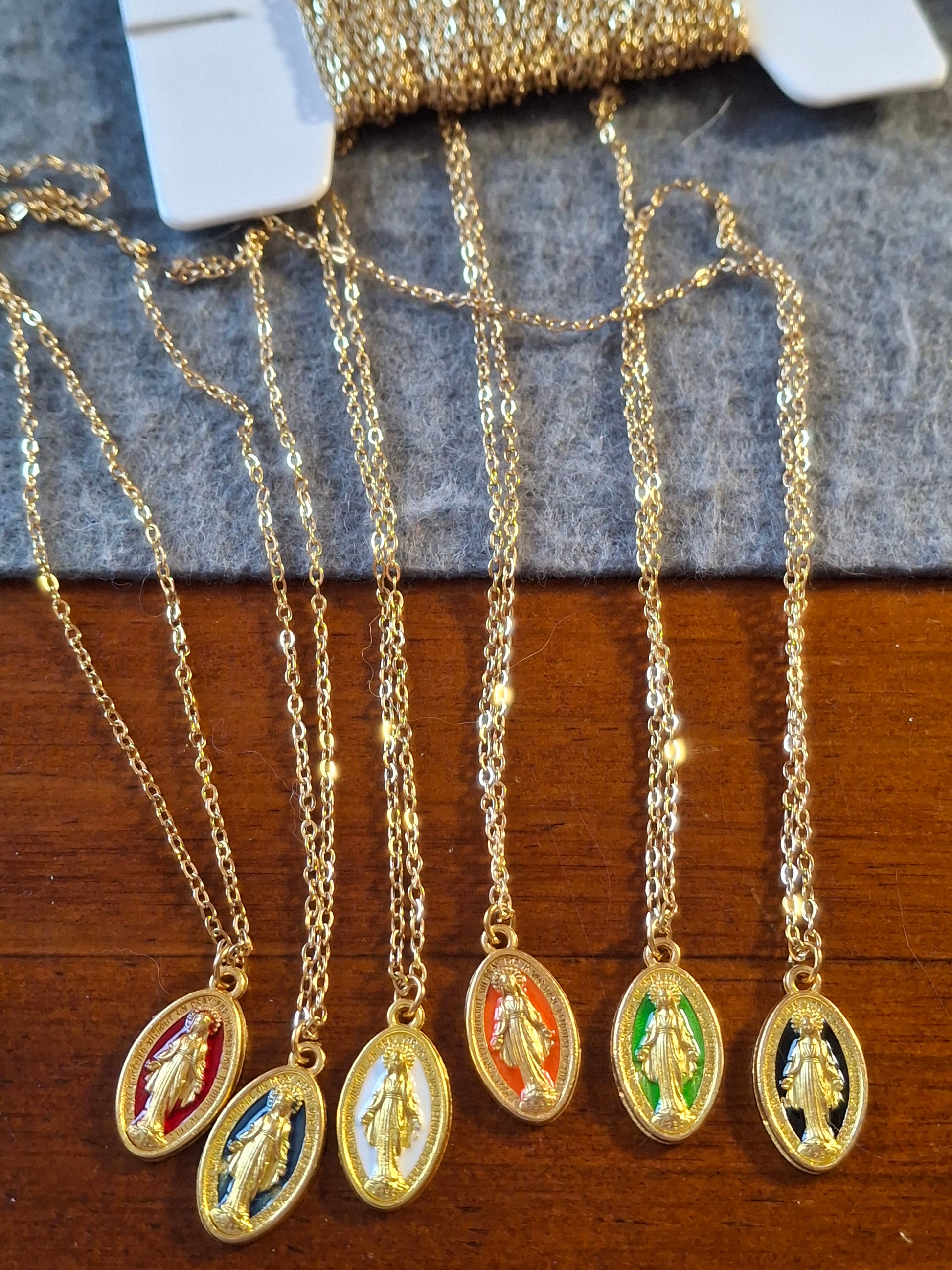 Collier chaîne dorée acier inoxydable stainless steel 316 madone cuivre plaqué or et email