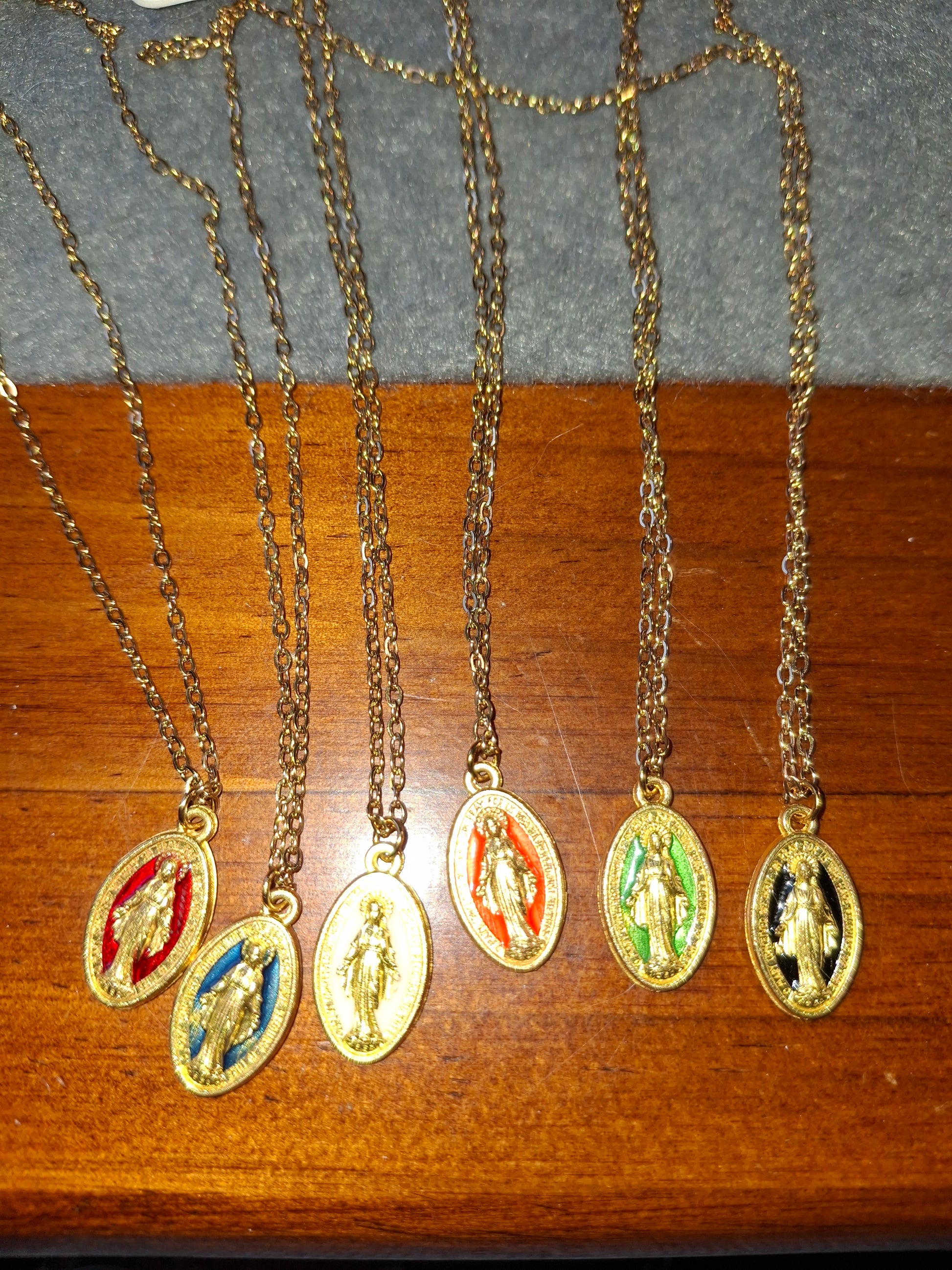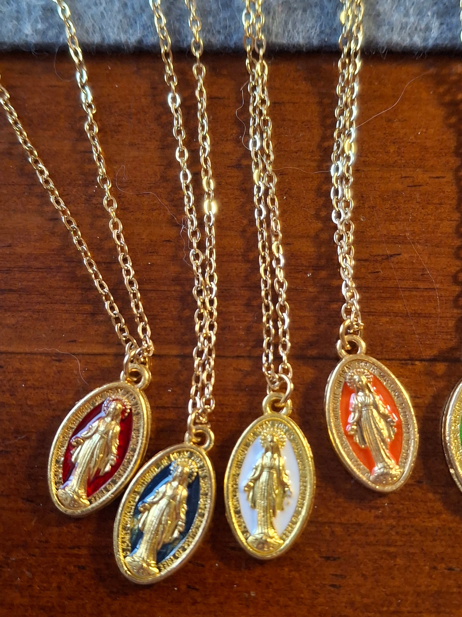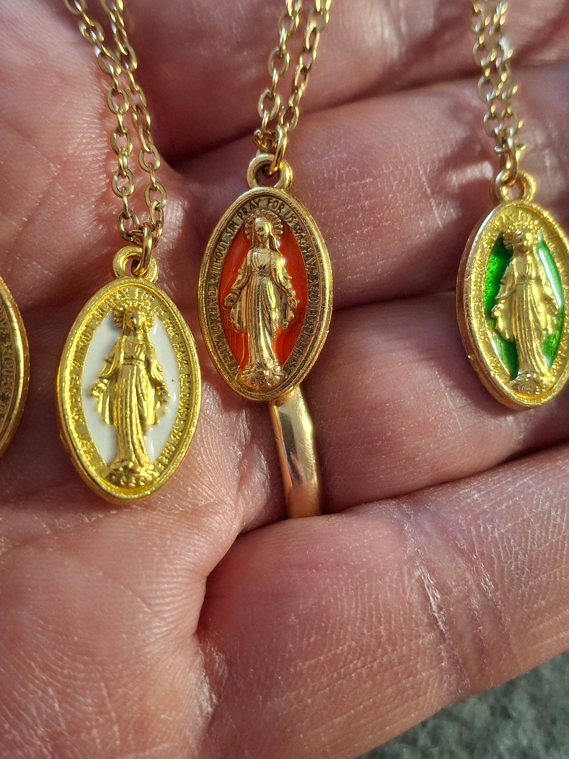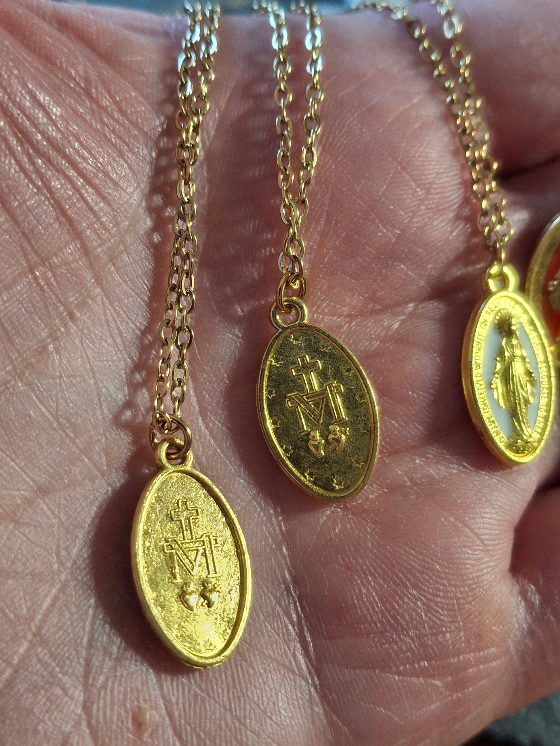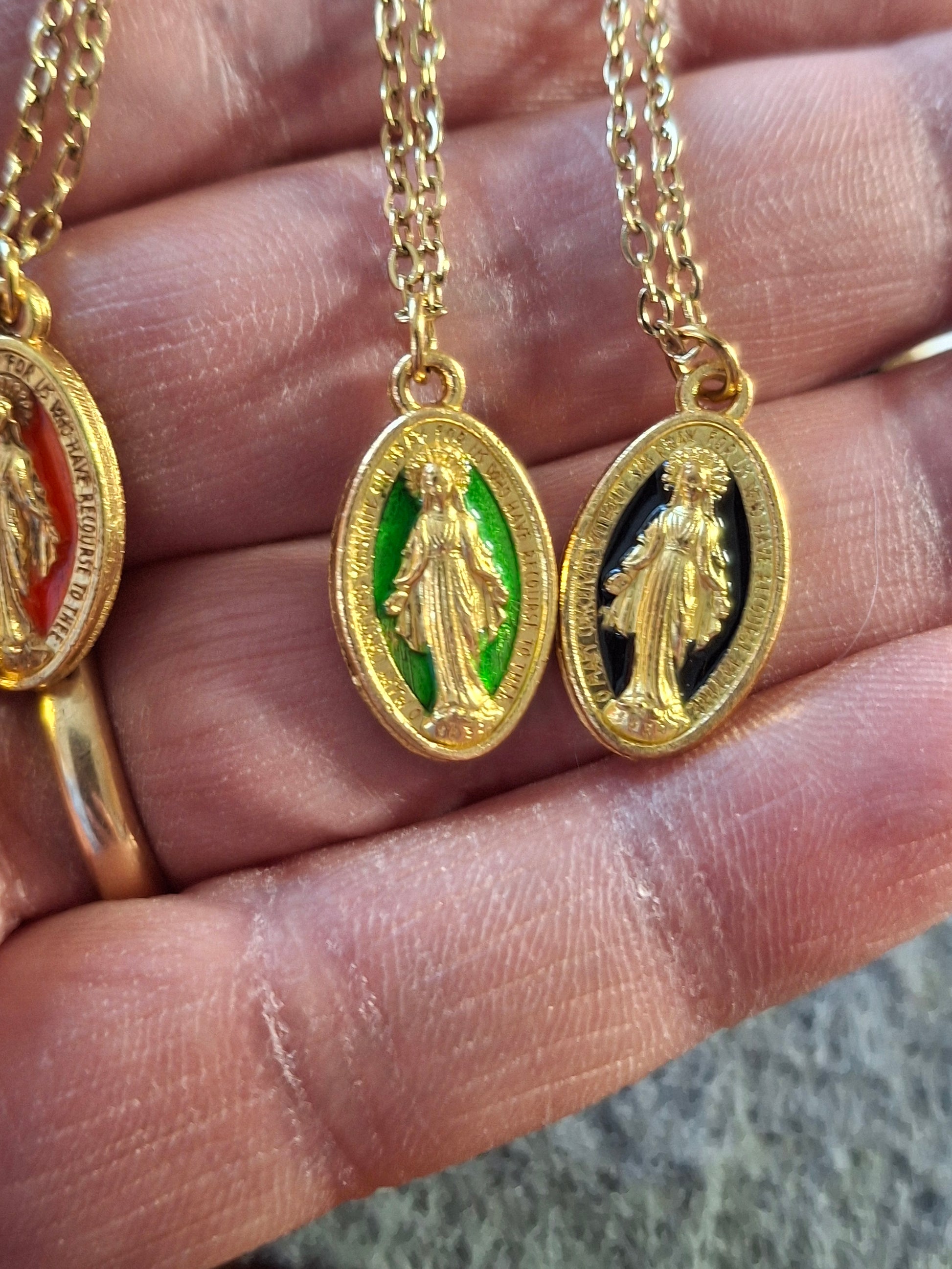 Collier chaîne dorée acier inoxydable stainless steel 316 madone cuivre plaqué or et email