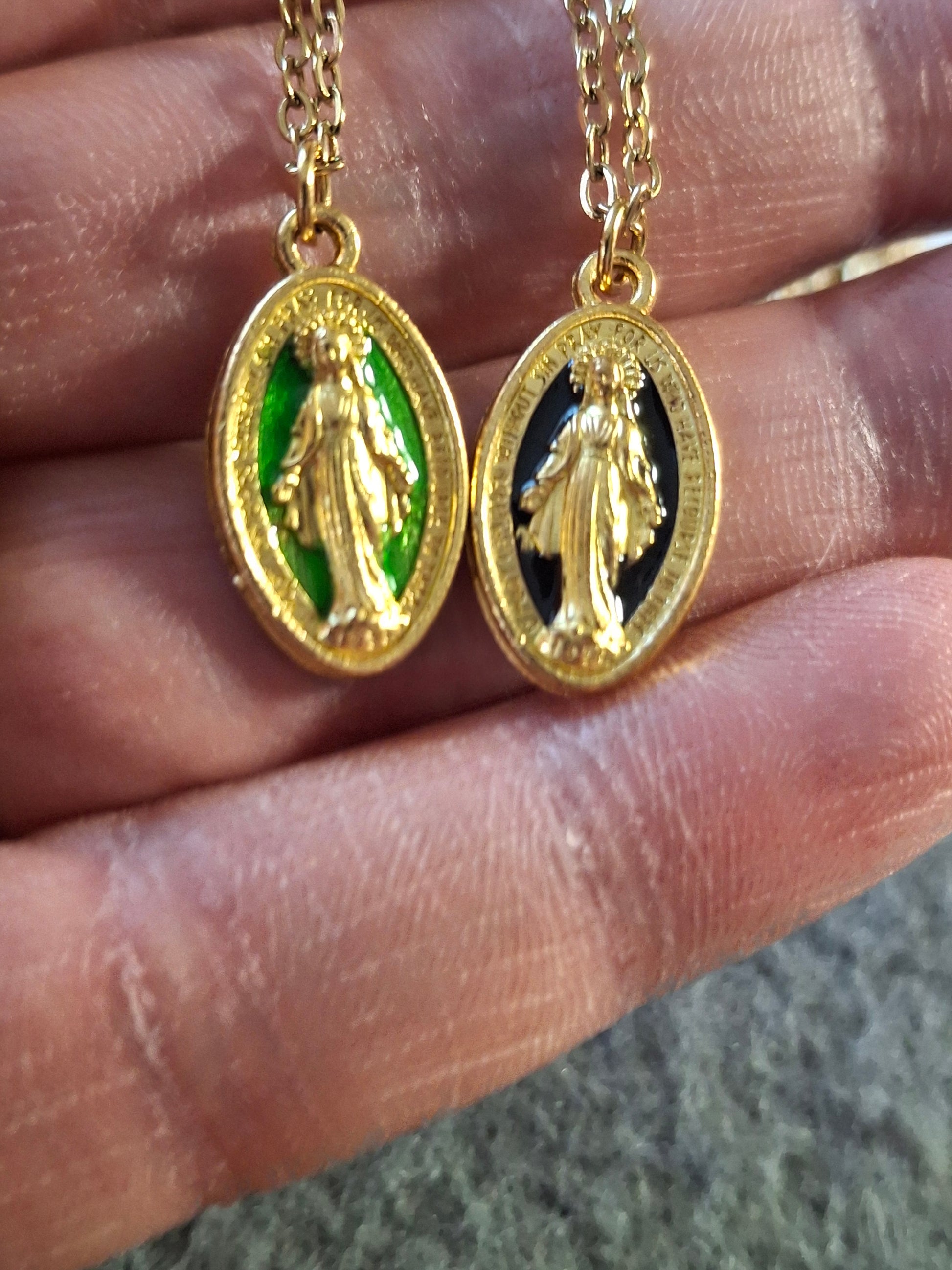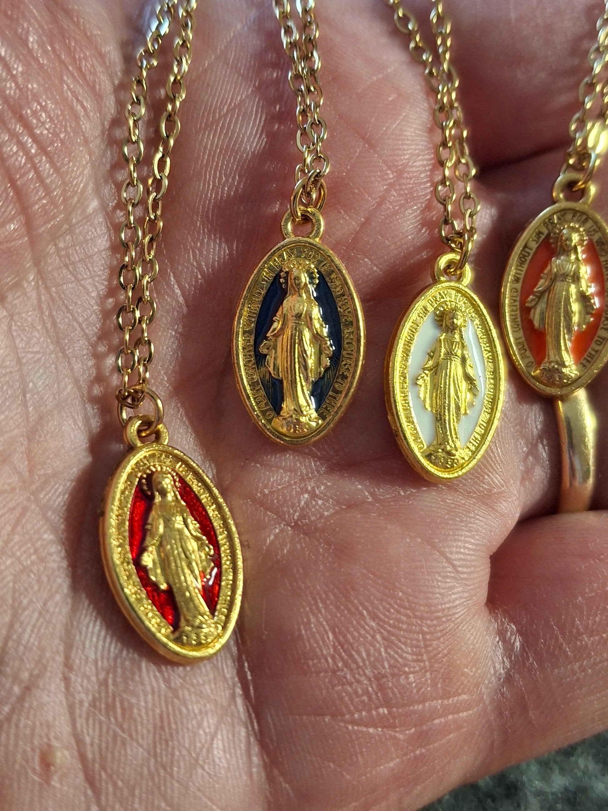 Médaille madone vierge miraculeuse émaillée en cuivre doré à l'or fin, hauteur 18mm Largeur 10mm sans nickel cadmium et plomb