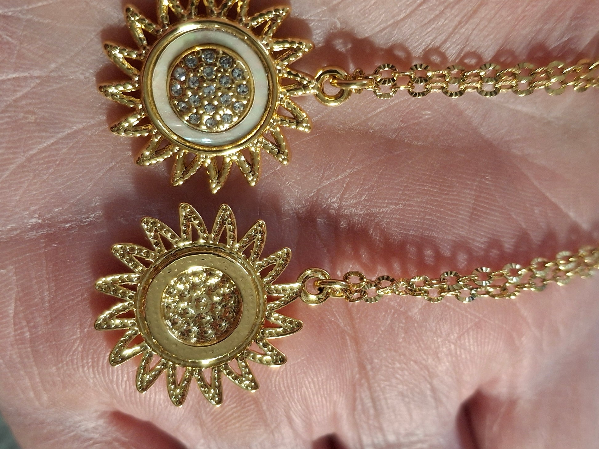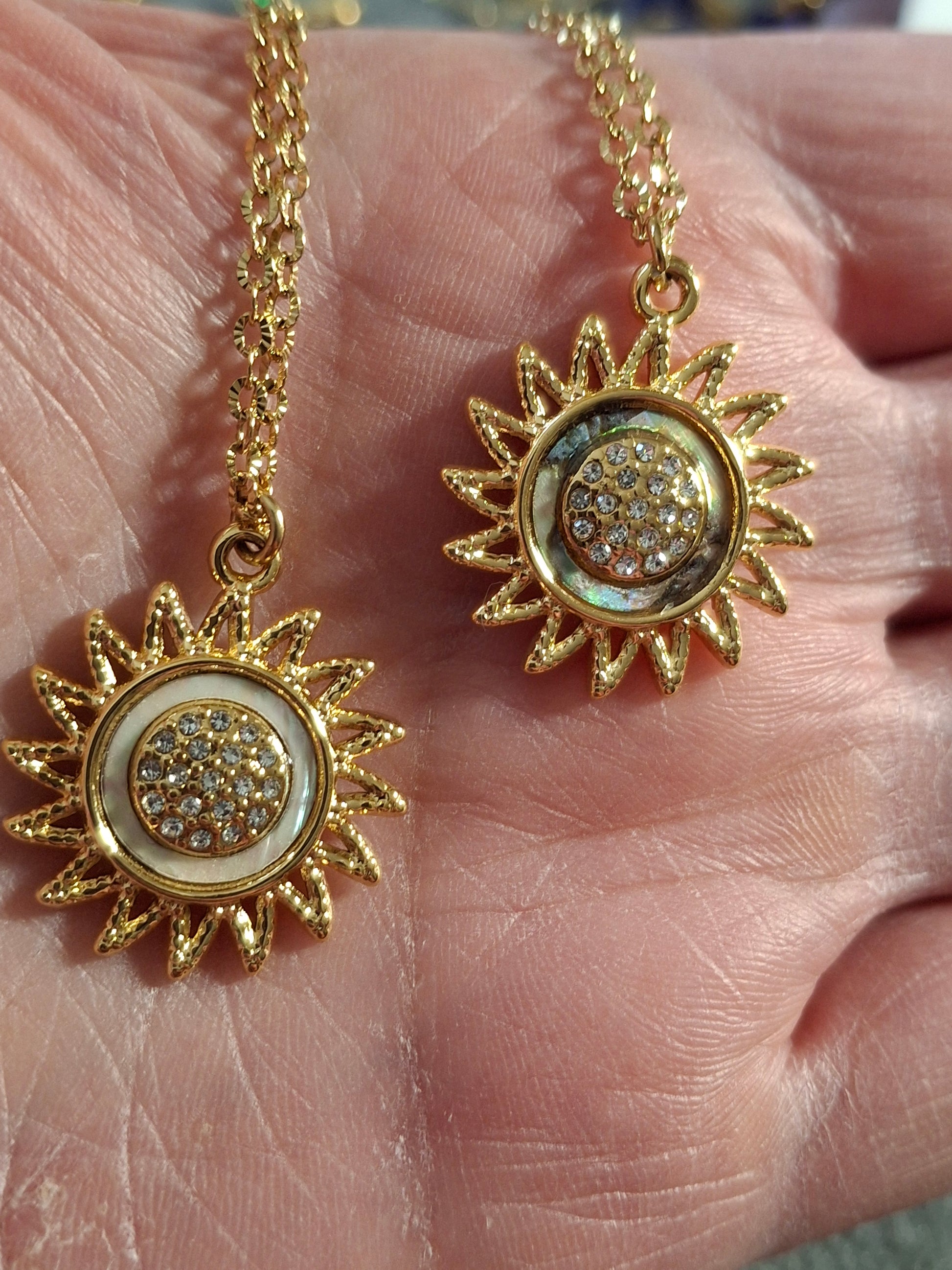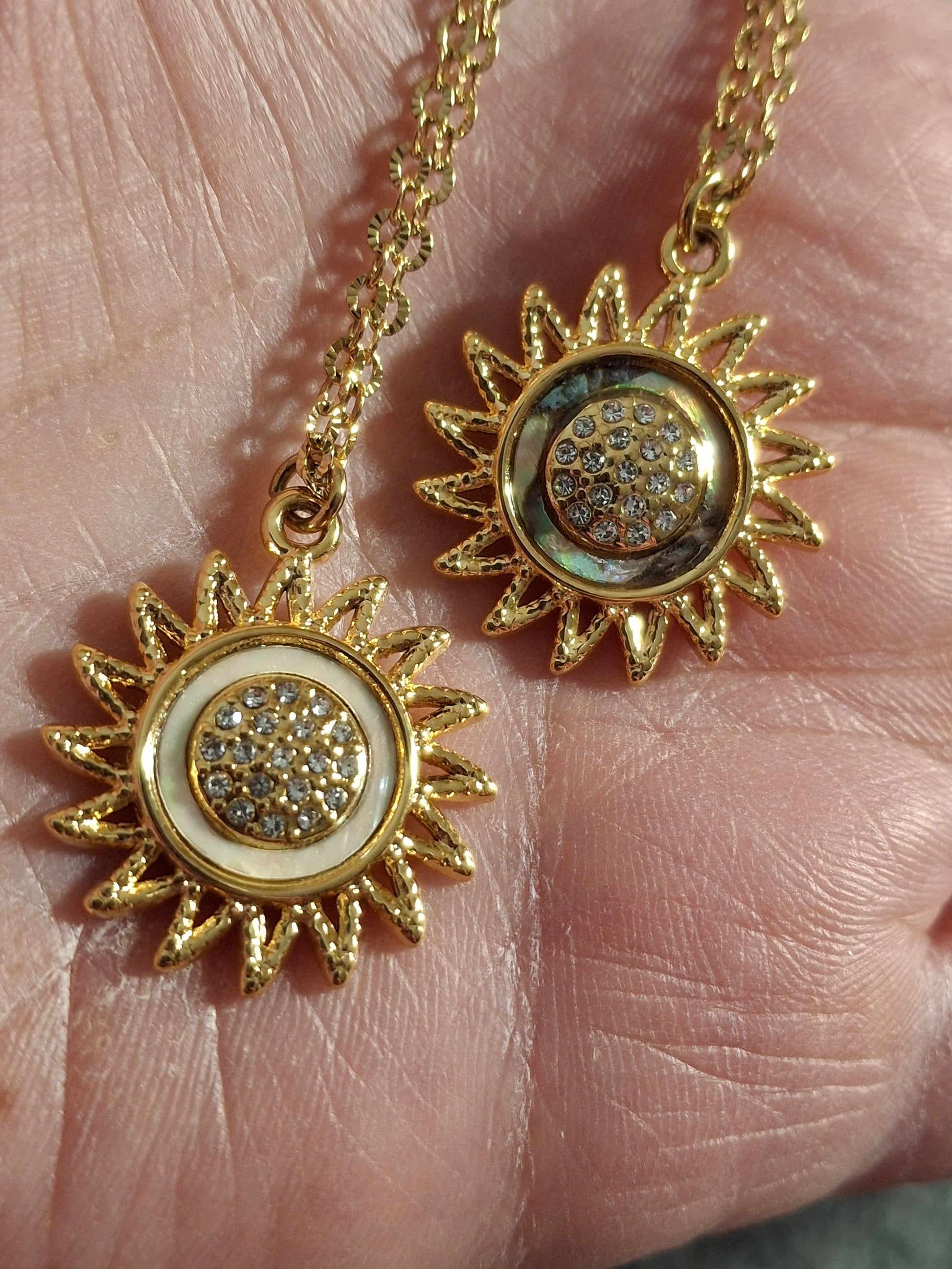 Collier chaîne dorée acier inoxydable stainless steel 316 pendentif soleil stainless steel 316 serti zirconium