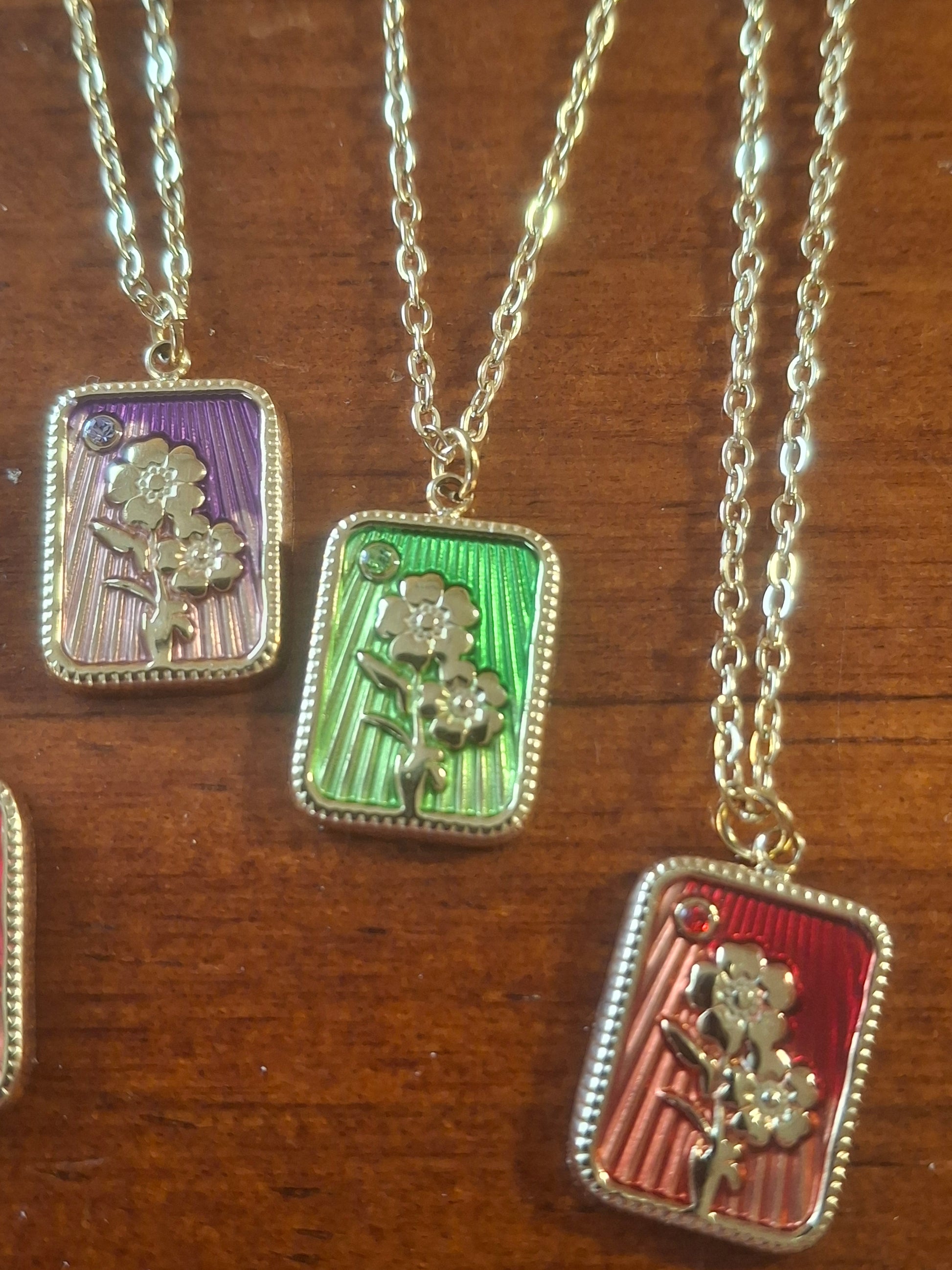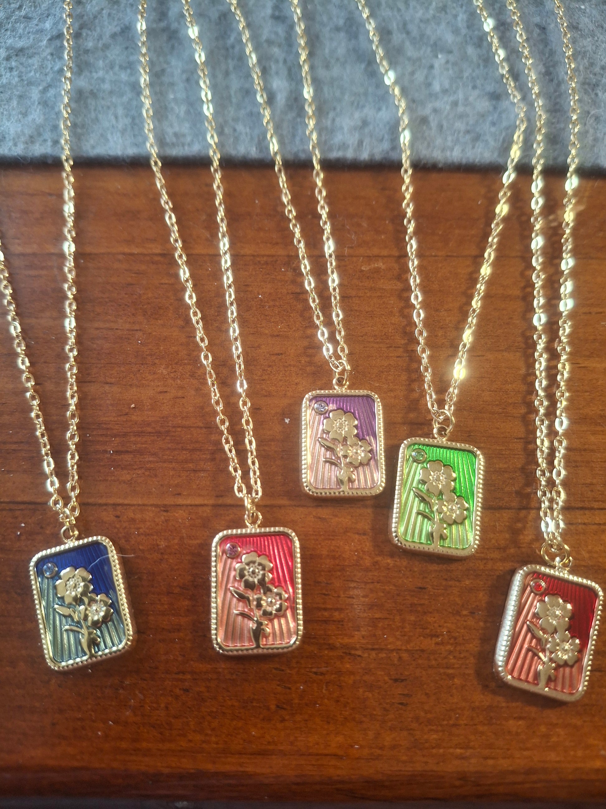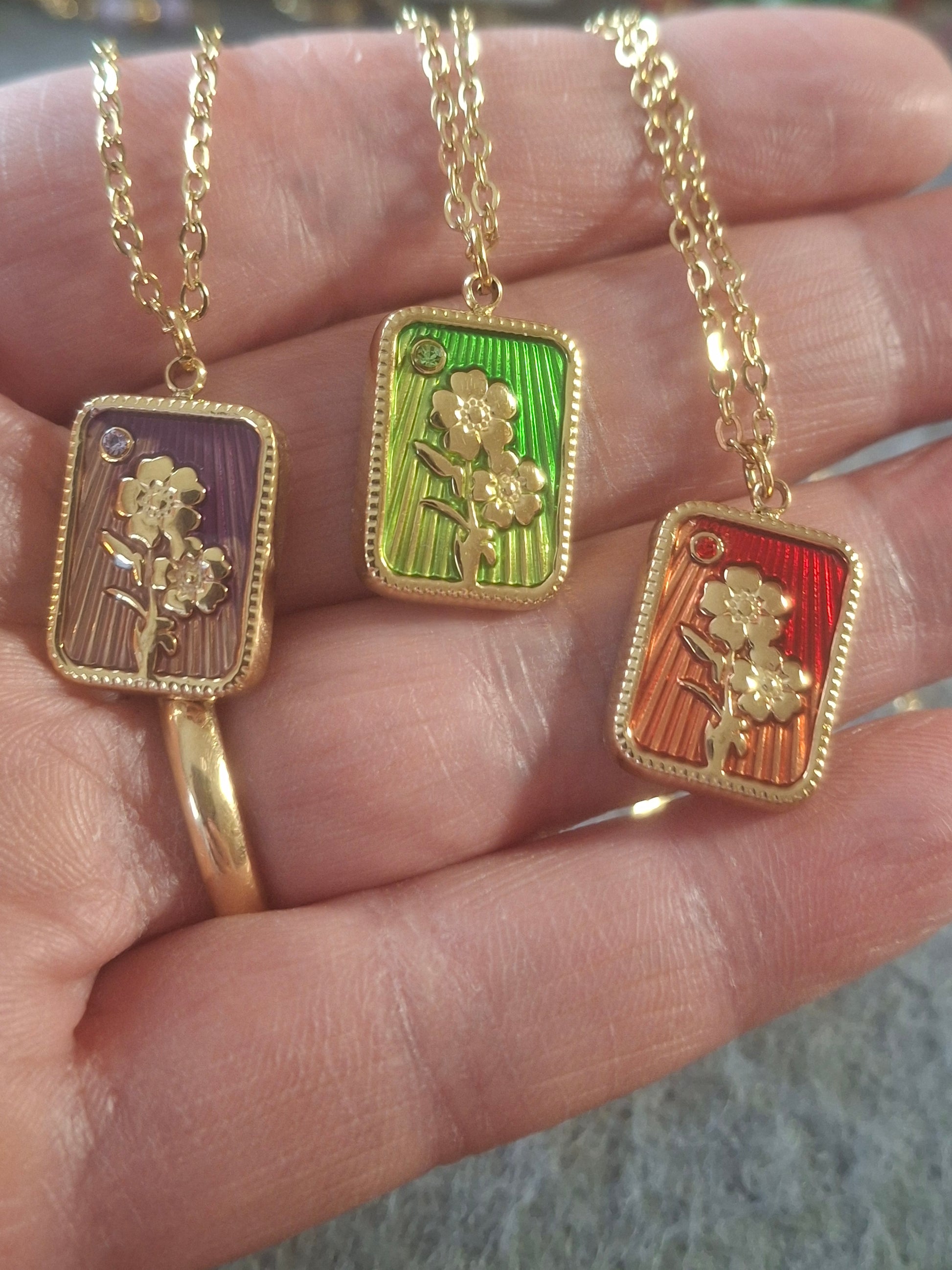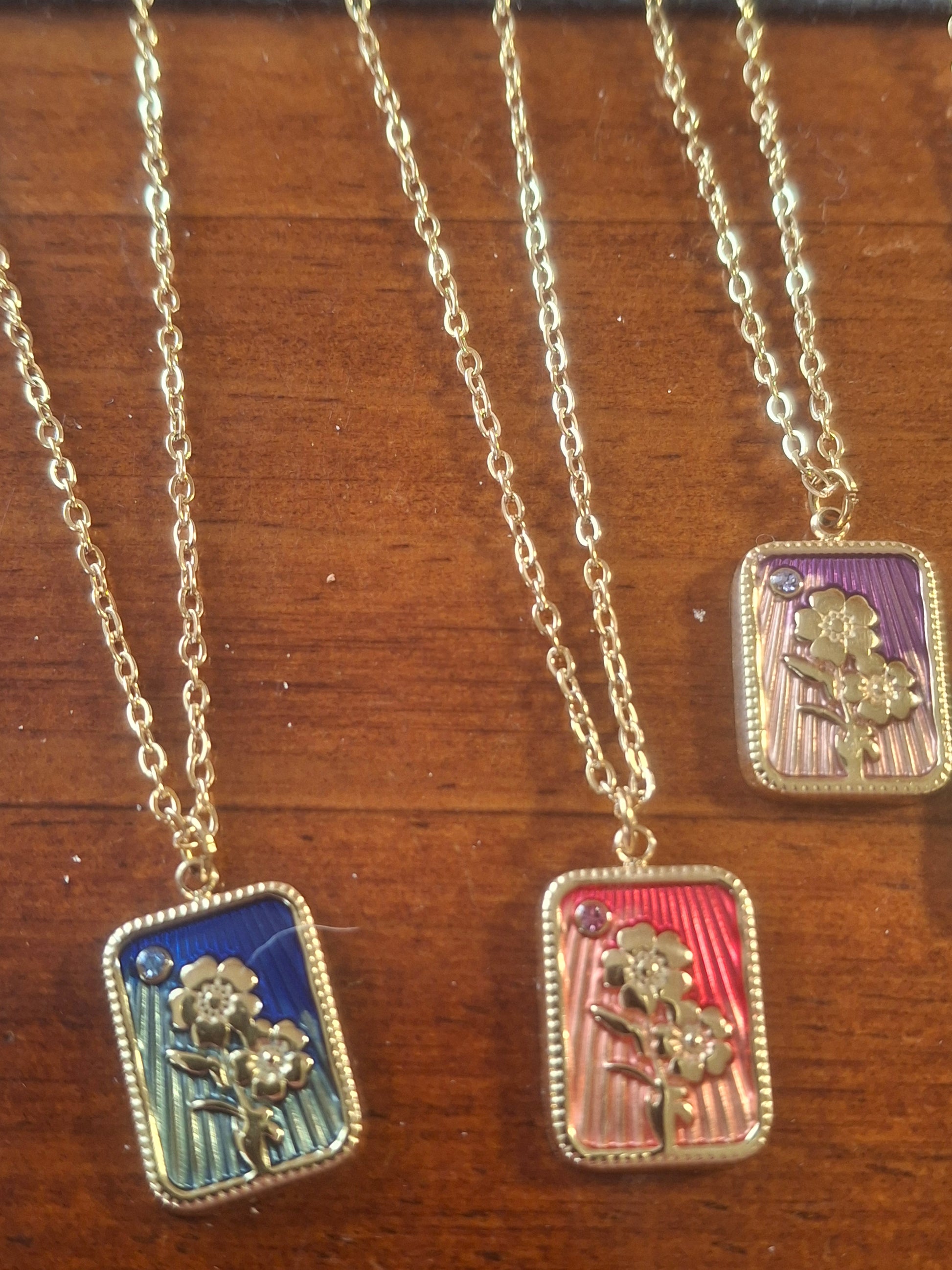 Collier chaîne dorée acier inoxydable stainless steel 316 pendentif stainless steel motif myosotis et email coloré