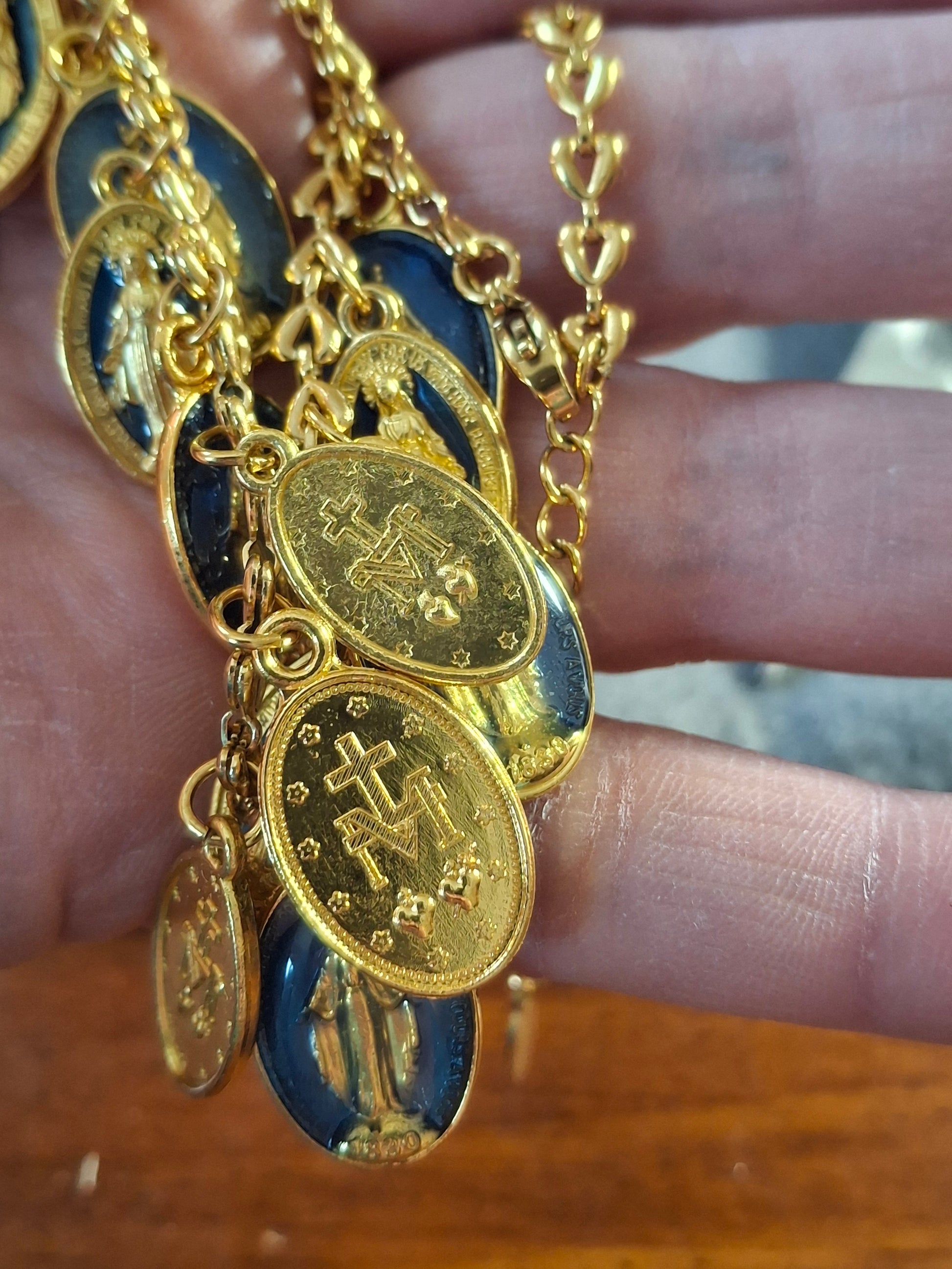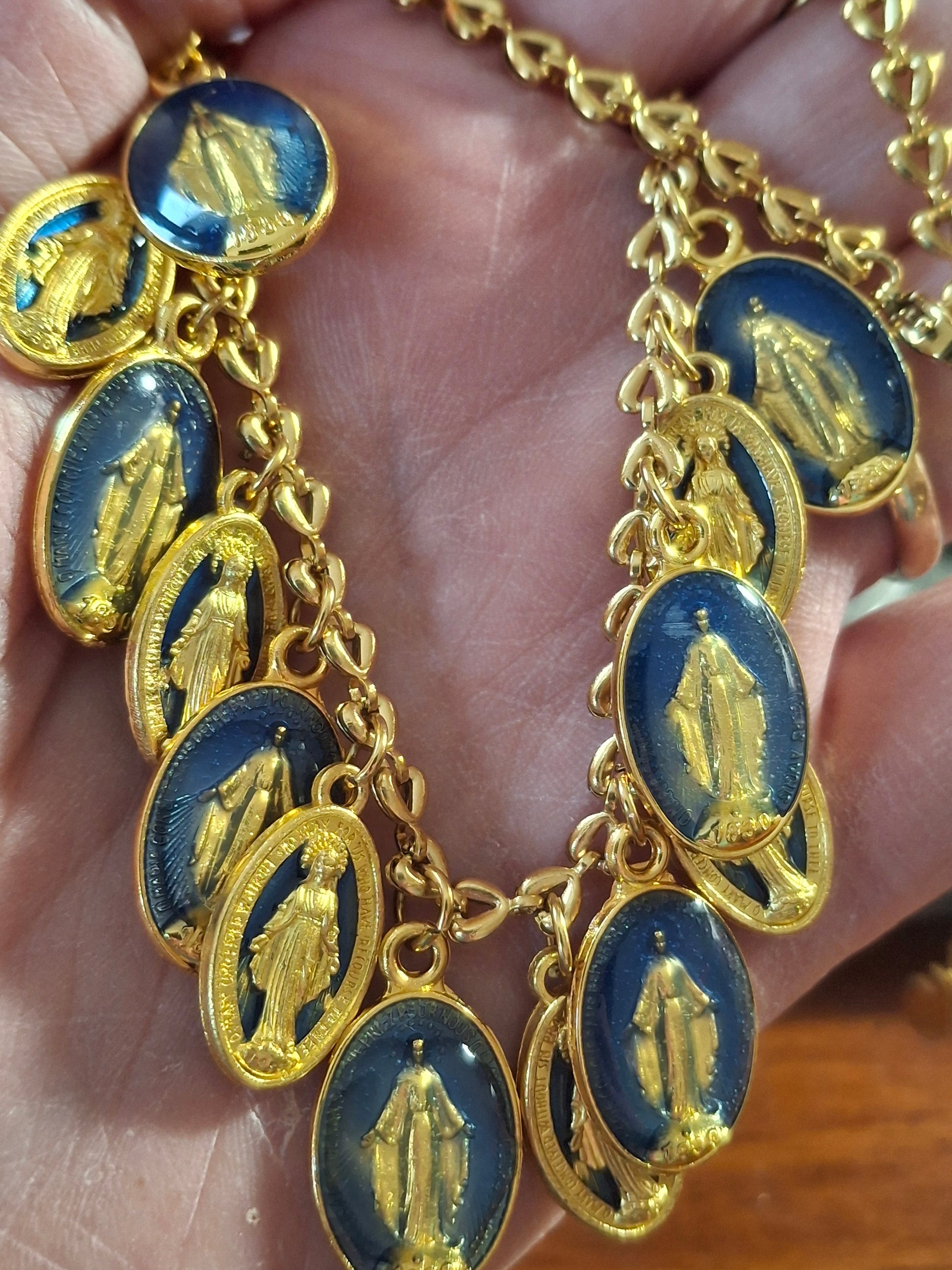 médailles madone en cuivre et email ,médailles dorées à l or fin