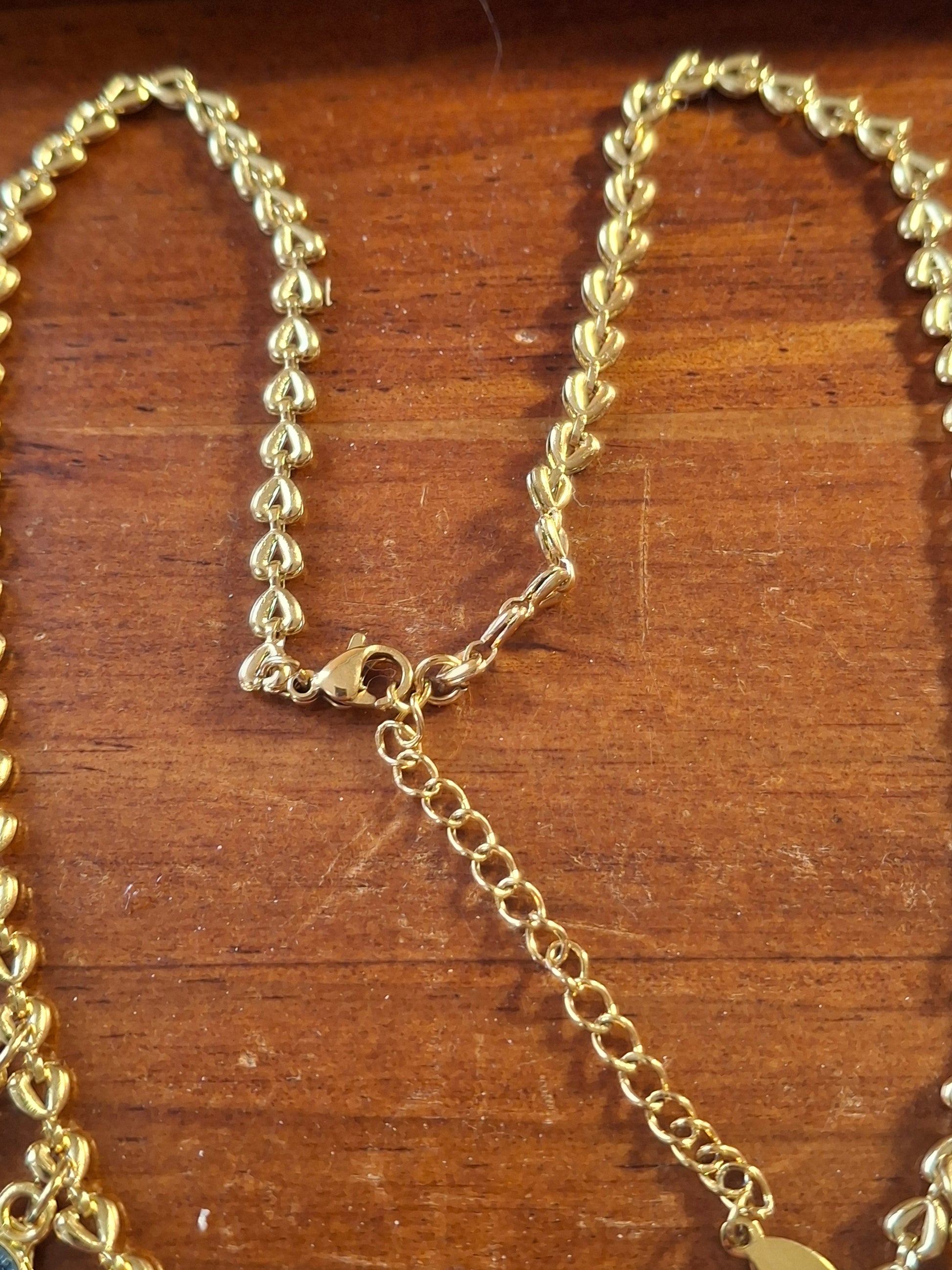 collier chaîne dorée acier inoxydable stainless steel motif cœurs belle qualité sans nickel cadmium et plomb ,longueur totale collier 47 cms dont 5cms de rallonge,réglable ,peut être ajusté sur demande