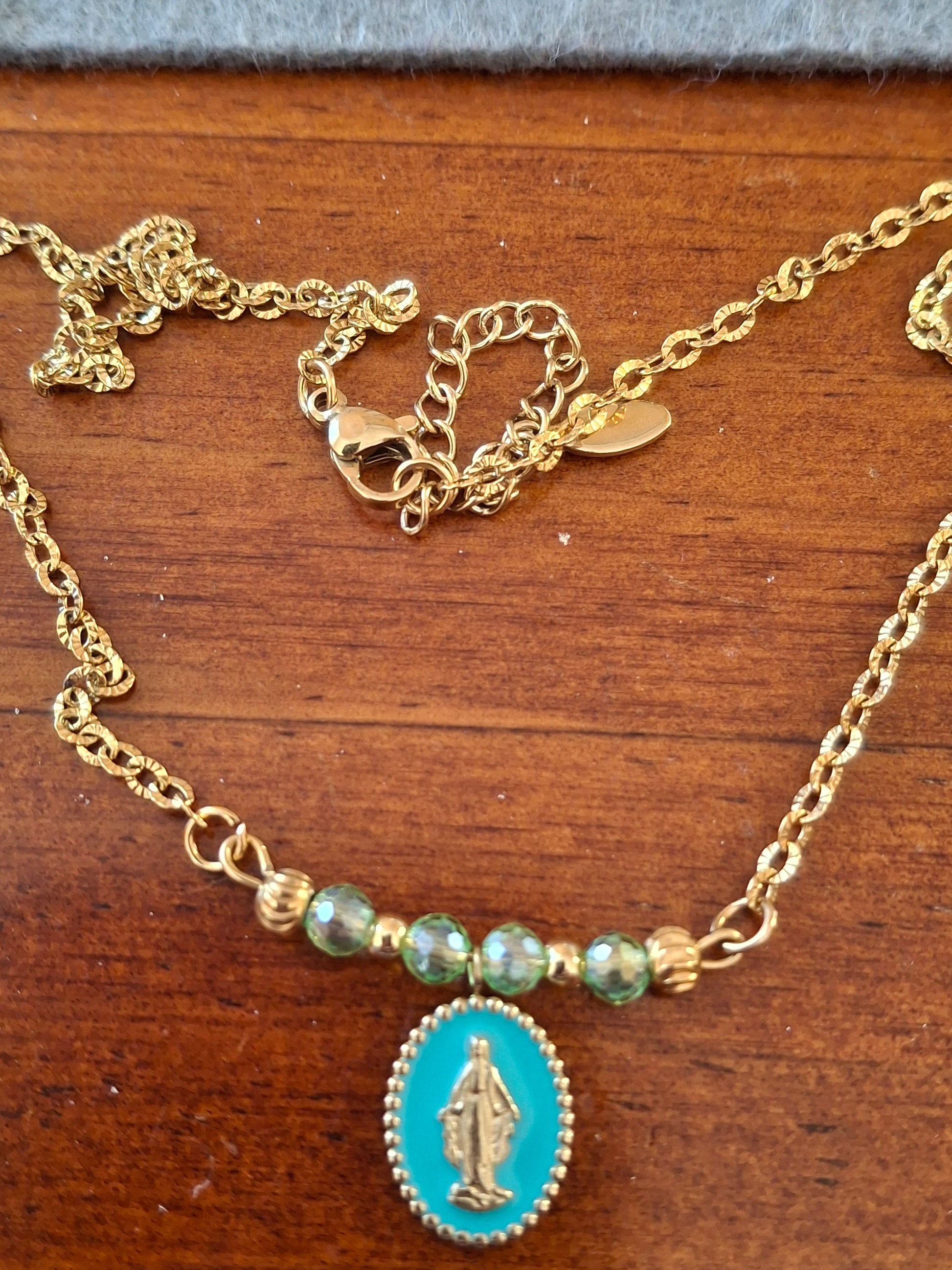 Collier chaîne stainless steel 316 madone stainless steel 316 turquoise et perles en cristal