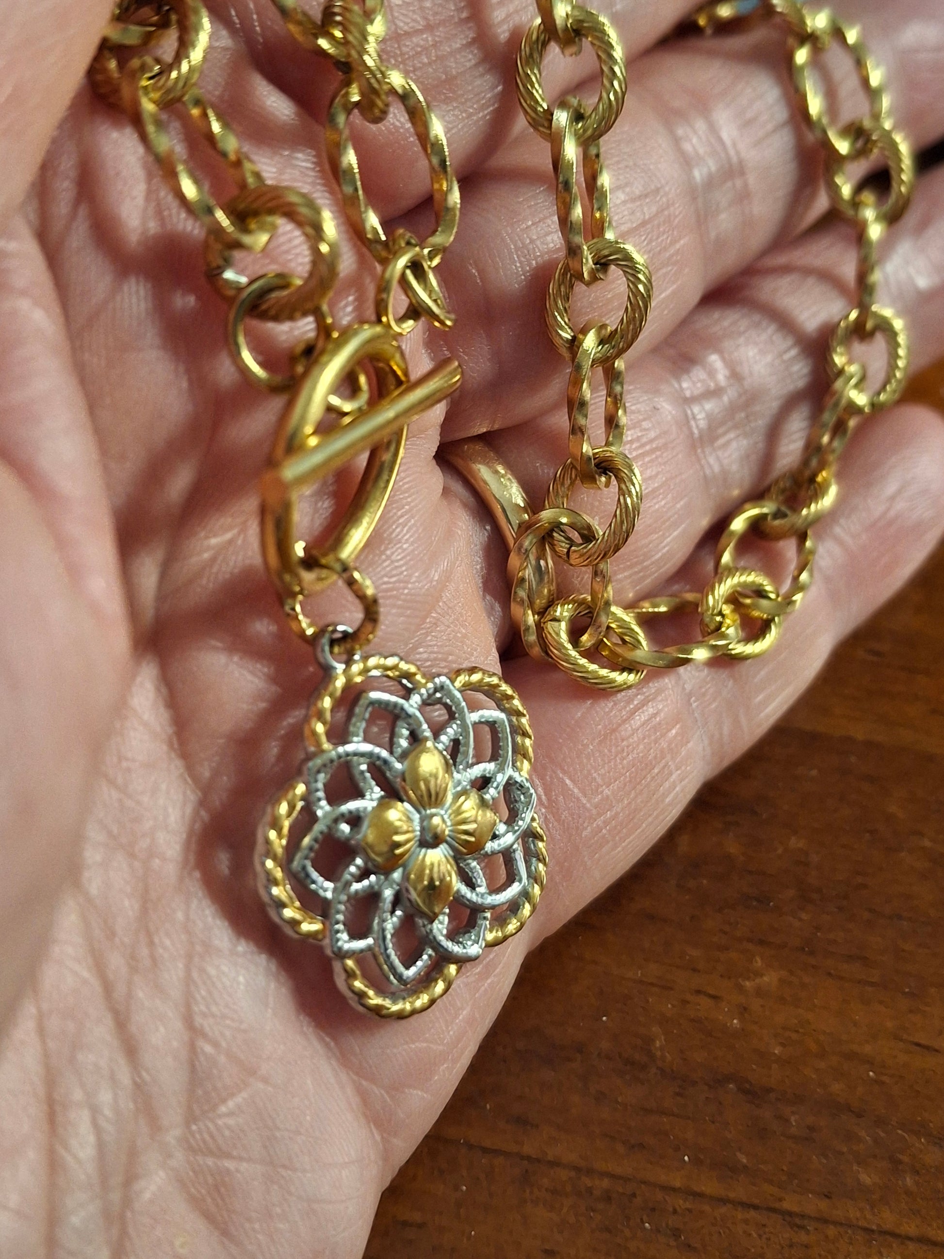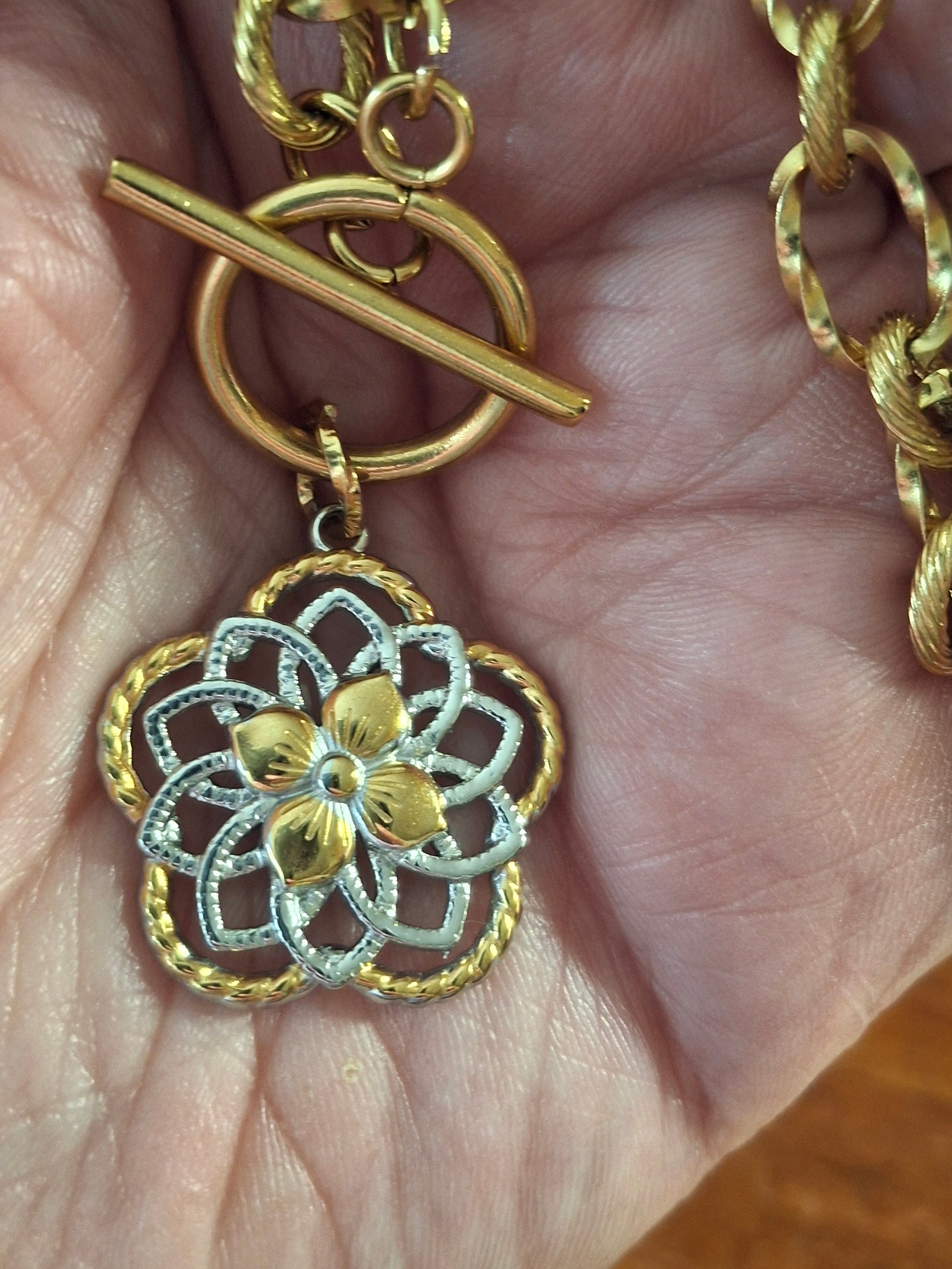 Collier choker chaîne acier inoxydable stainless steel grand fermoir toggle, fleur acier inoxydable stainless steel 316