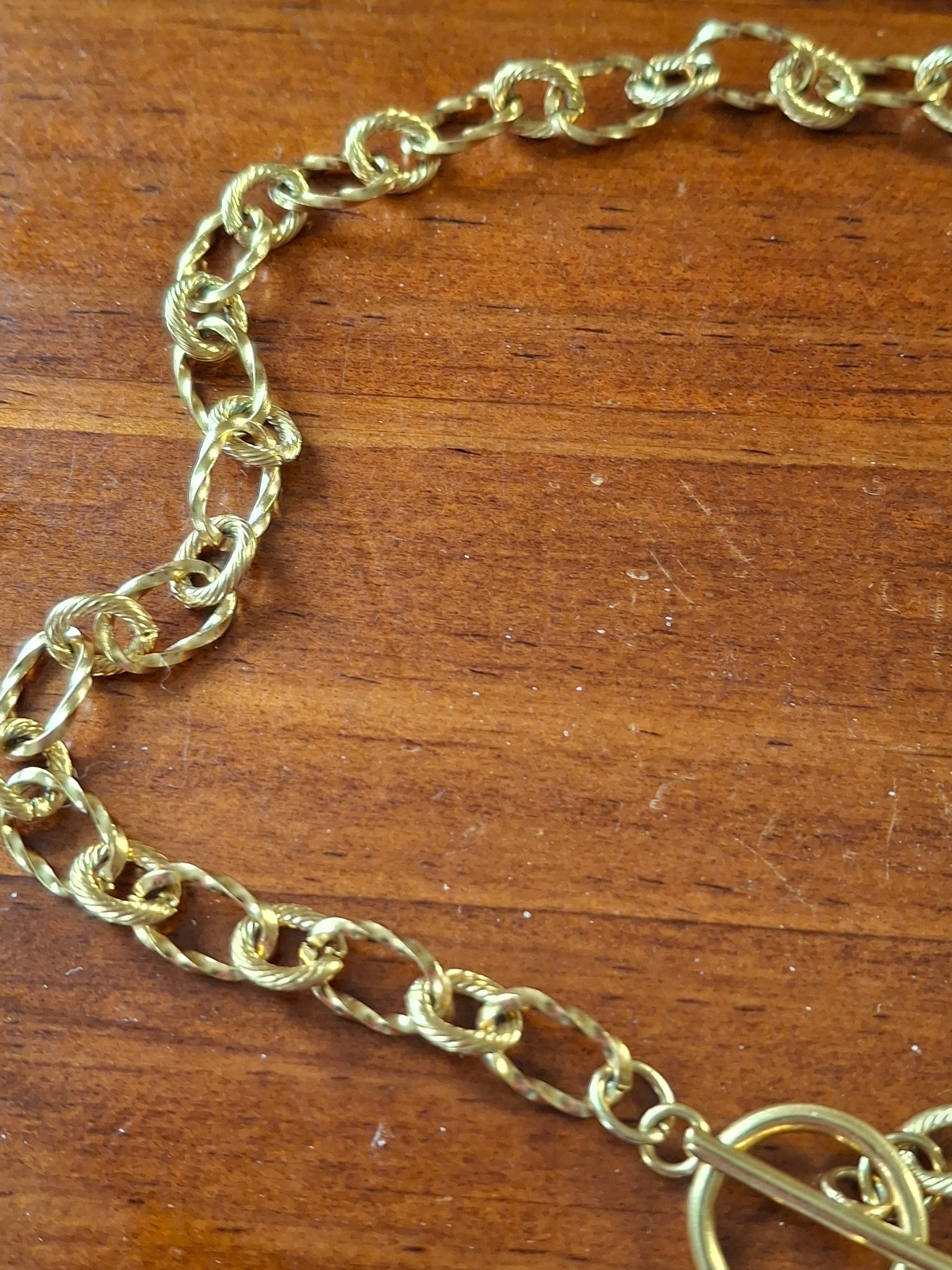 Chaîne dorée acier inoxydable stainless steel sans nickel cadmium et plomb de belle qualité maille ovale torsadée longueur totale 45 cms peut être ajusté sur demande