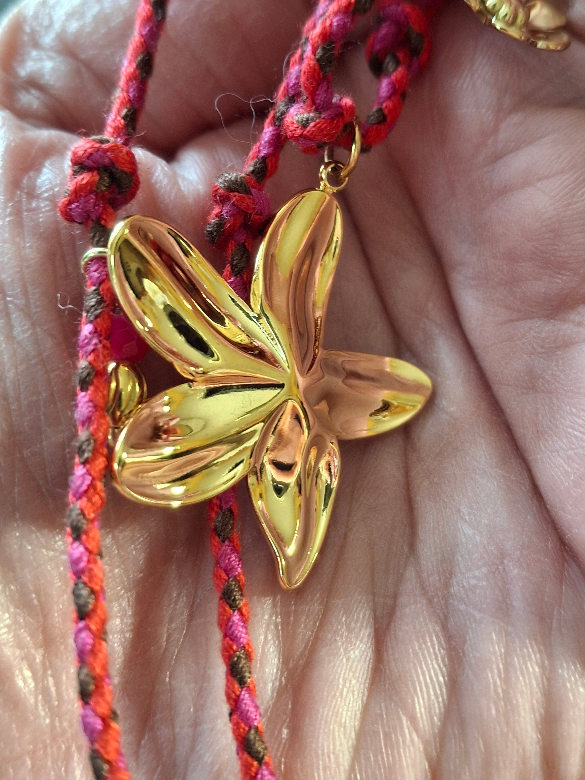 Pendentif très belle fleur qualitative en acier inoxydable stainless steel 316 poli sans nickel cadmium et plomb galvanisation résistante longue durée diamètre 30mm, pendentif petite fleur en acier inoxydable stainless steel 316 et perles en cristal à facettes rouge, fushia et doré .