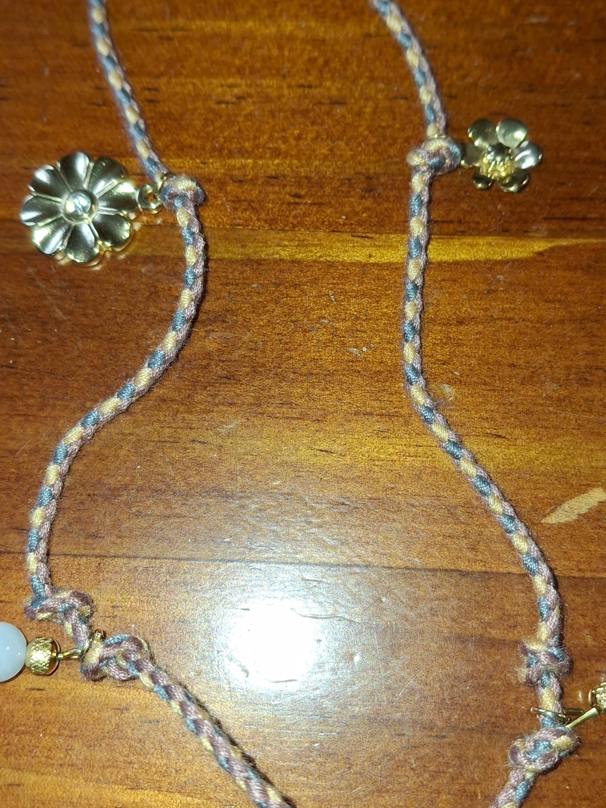 Collier cordon tressé , fermeture nœud coulant coulissant et mousqueton doré en acier inoxydable stainless steel
