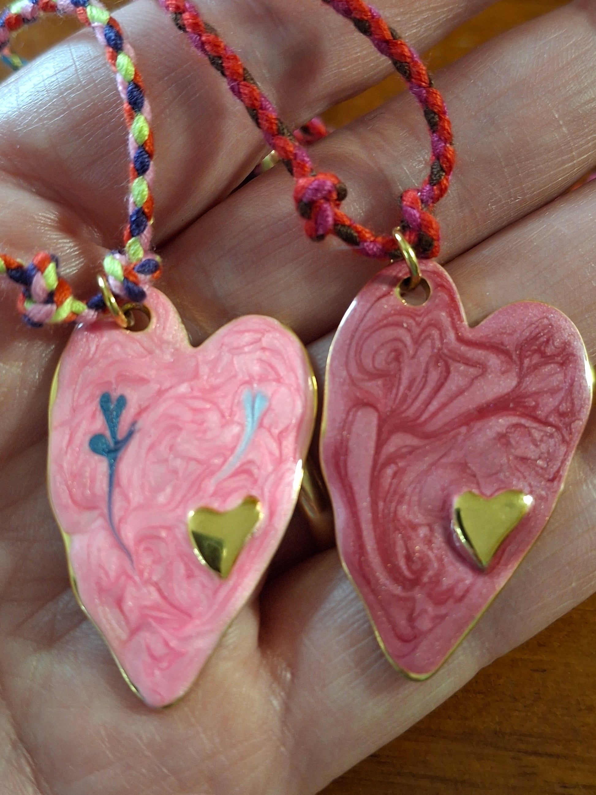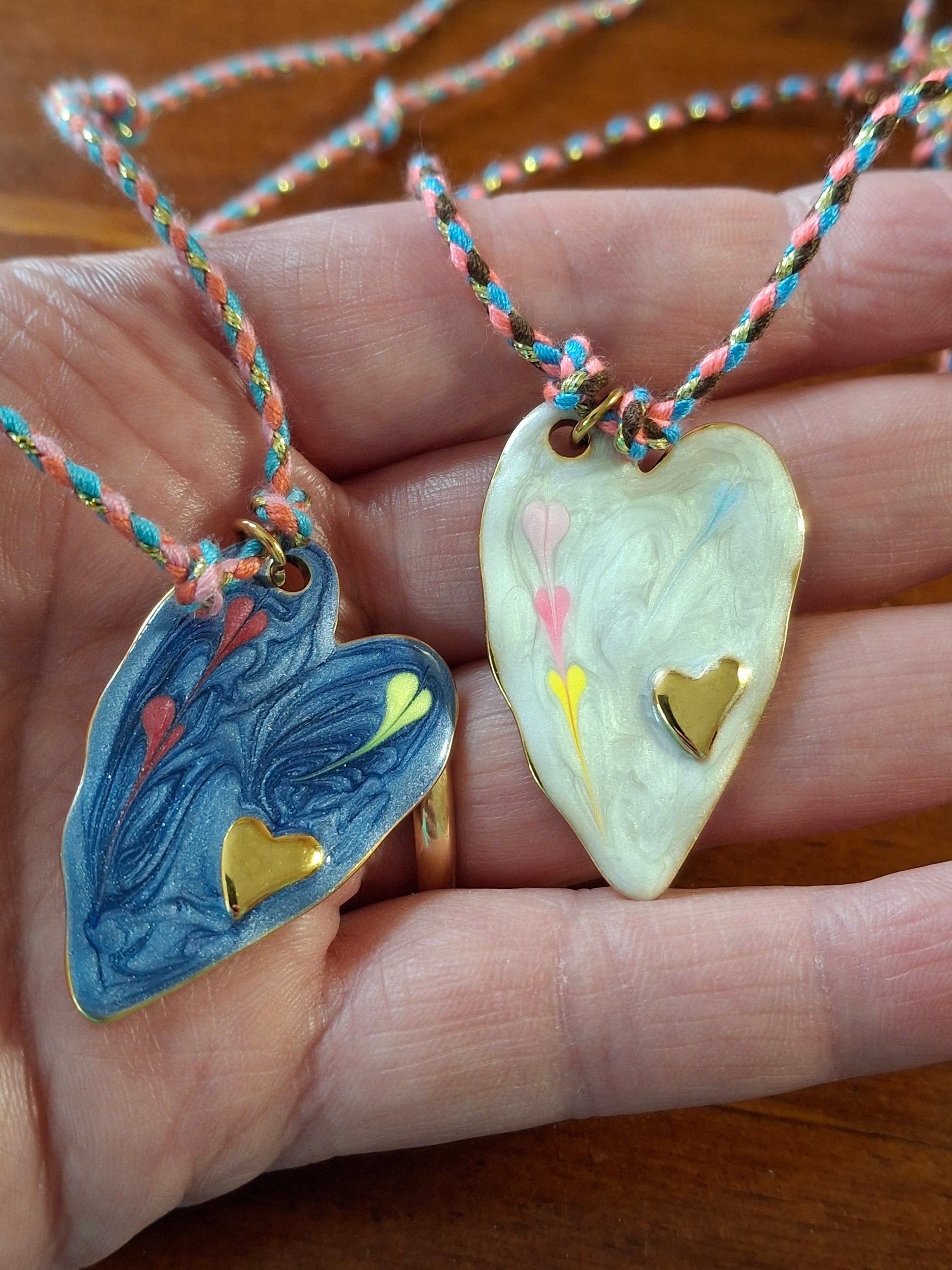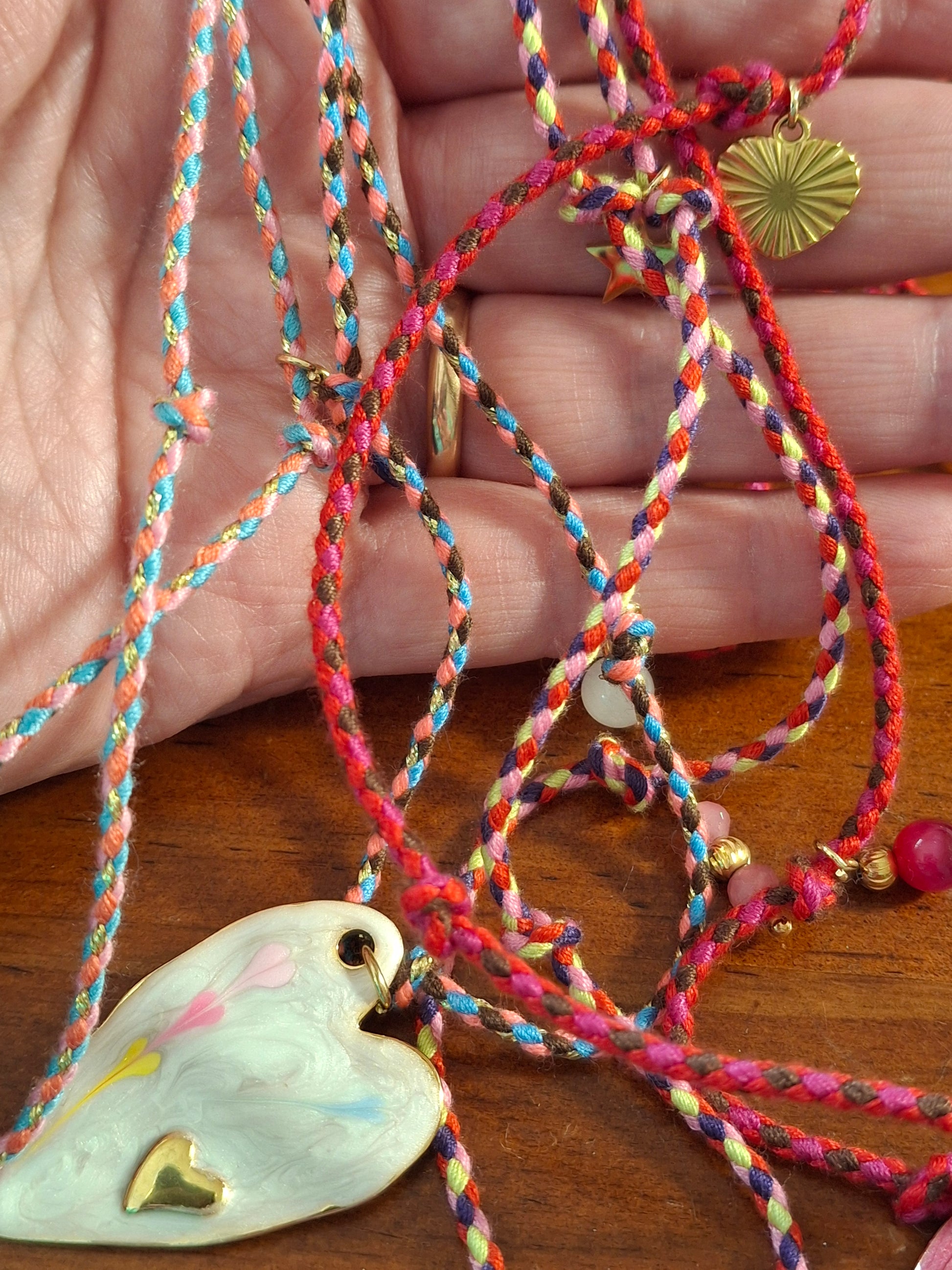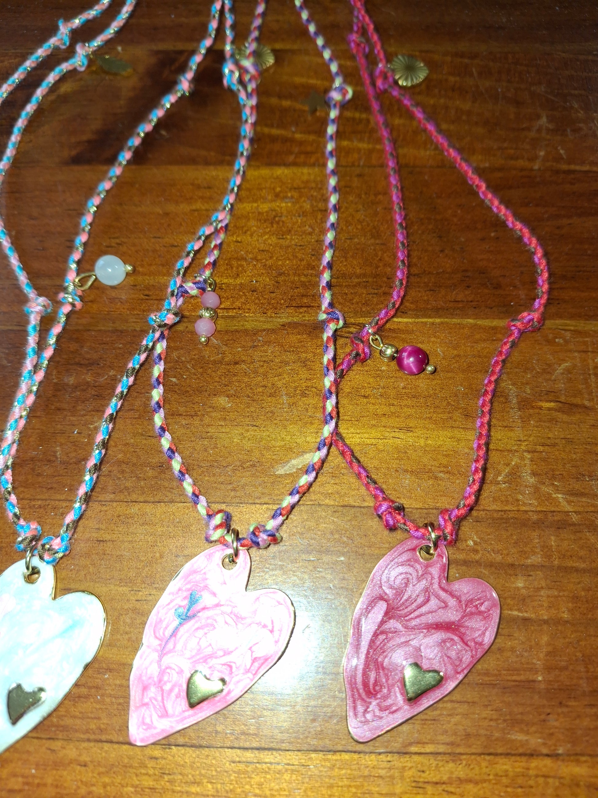 Collier cordon tressé réglable ajustable handmade, pendentif coeur stainless steel 316 et email