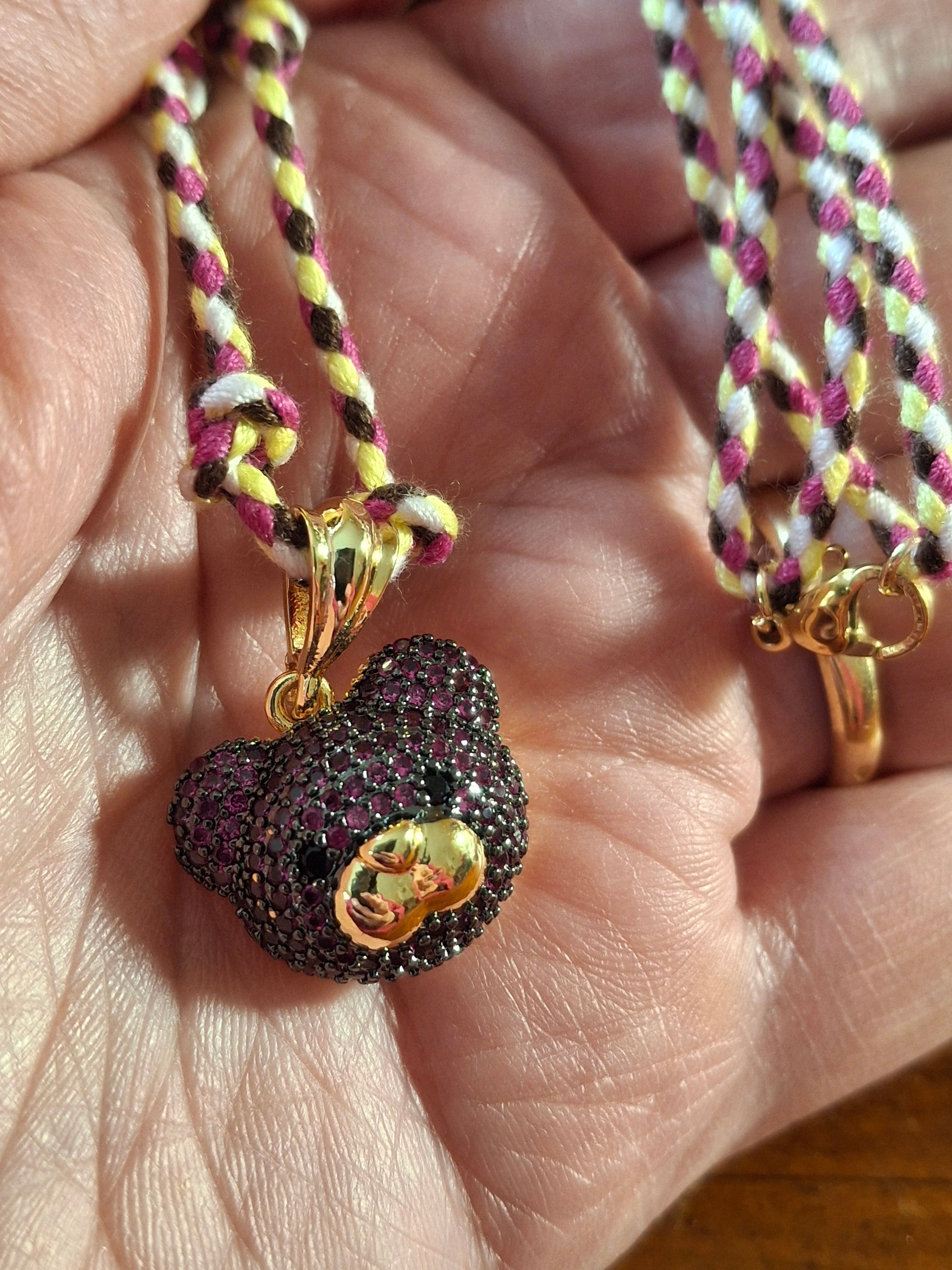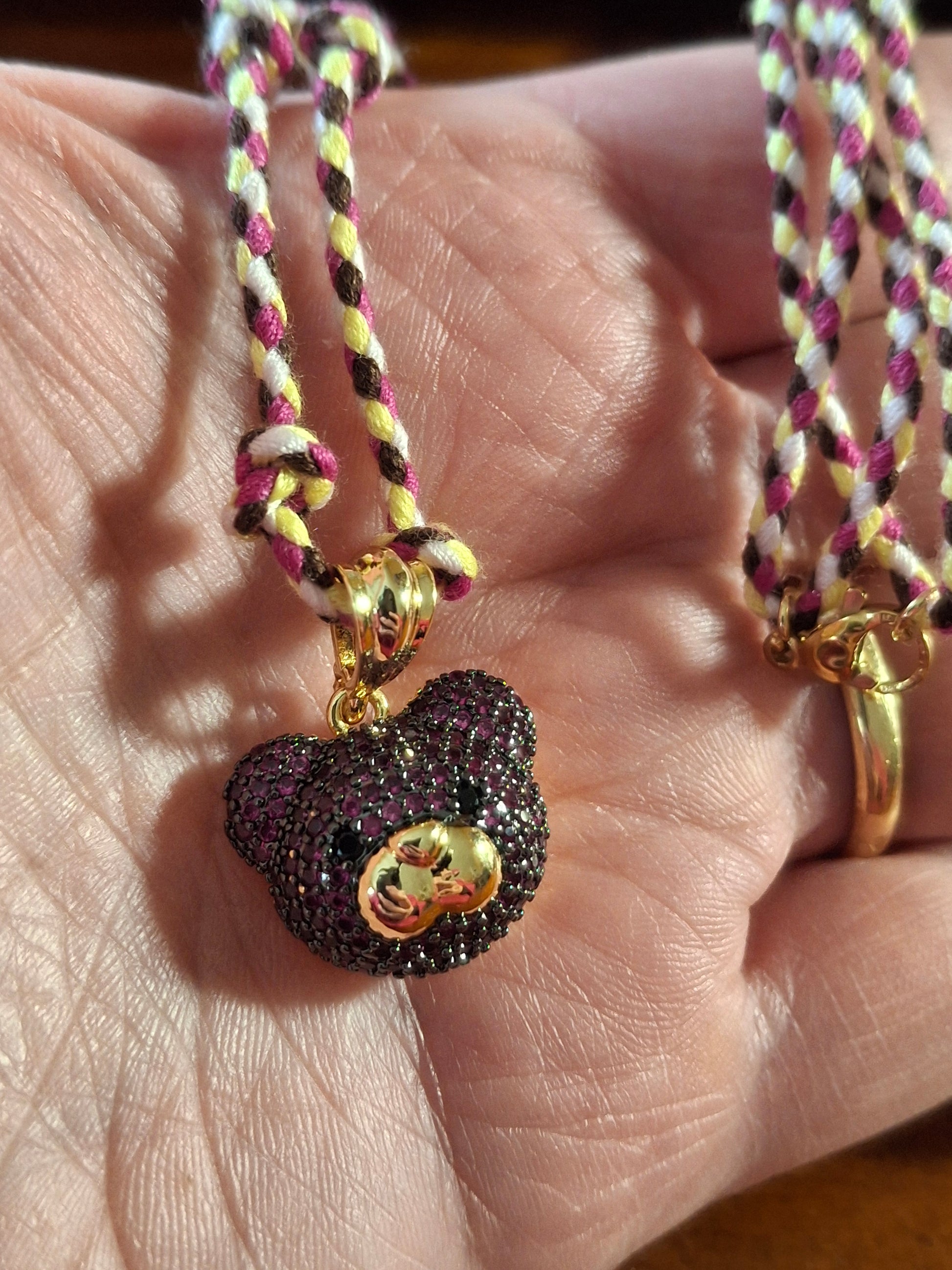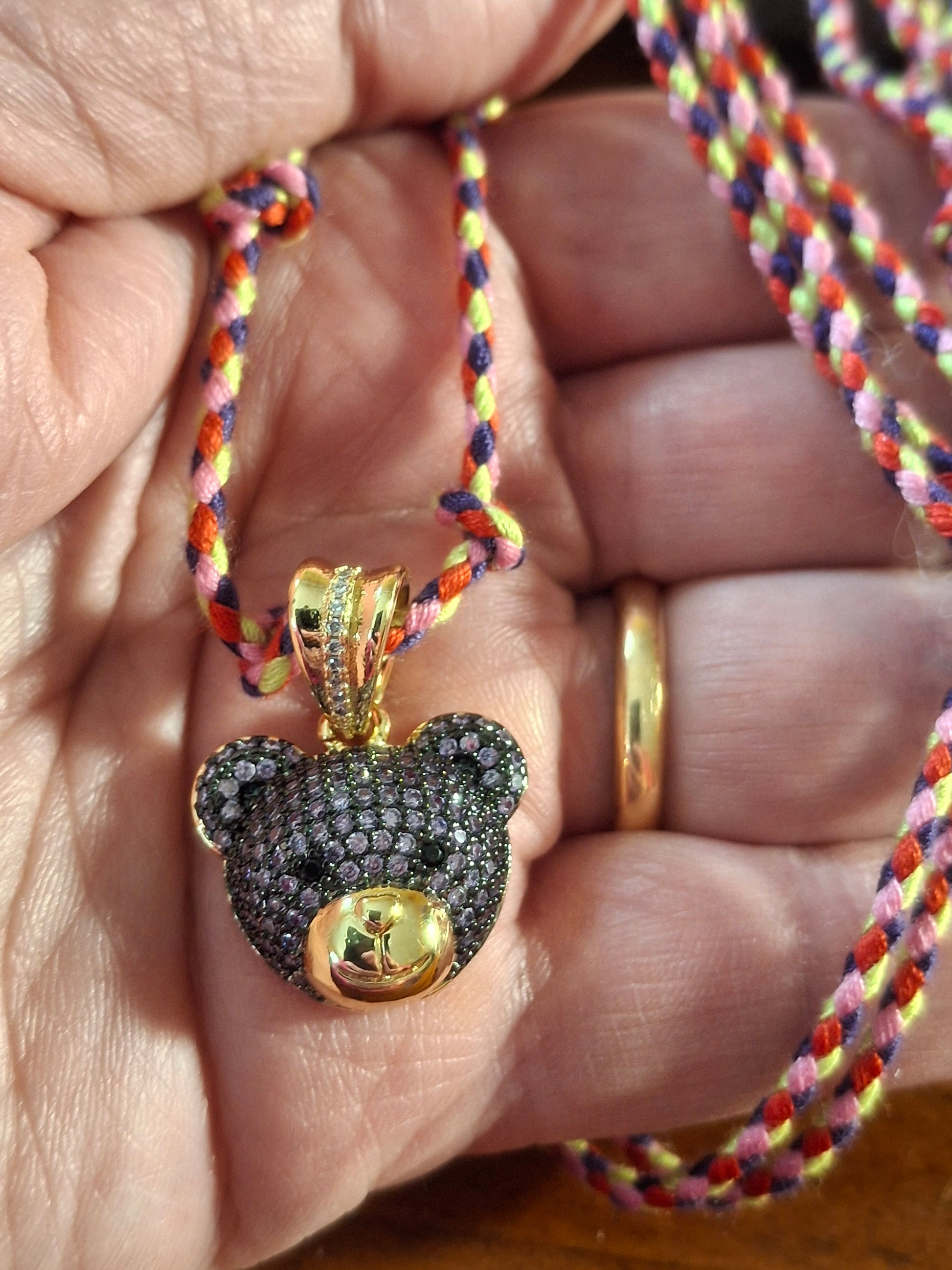 Collier cordon tressé réglable ajustable ourson plaqué or 18K serti zirconium AAA handmade