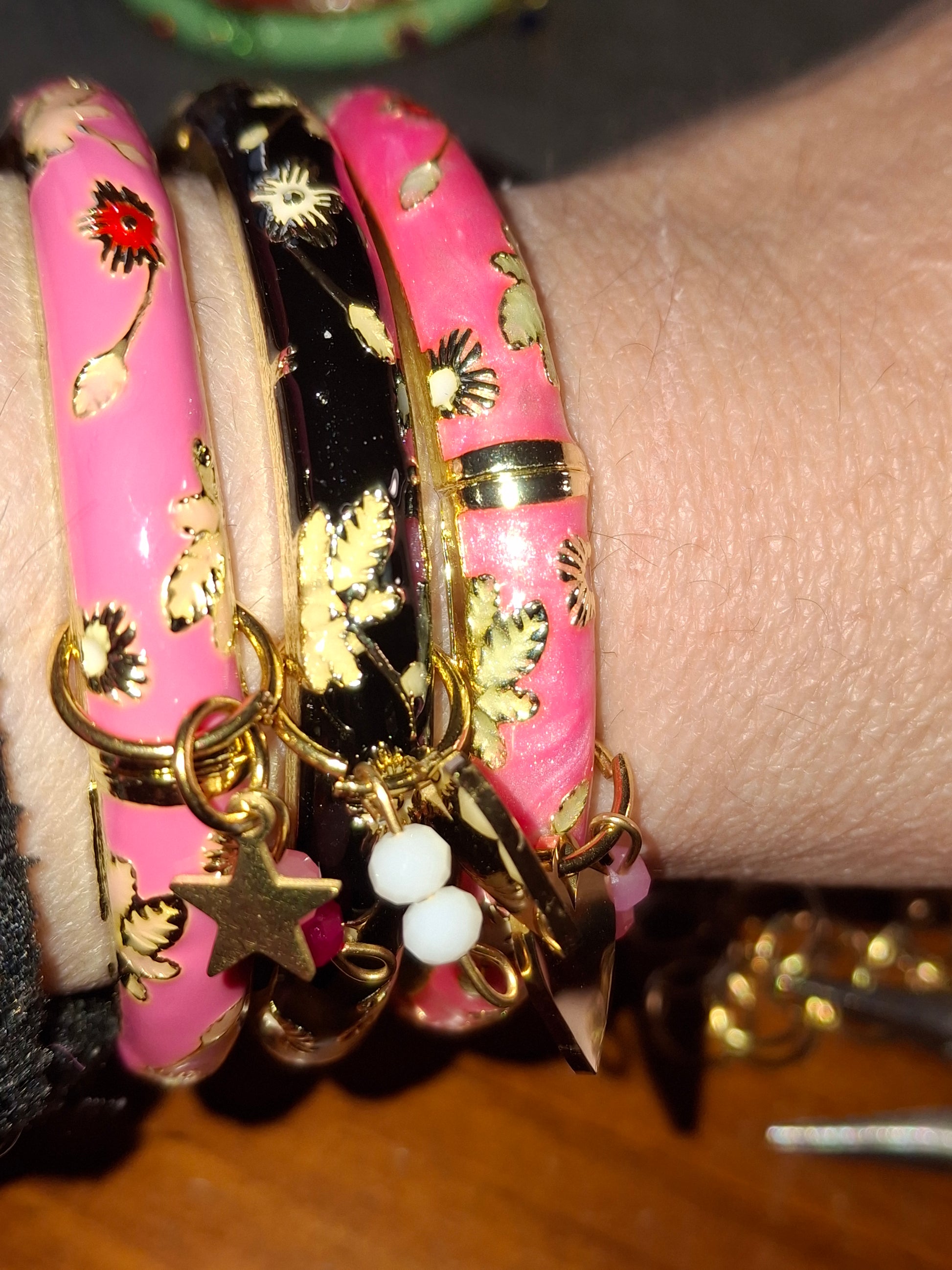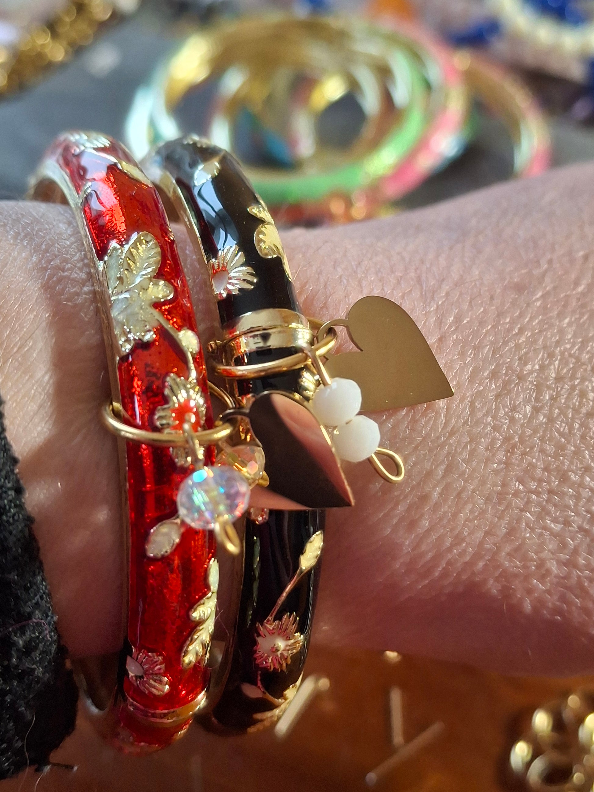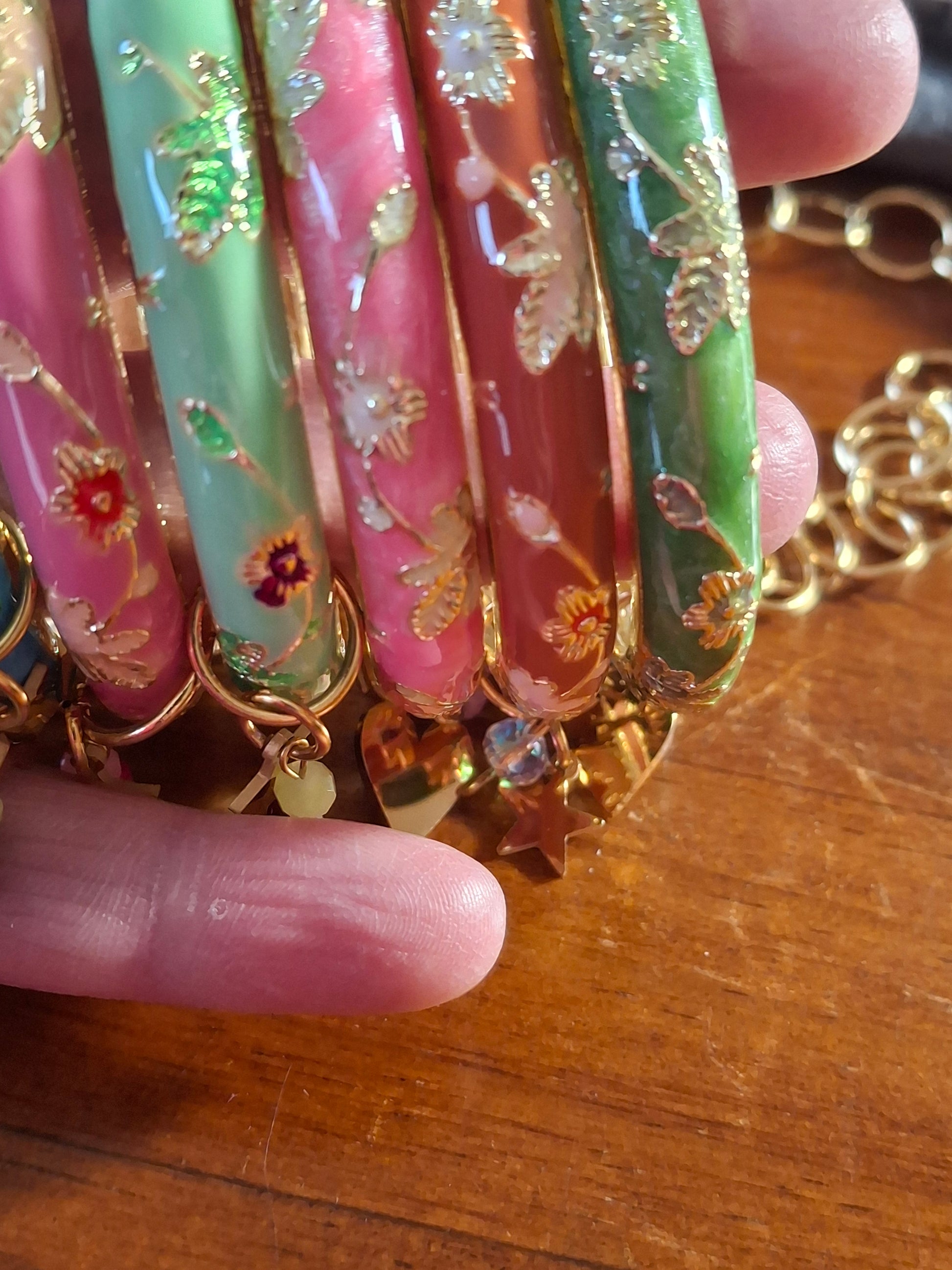 Jonc email cloisonné et breloques