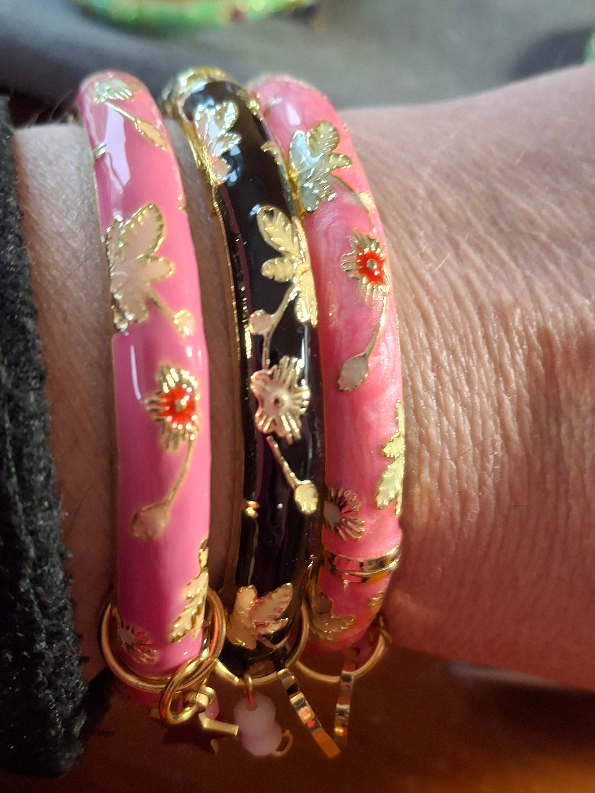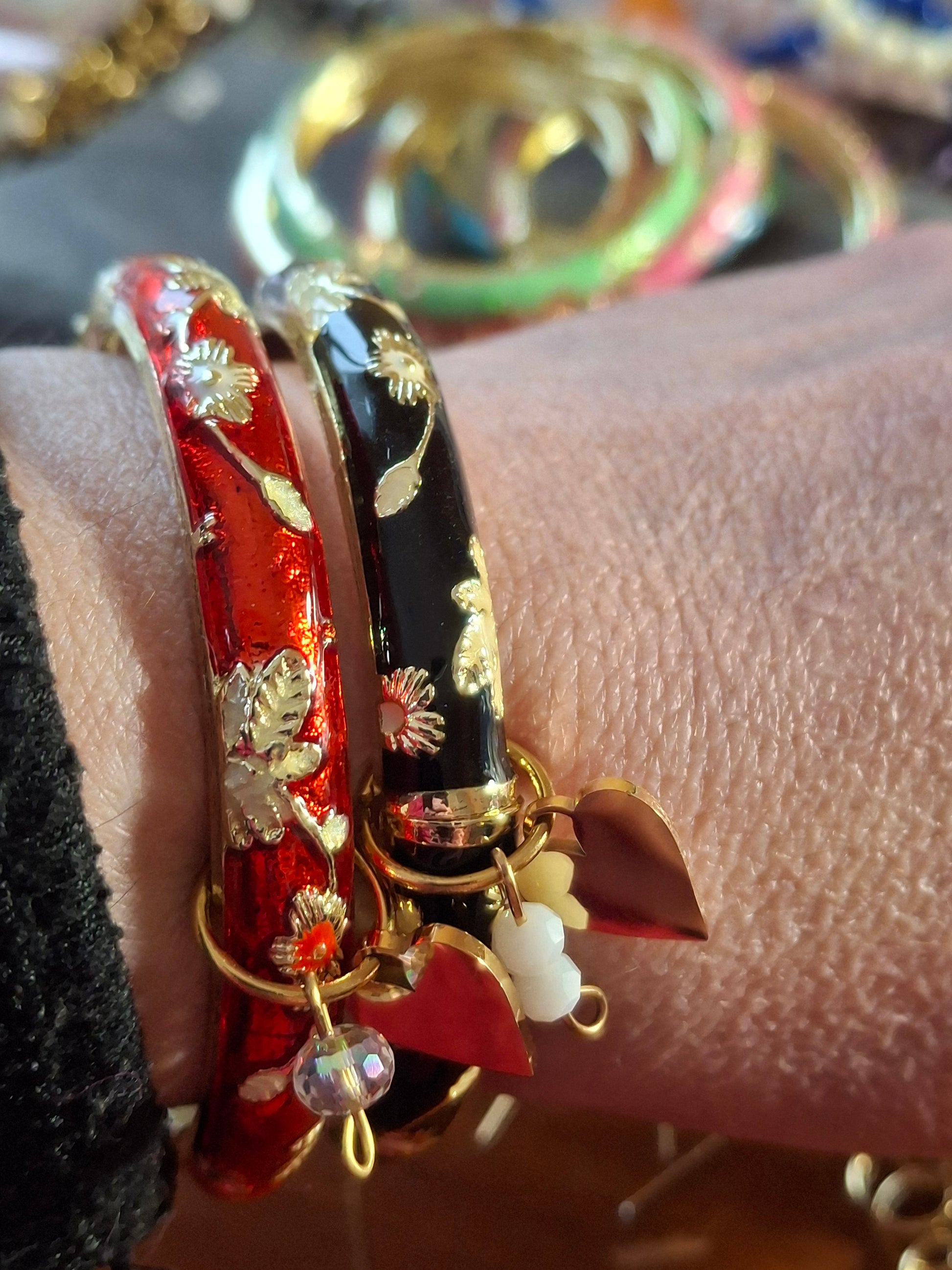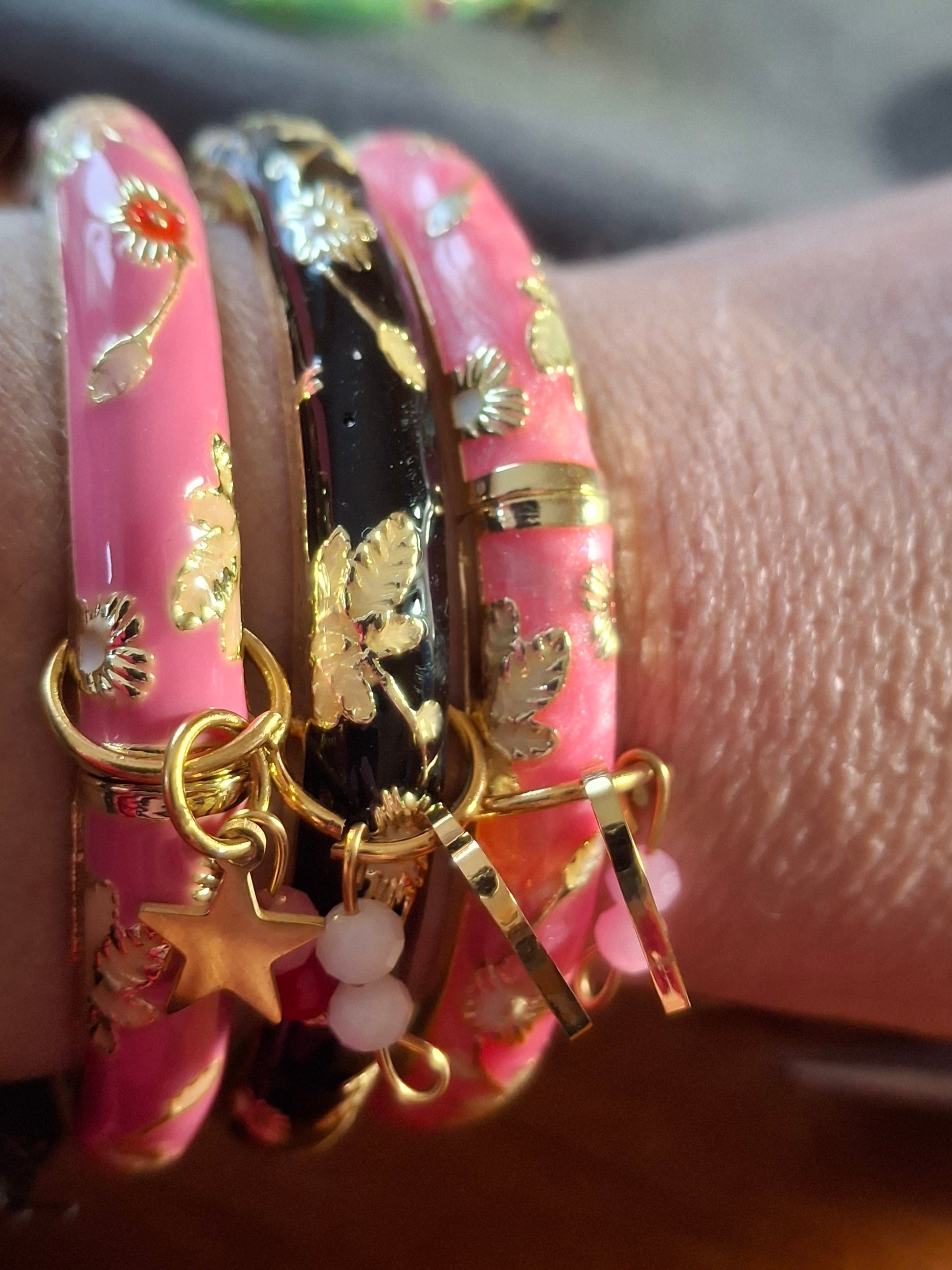 Jonc email cloisonné et breloques